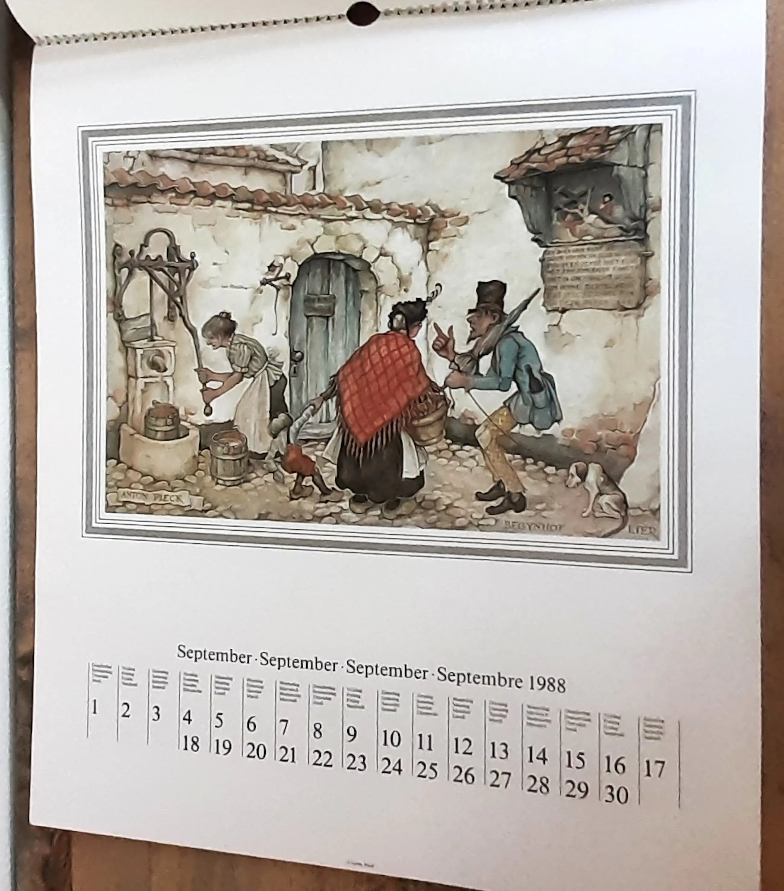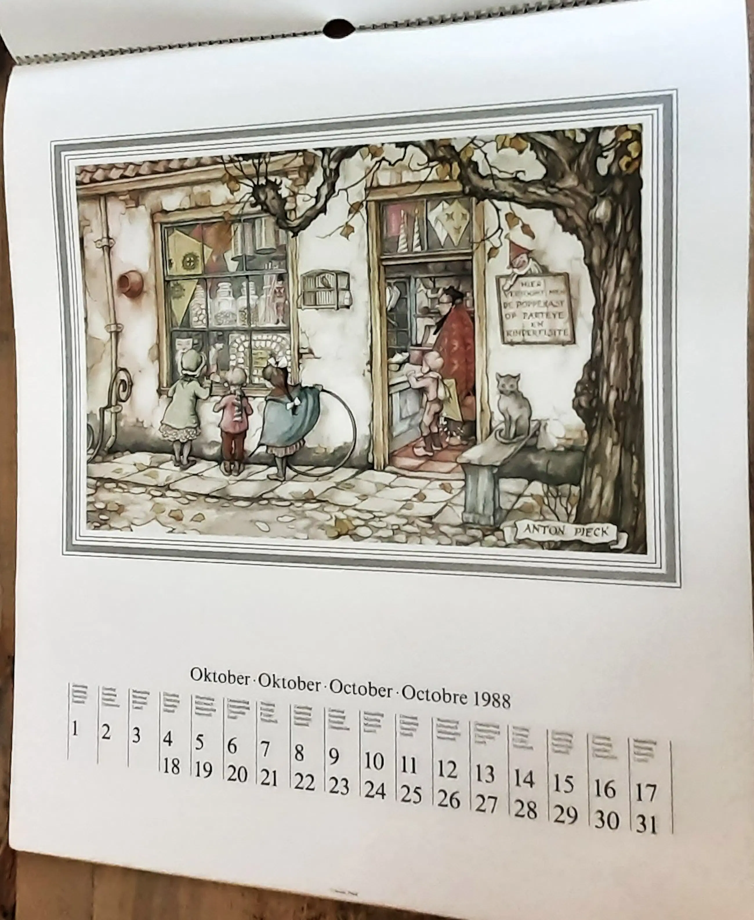 Anton Pieck - Calendrier annuel spécial coloré 1988 (Original avec copyright Anton Pieck)