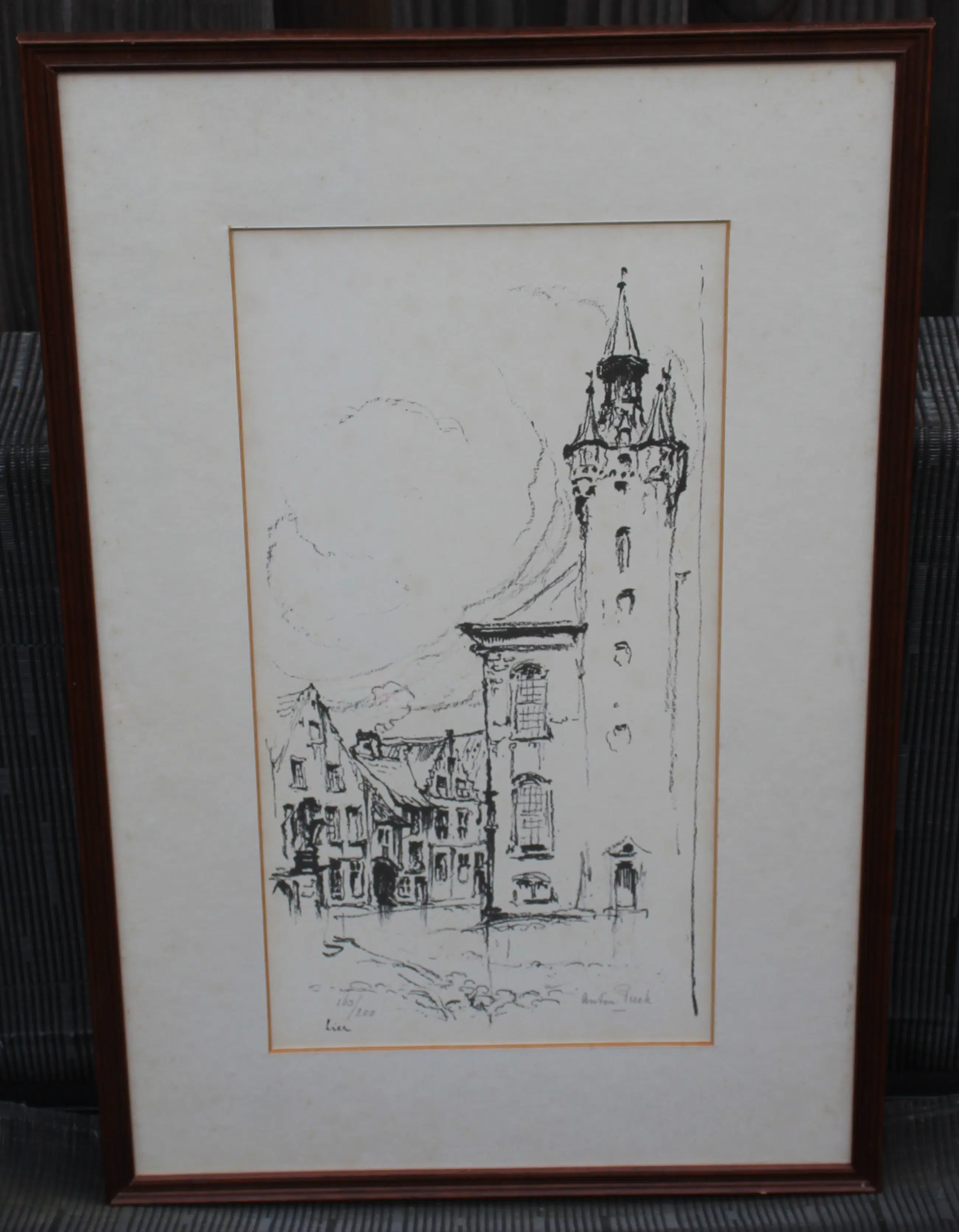 Anton Pieck - Lithographie offset encadrée : Vue de Lierre