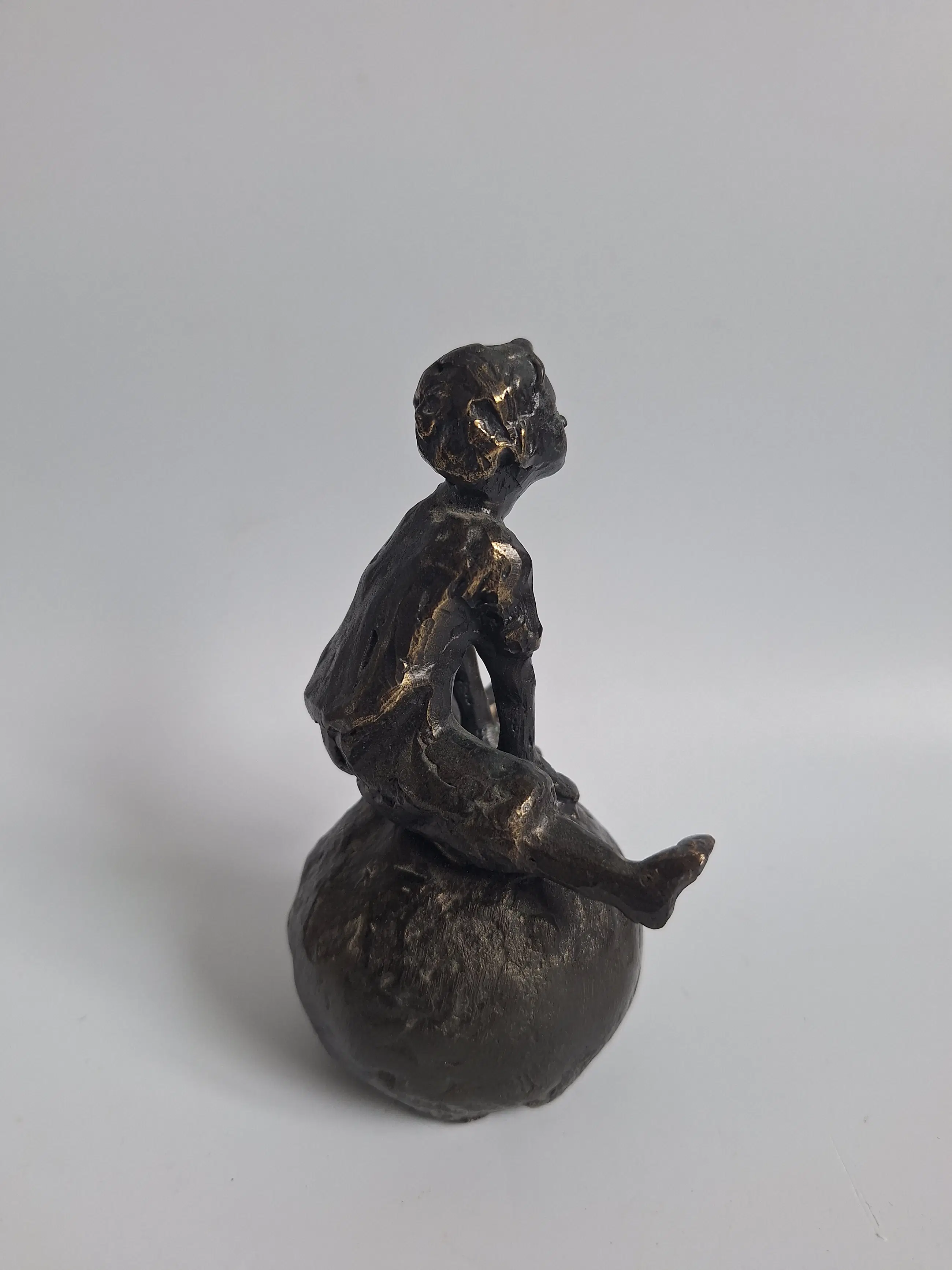 Belle sculpture de l'artiste Astrid Veldhuyzen-Koppen. Titre de l'œuvre : « Garçon heureux sur ballon » 12 x 8 x 6 cm 1060 grammes