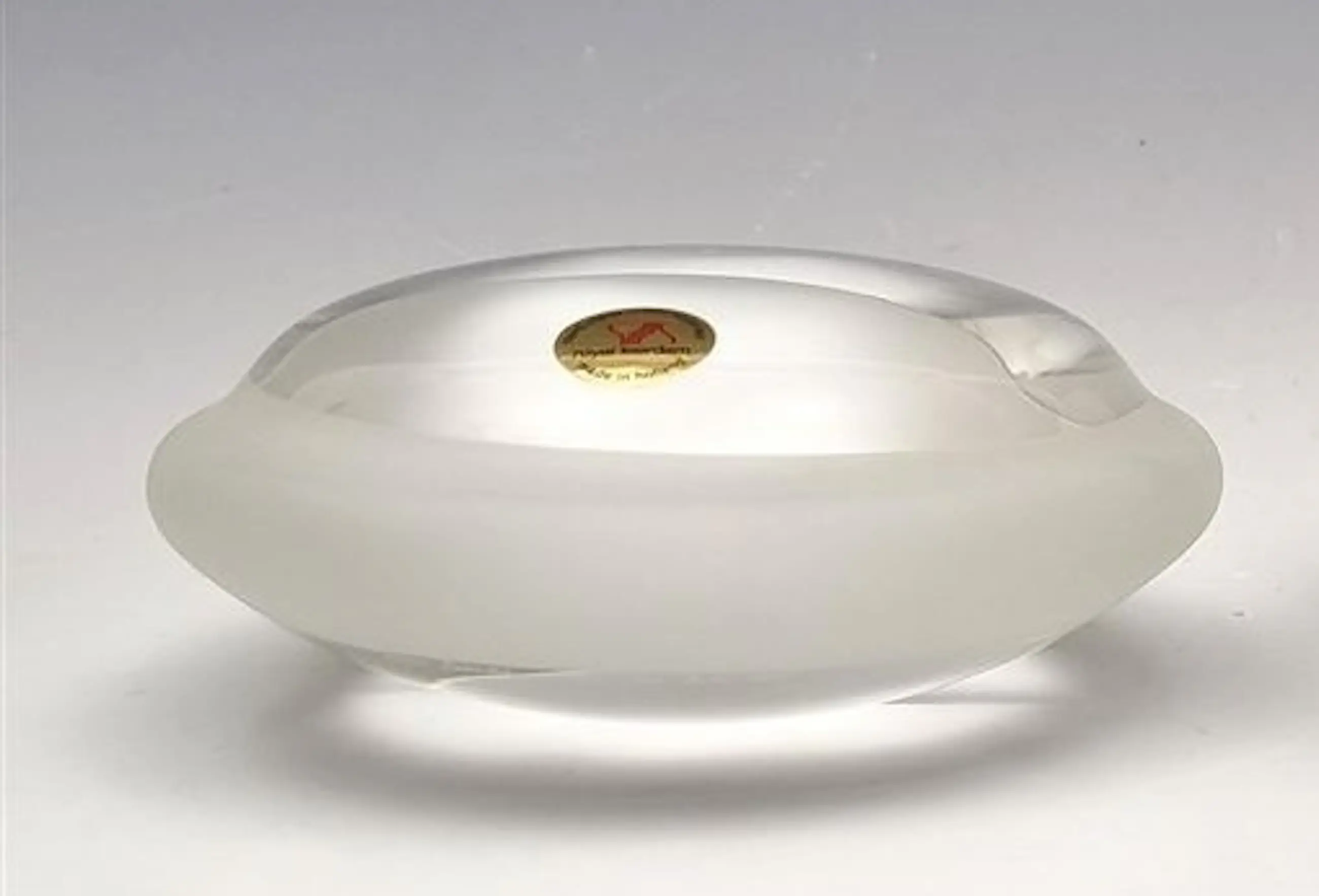 Un objet en cristal avec un bord givré et une coupe à la scie.