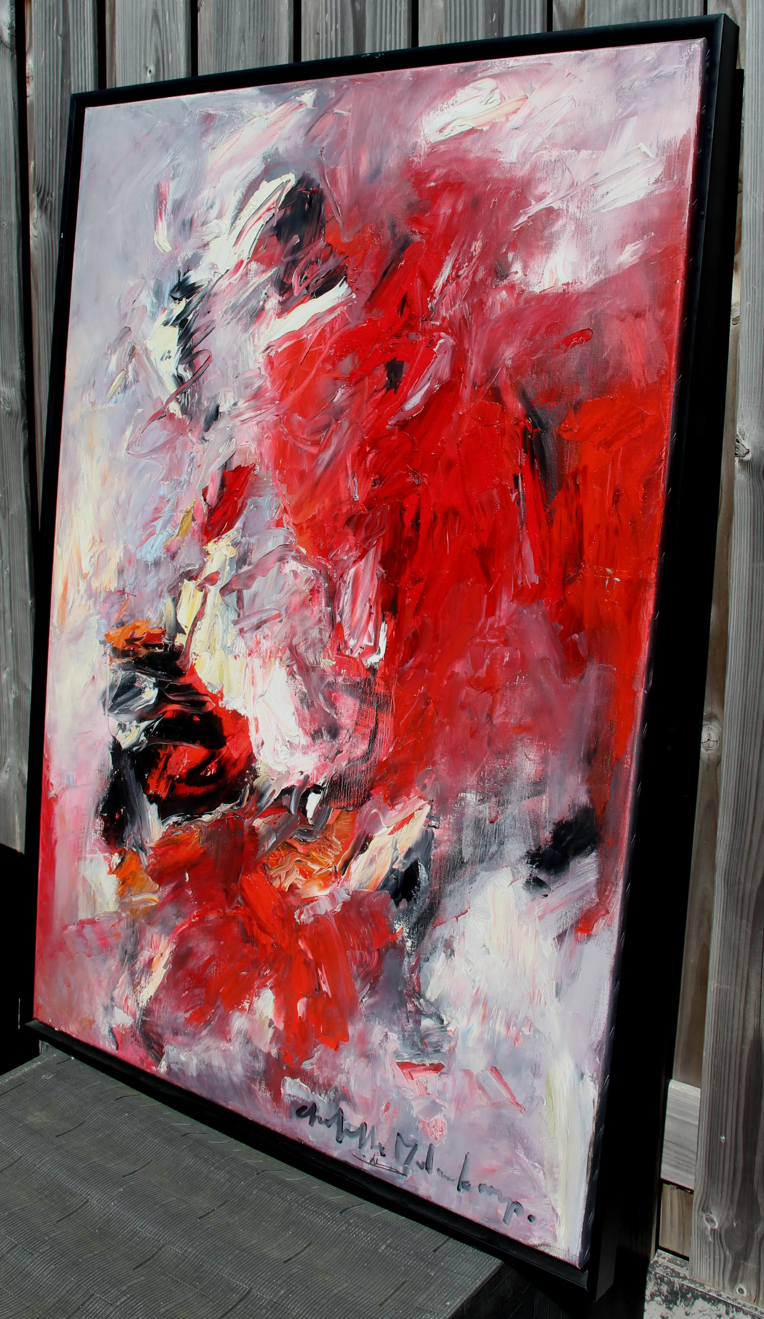 Magnifique huile sur toile de Charlotte Molenkamp. Titre : Rouge dramatique. Dimensions cadre compris : H 139 x L 99 cm. Dimensions de la toile : H 134 x L 94 cm. L’artiste signe l’œuvre en bas au centre. L’authenticité de cette œuvre est garantie. Un certificat d’authenticité peut être envoyé par courriel sur demande.