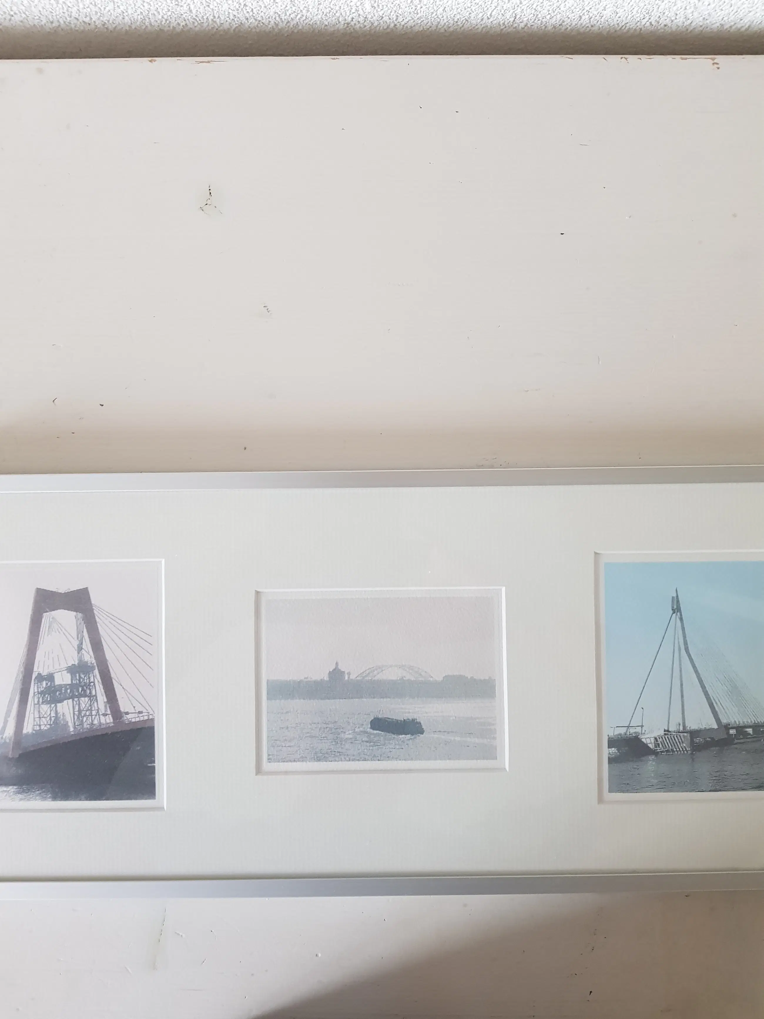 Cette œuvre comprend trois images de ponts importants de Rotterdam : le pont Érasme, le pont Van Brienenoord et le pont Willems.