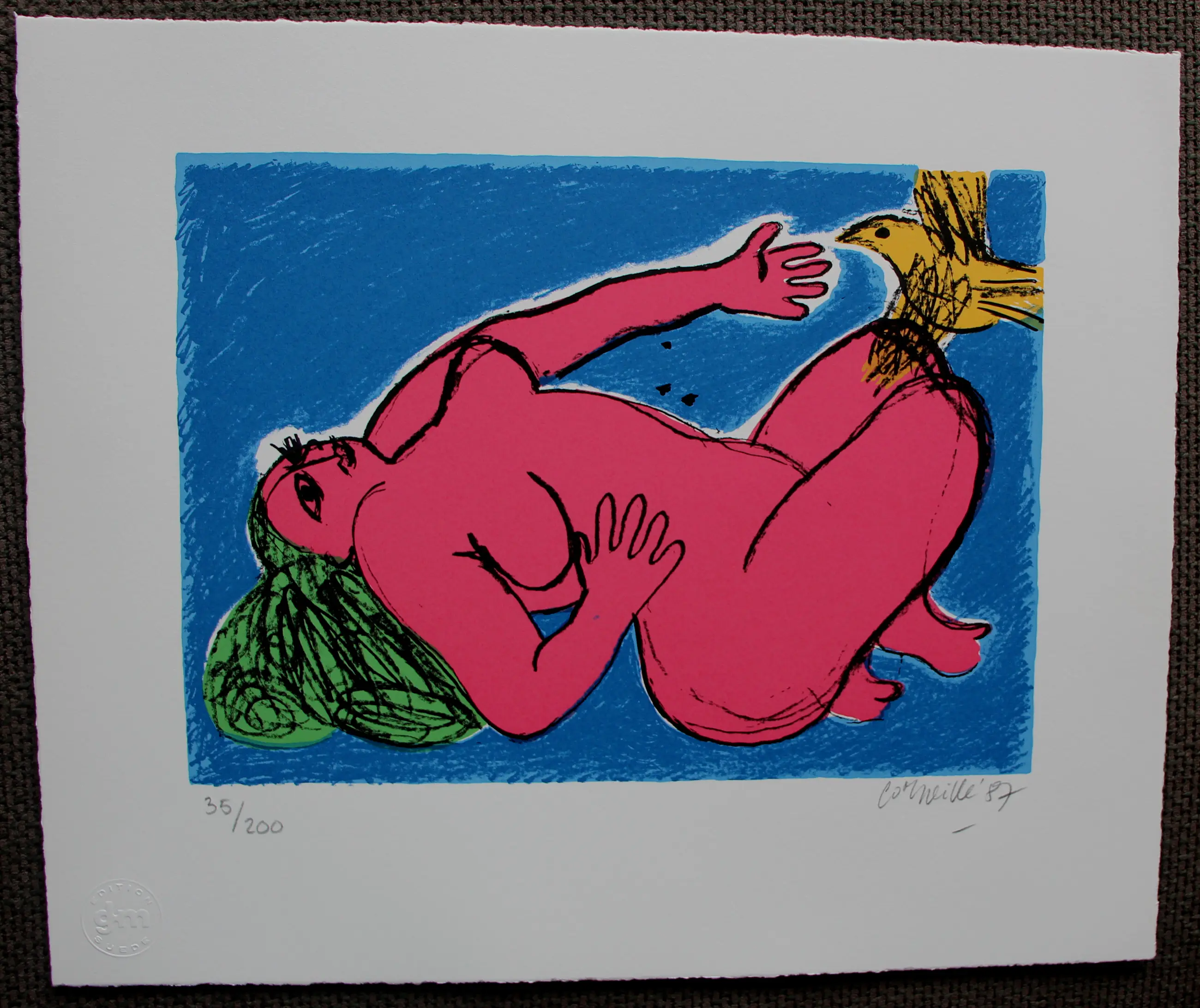 Sérigraphie de Corneille de 1987. Titre : « Hymne à l'été ». Tirage : 35/200. Dimensions de la feuille : H 45 x L 55 cm. Dimensions de l'image : H 21 x L 30 cm. L'artiste signe l'œuvre en bas à droite. L'authenticité de cette œuvre est pleinement garantie. Un certificat d'authenticité peut être envoyé par courriel sur demande.