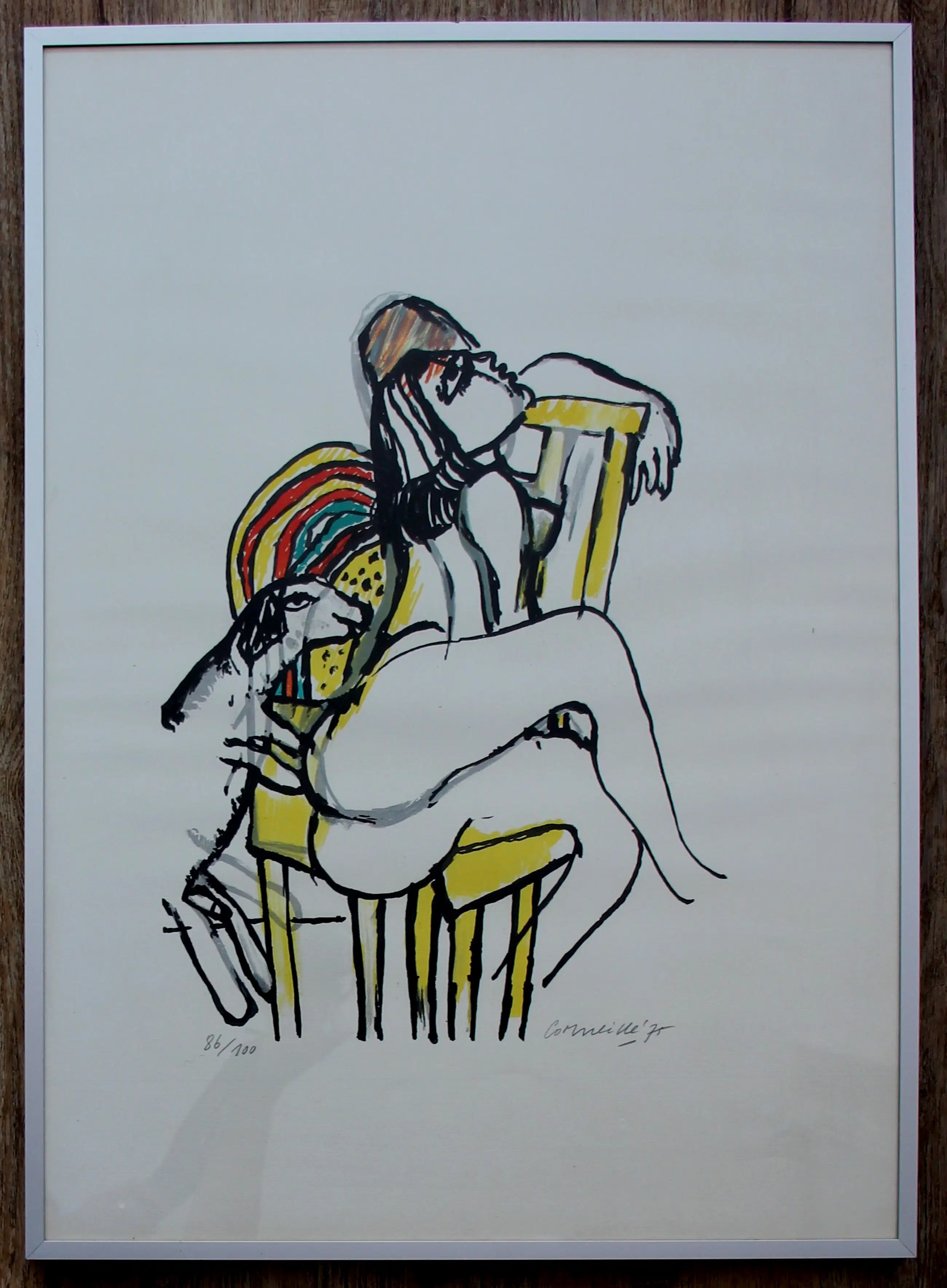 Lithographie encadrée de Corneille. Titre : « Indifférent ». Année : 1975. Tirage : 86/100. Dimensions avec cadre : H 72 x L 52 cm. Dimensions de l’image : H 69 x L 49 cm. L’œuvre est signée par l’artiste en bas à droite. L’authenticité de l’œuvre offerte est pleinement garantie. Un certificat d’authenticité peut être envoyé par courriel sur demande.