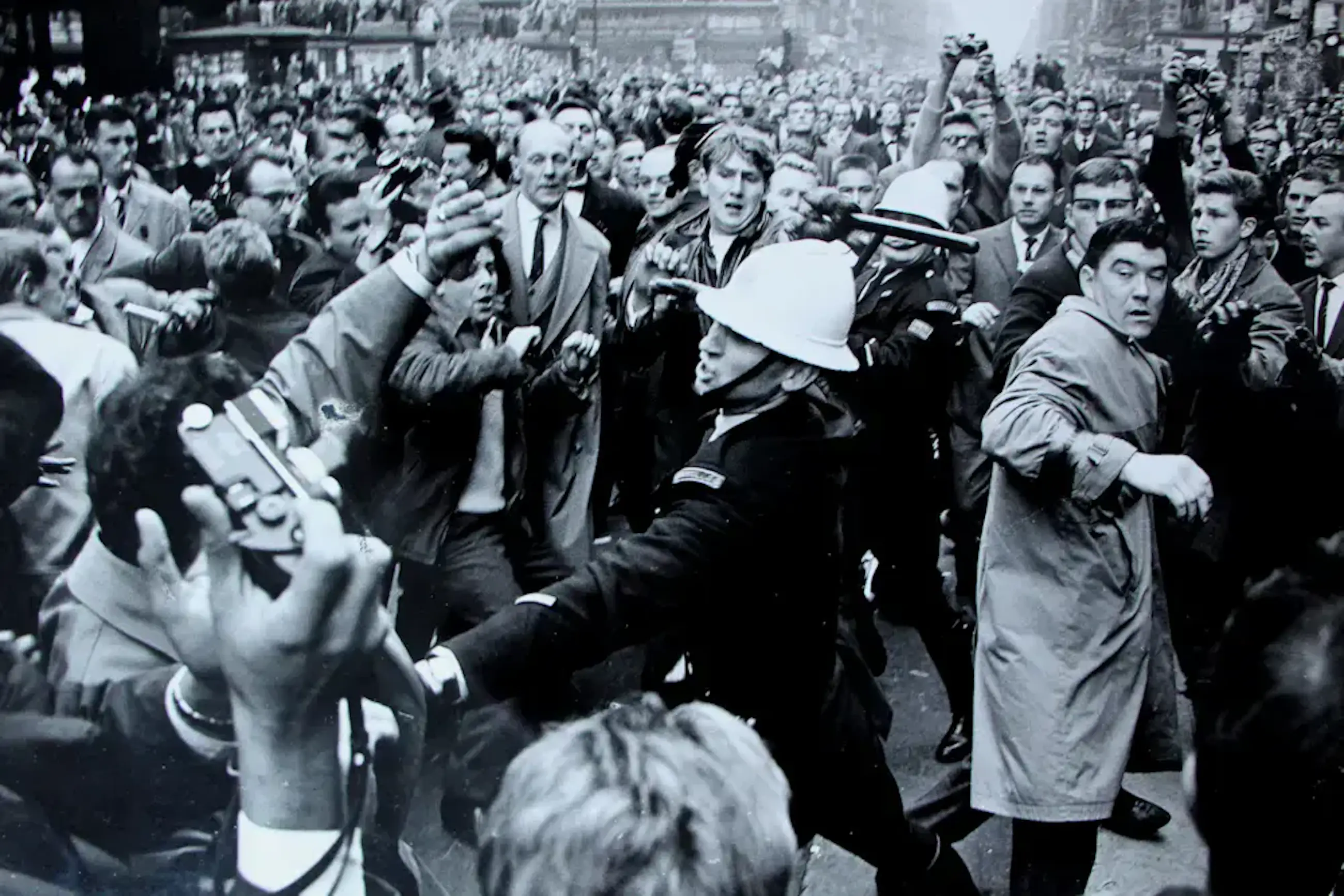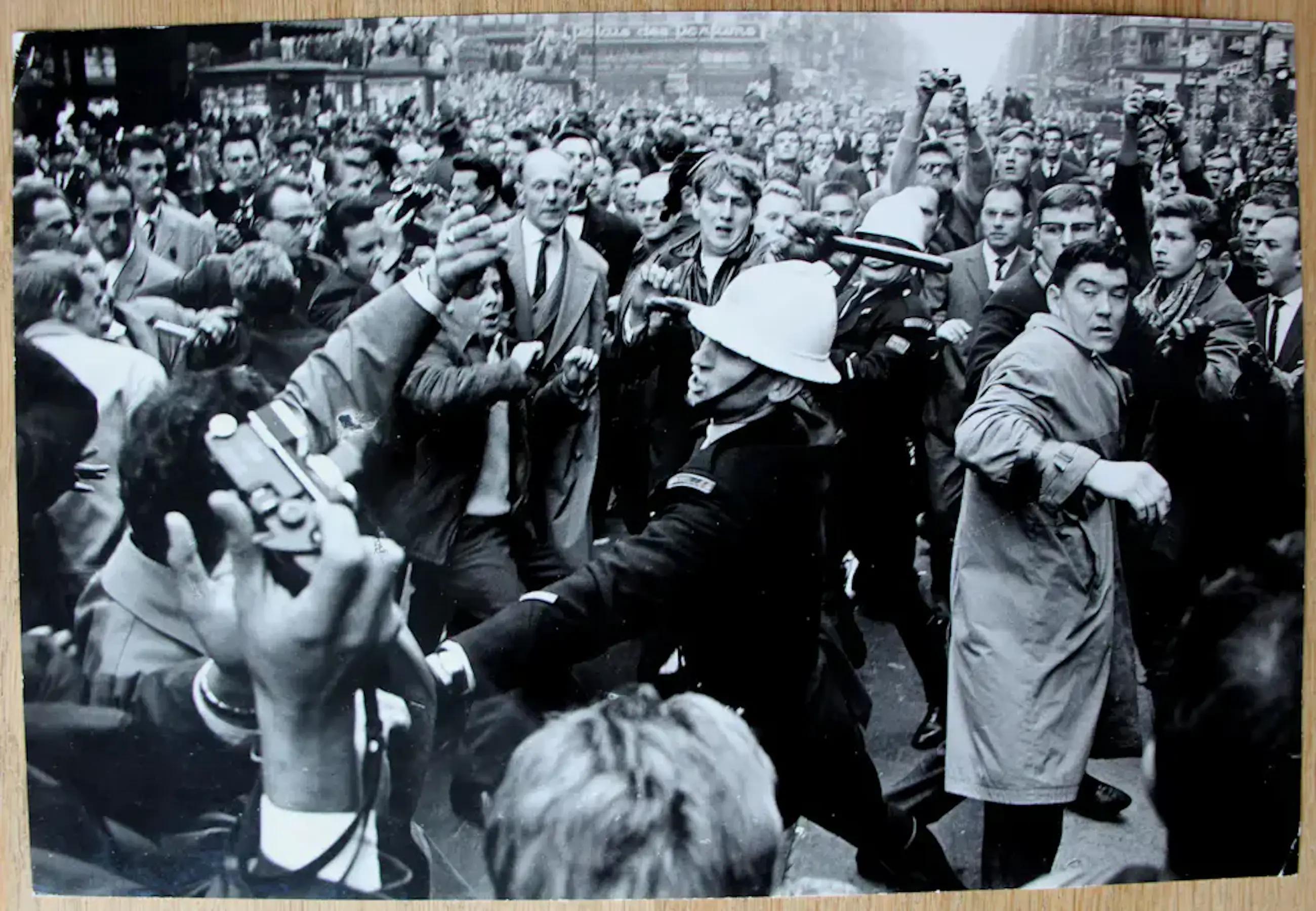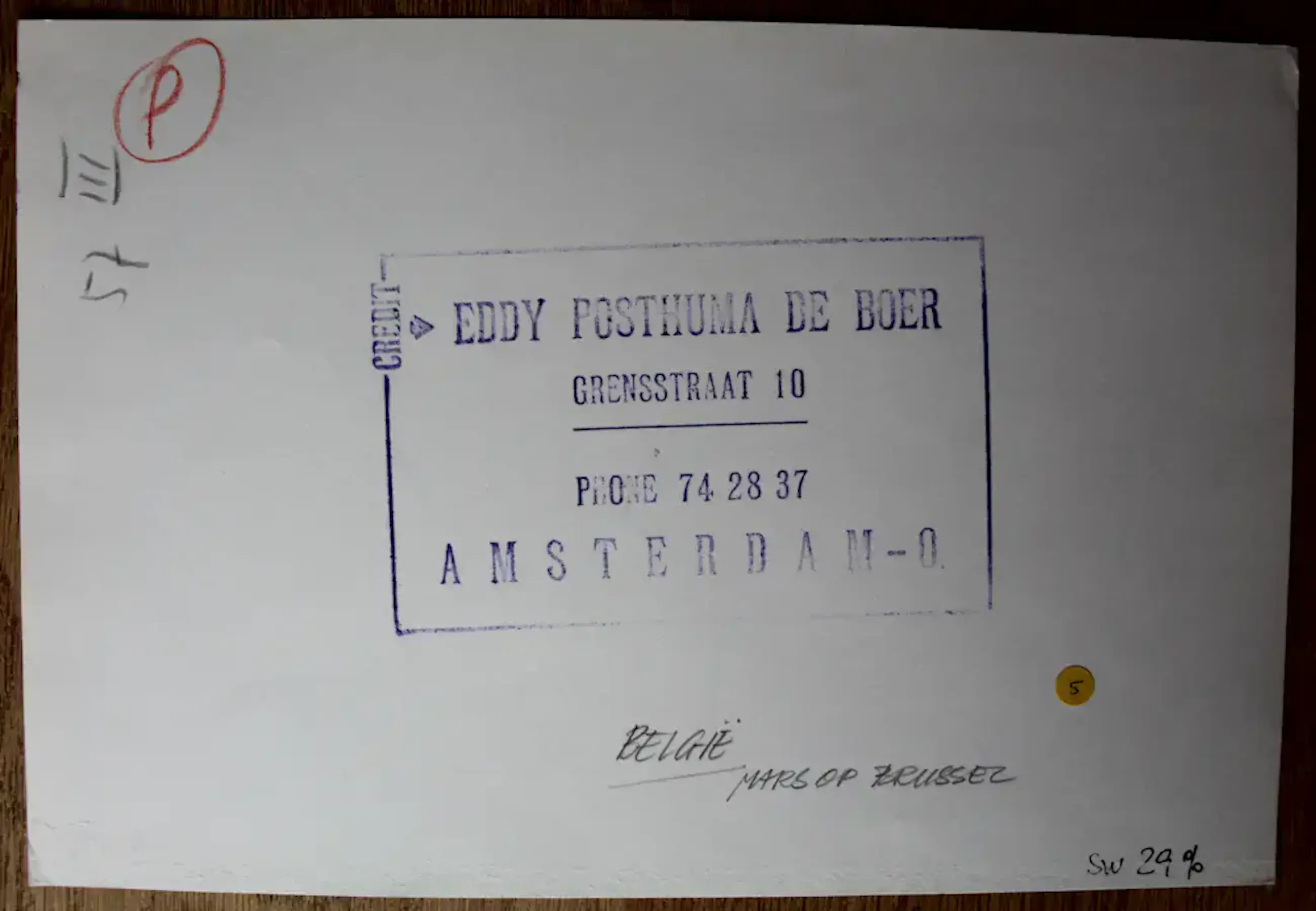 Photo d'Eddy Posthuma de Boer de la « Marche sur Bruxelles » : « Marche sur Bruxelles » fait référence à deux marches de protestation flamandes historiques à Bruxelles. La première a eu lieu le 22 octobre 1961 et la seconde le 14 octobre 1962. Ces marches étaient organisées par le Comité d'action flamand pour Bruxelles et la Frontière linguistique (VABT) en guise de protestation contre le projet de loi linguistique et l'instauration de la frontière linguistique par le gouvernement Lefèvre-Spaak. Une revendication importante était également « Bruxelles bilingue ».