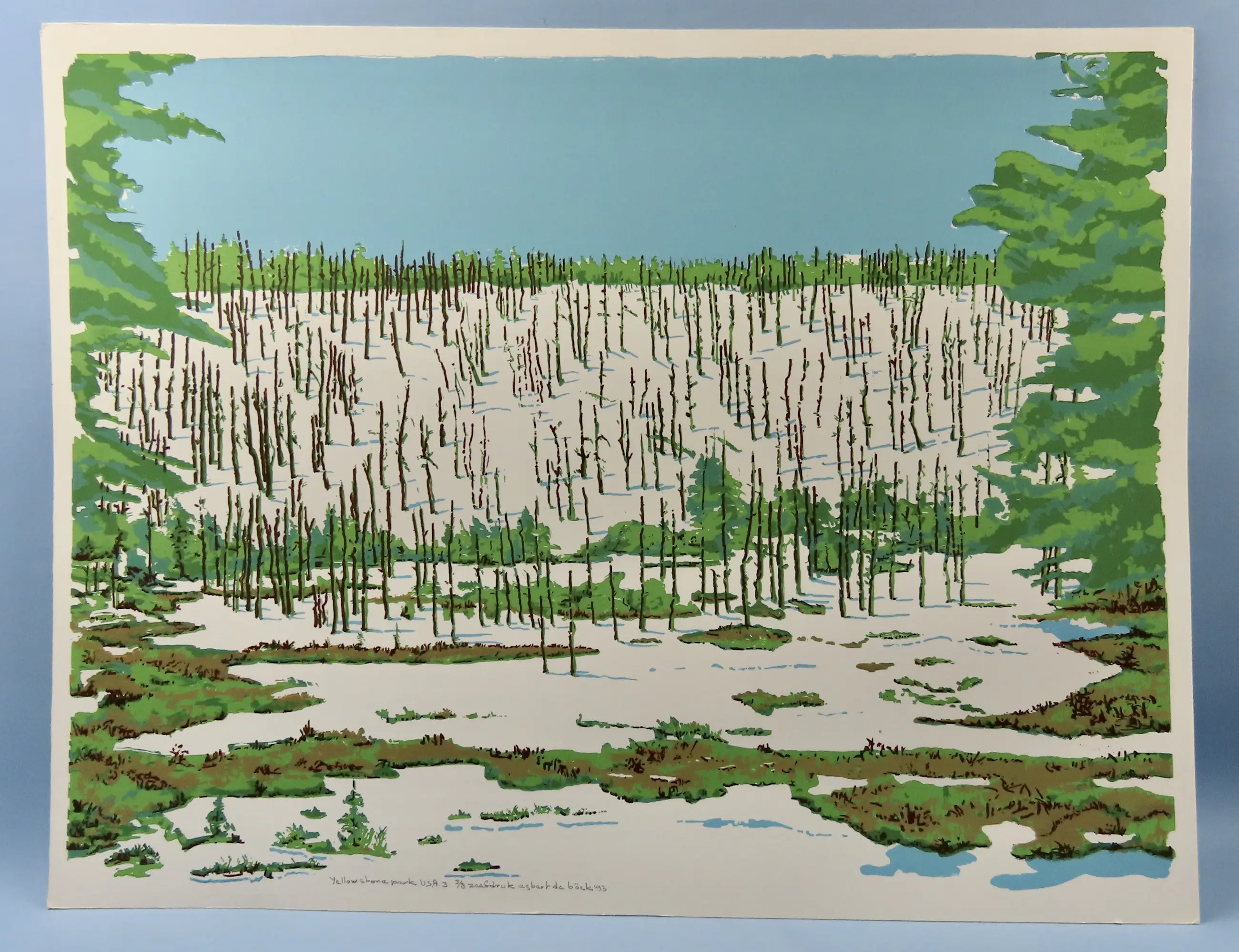 Belle œuvre colorée avec un sujet actuel : les pluies acides. Numéro 3/8 de l'artiste néerlandais Egbert E.B.J. de Böck né le 8 janvier 1921 à Amsterdam décédé en 2002 était un graphiste, peintre, dessinateur, artiste textile, muraliste, designer industriel et sculpteur néerlandais. Egbert de Böck, qui travaillait à Santpoort Noord (Velsen), a fait ses études à l'Académie des Beaux-Arts Psychopolis (Académie Libre) de La Haye et à l'École Secondaire des Arts et Métiers de Maastricht. Il était membre de la Société graphique Drukkerstroost et du Centre des artistes de Bergen.