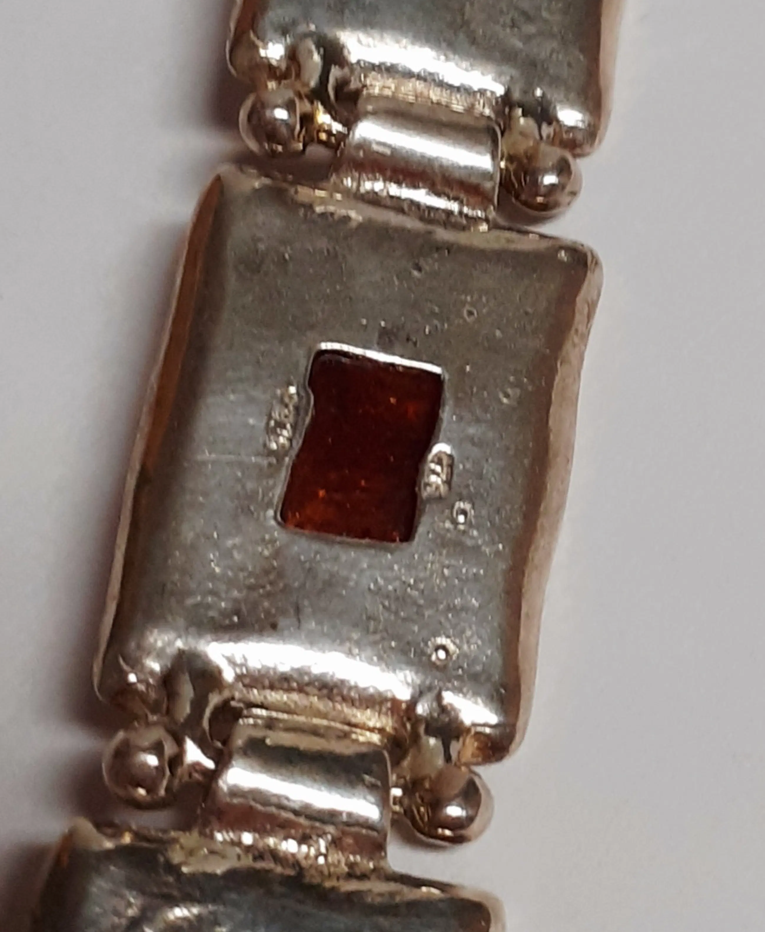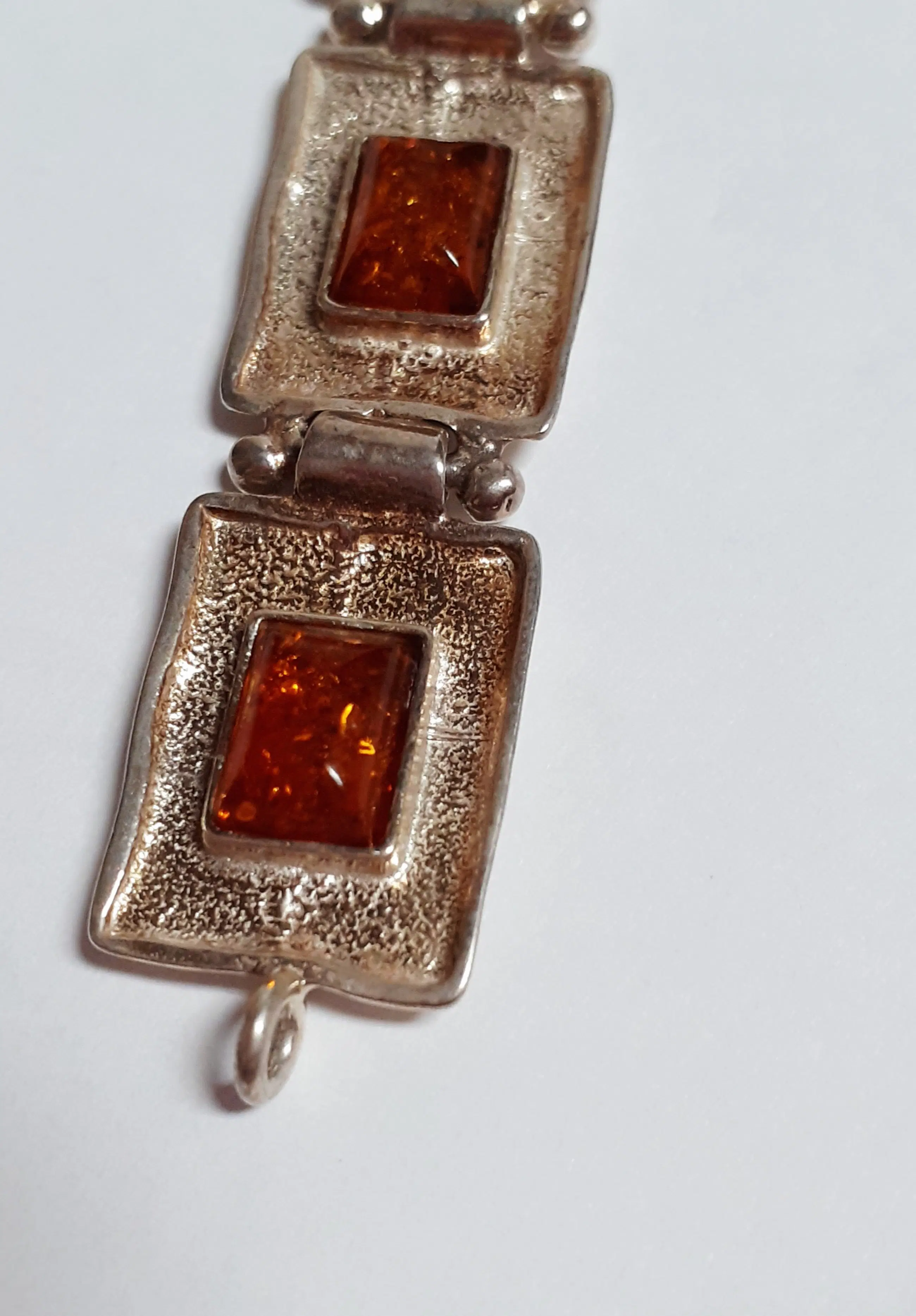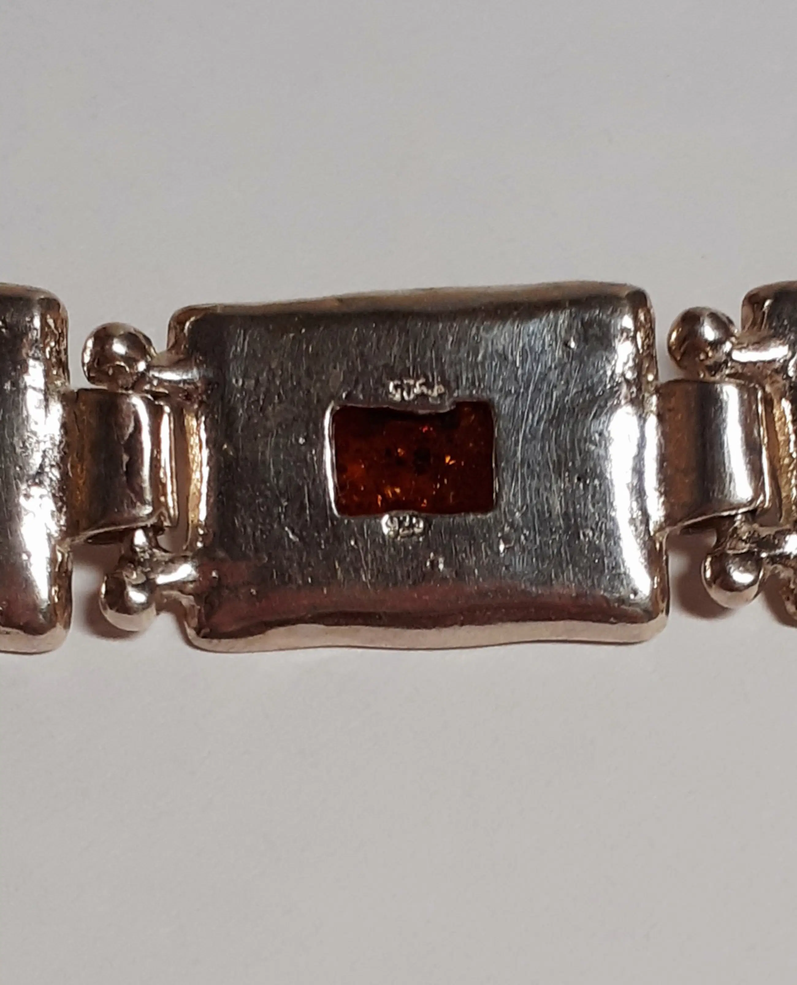 En état neuf. Bracelet en argent serti d'ambre naturel rectangulaire.