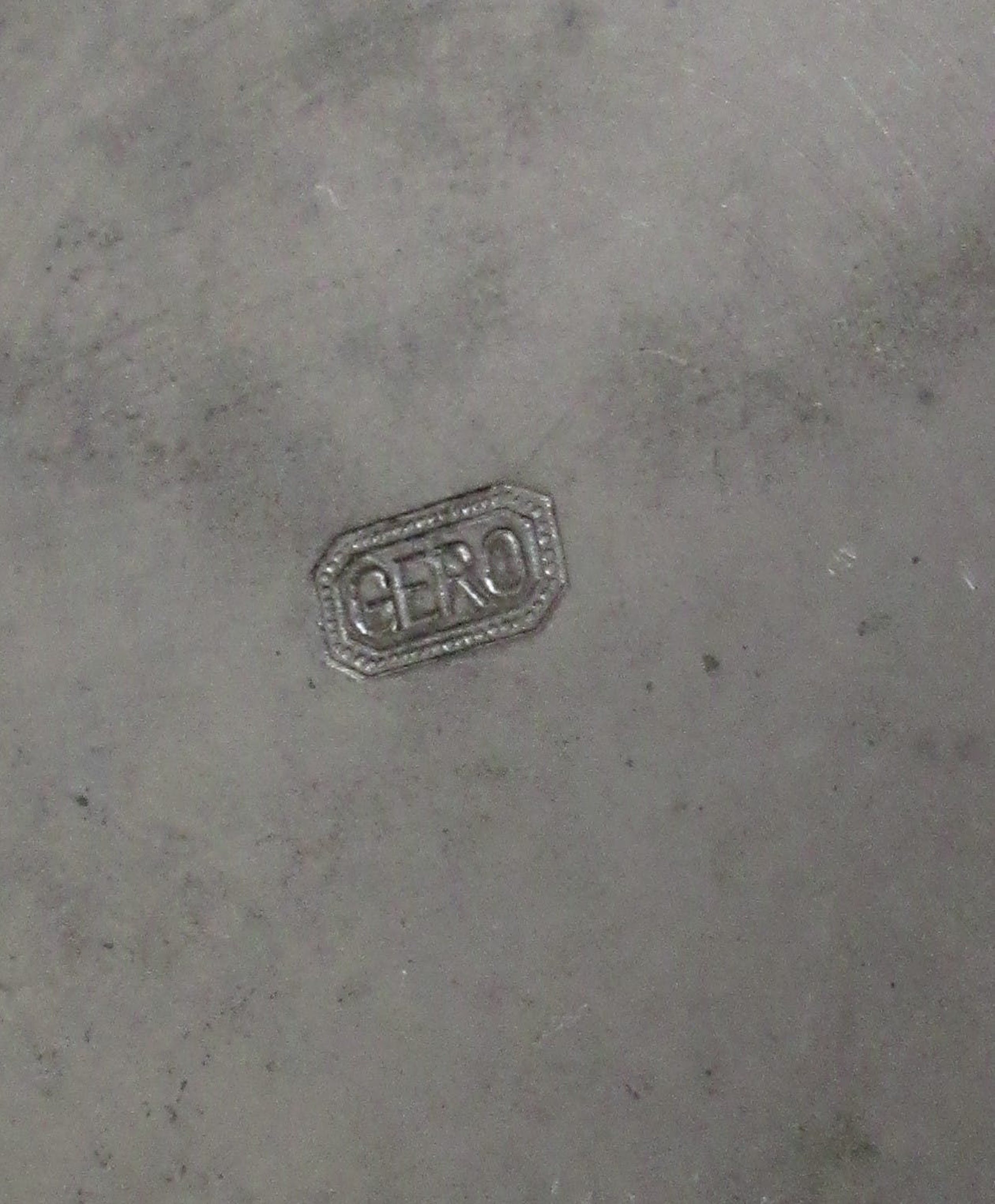 Hand gehamerde art deco tinnen vaas van Gero uit Zeist. Ontwerp mogelijk van Georg Nilsson, maar de vaas is niet voorzien van een monogram. In prima gebruikte conditie. Voorzien van ingedrukt merk aan de onderzijde.