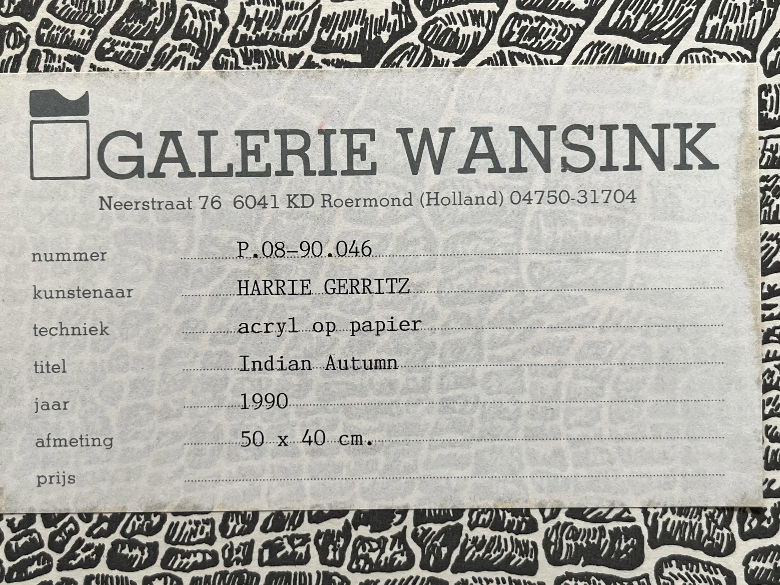 Belle gouache de 1990, provenant de l'ancienne collection DSM. Acheté à l'époque à la galerie Wansink. L'œuvre est encadrée dans un cadre de couleur argentée. (Légers signes d'utilisation) Peut être accroché directement au mur. Format gouache 50 x 40 cm. Cadre inclus 74 x 62 cm.