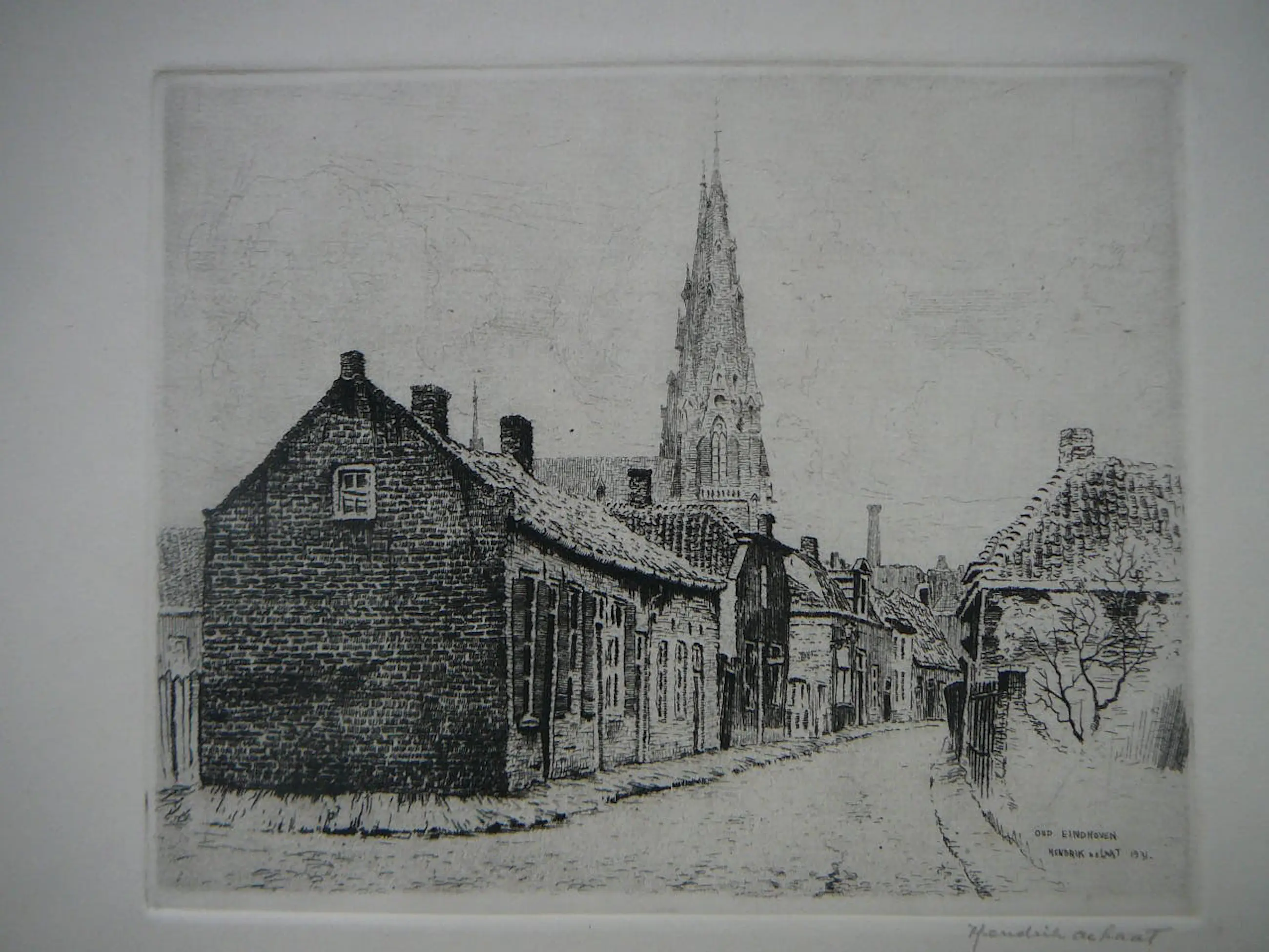 Très belle gravure de Oud Eindhoven par Hendrik de Laat de 1931