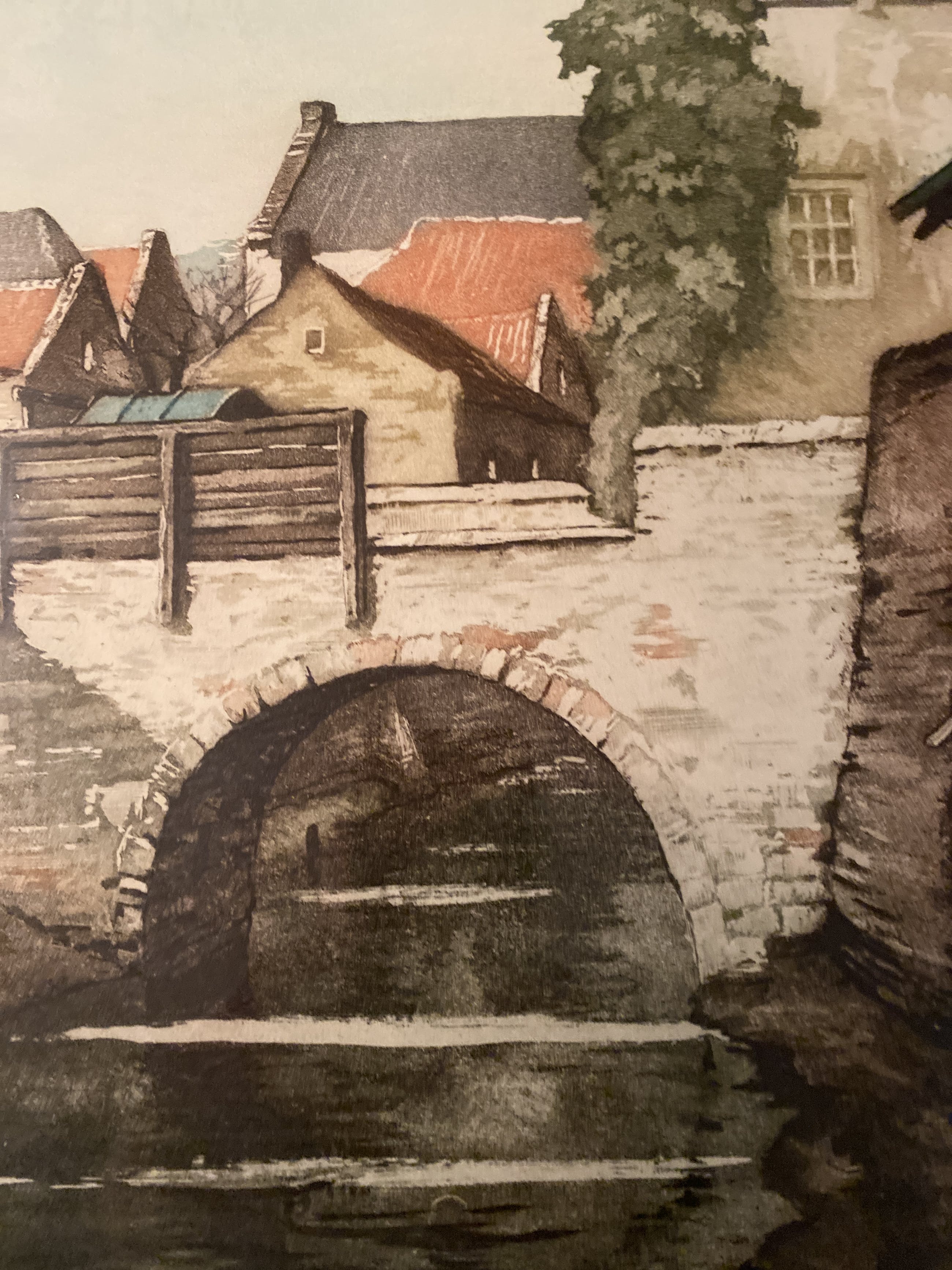 Ets van huizen aan de dieze met de st jan toren op de achtergrond