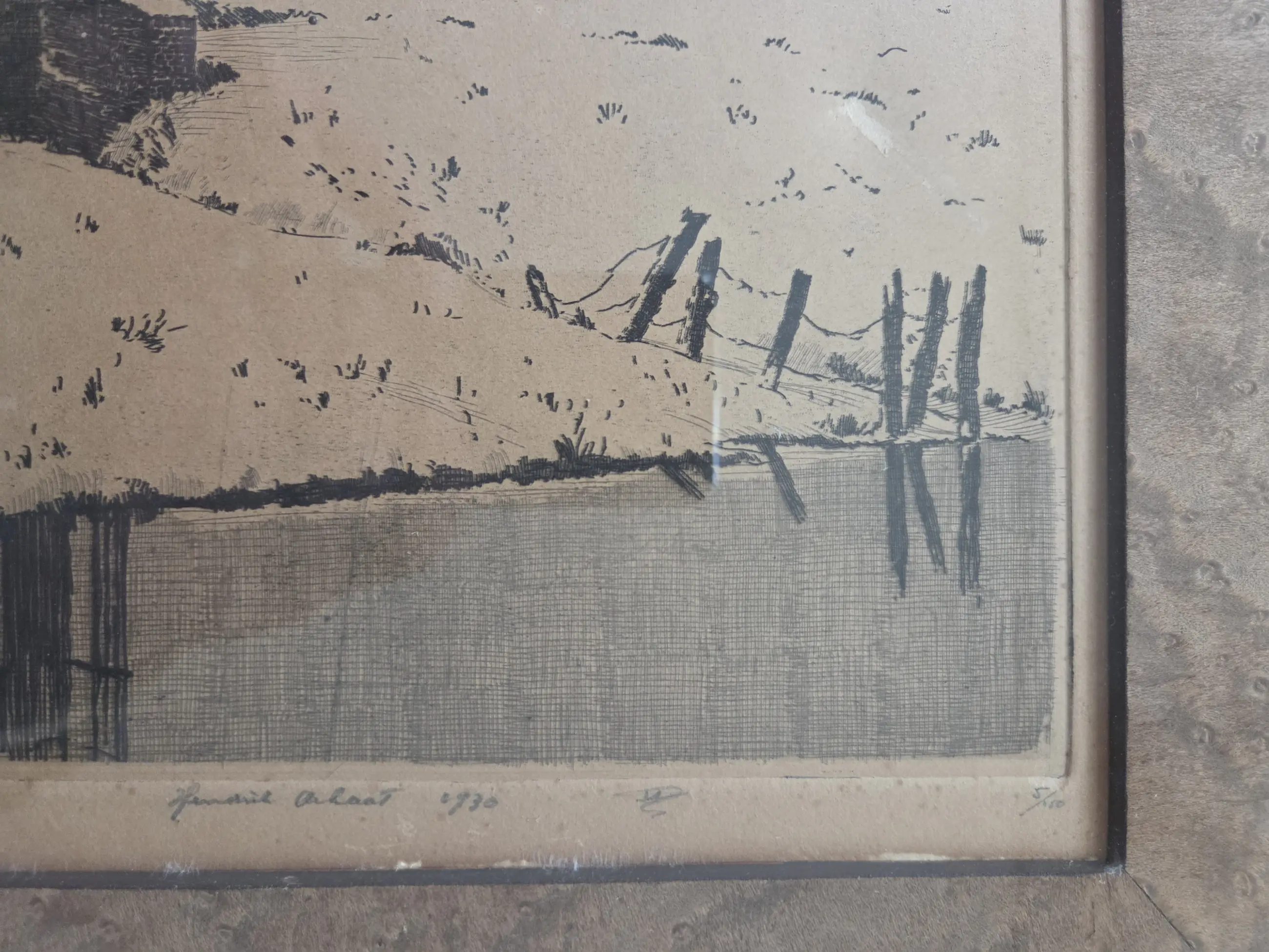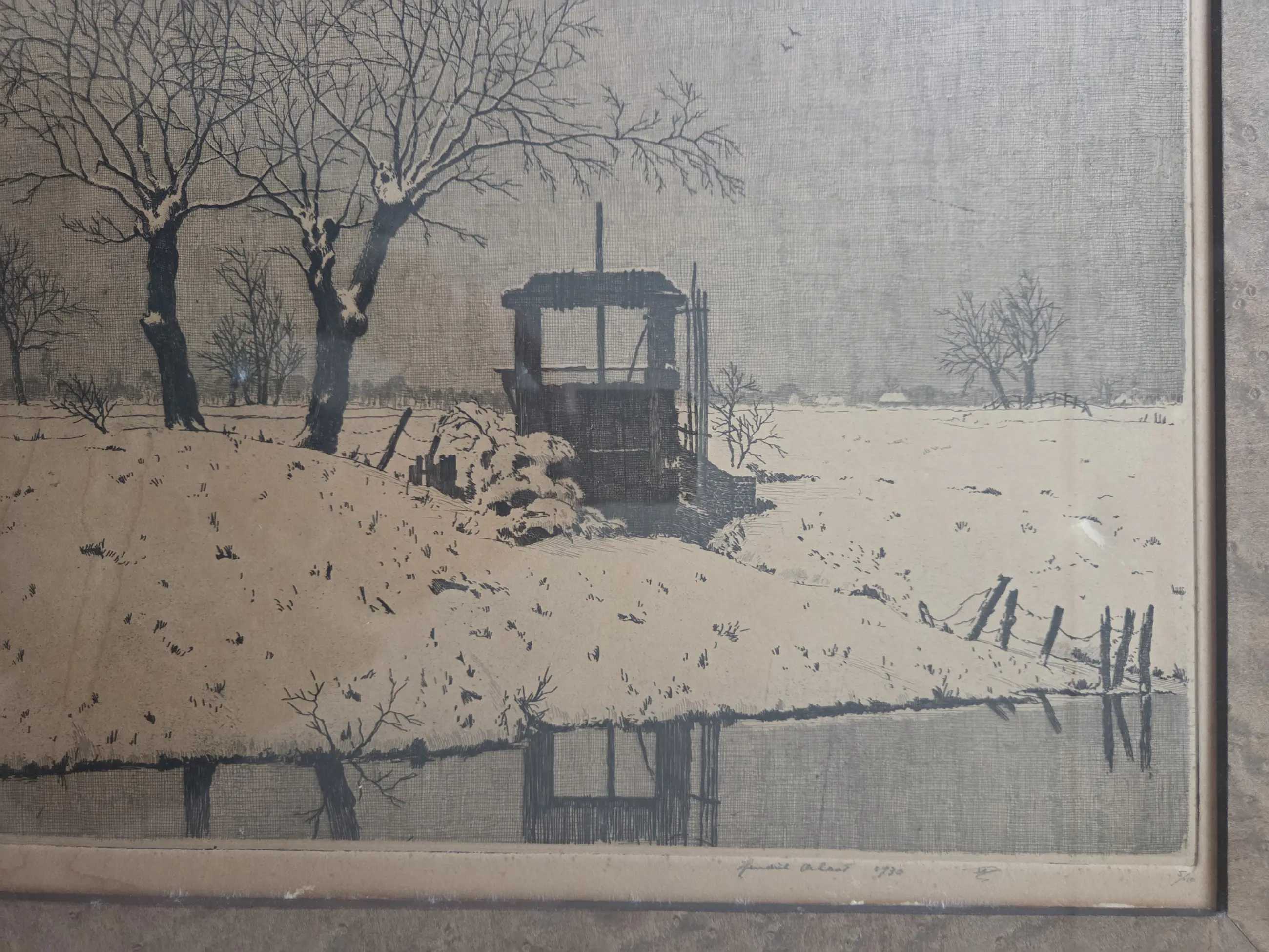 Belle gravure unique. Signé et daté. Généralement en bon état compte tenu de l'âge. Dans son cadre d'origine avec traces d'utilisation. Cadre 64x74cm Œuvre 30x59cm Veuillez consulter les photos pour juger vous-même de la qualité.