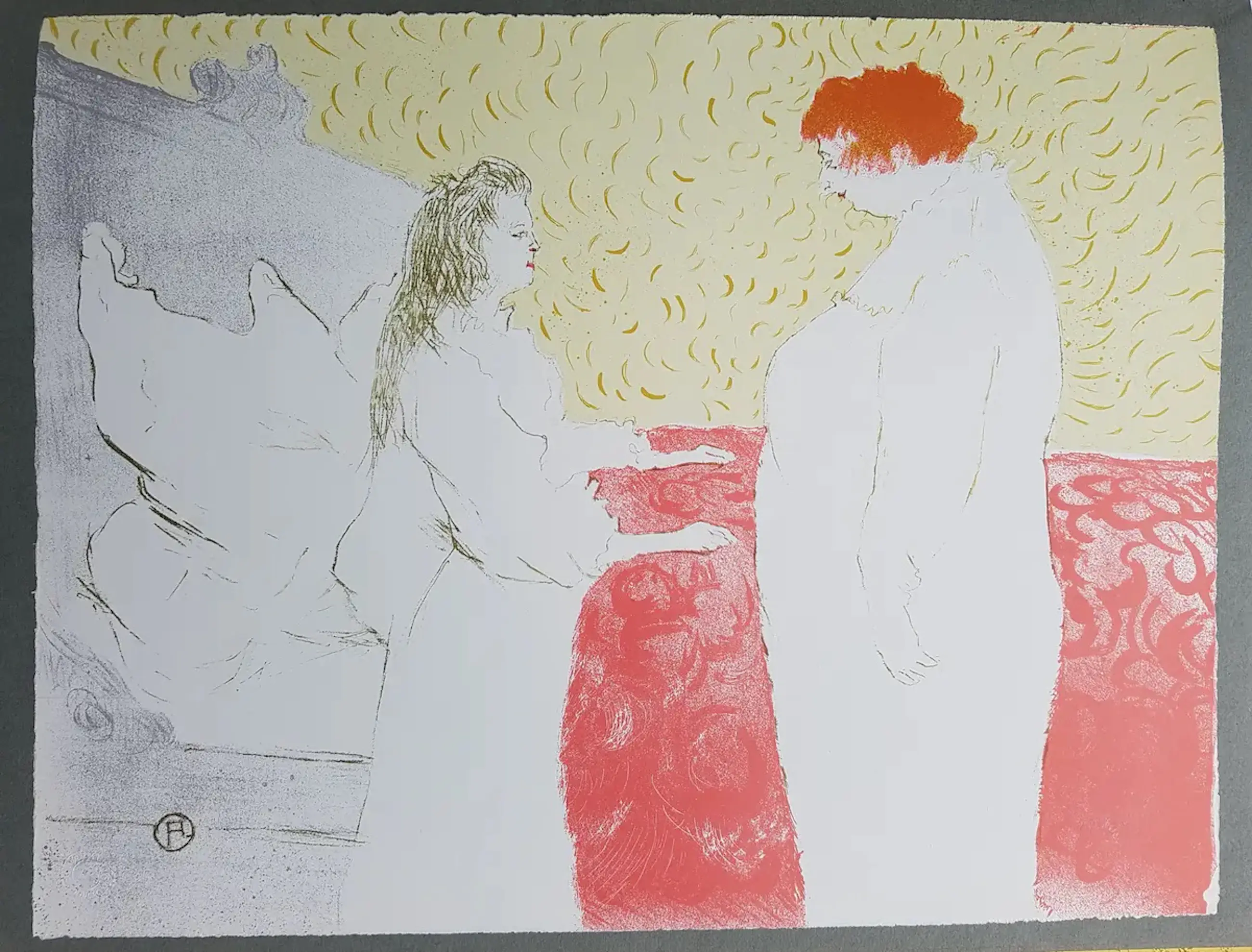 Henri Toulouse-Lautrec - « Elles » 1969 - Édition limitée à 1 250 exemplaires. Complet de 11 lithographies. Le Cercle Toulouse-Lautrec de Londres a publié ce portfolio en 1969 à 1 250 exemplaires, dont celui-ci porte le numéro 498. Les 11 lithographies fac-similées sont numérotées à la main et estampées à froid (voir photo). Dimensions de la lithographie : 41 x 51 cm. Édition fac-similé de la carte originale de 1896 en 100 exemplaires. Le format est grand. Le coffret contenant le portfolio mesure 44 x 58 cm. Les lithographies sont imprimées dans leur format original de 40 x 51 cm. Le papier fait main des lithographies provient de la Papeterie de Lana de Docelles (France) et porte le filigrane TL 1969. De nos jours, il est rare de le trouver complet avec toutes les lithographies ; les lithographies sont souvent découpées et vendues séparément ; voir la photo pour plus d'informations.