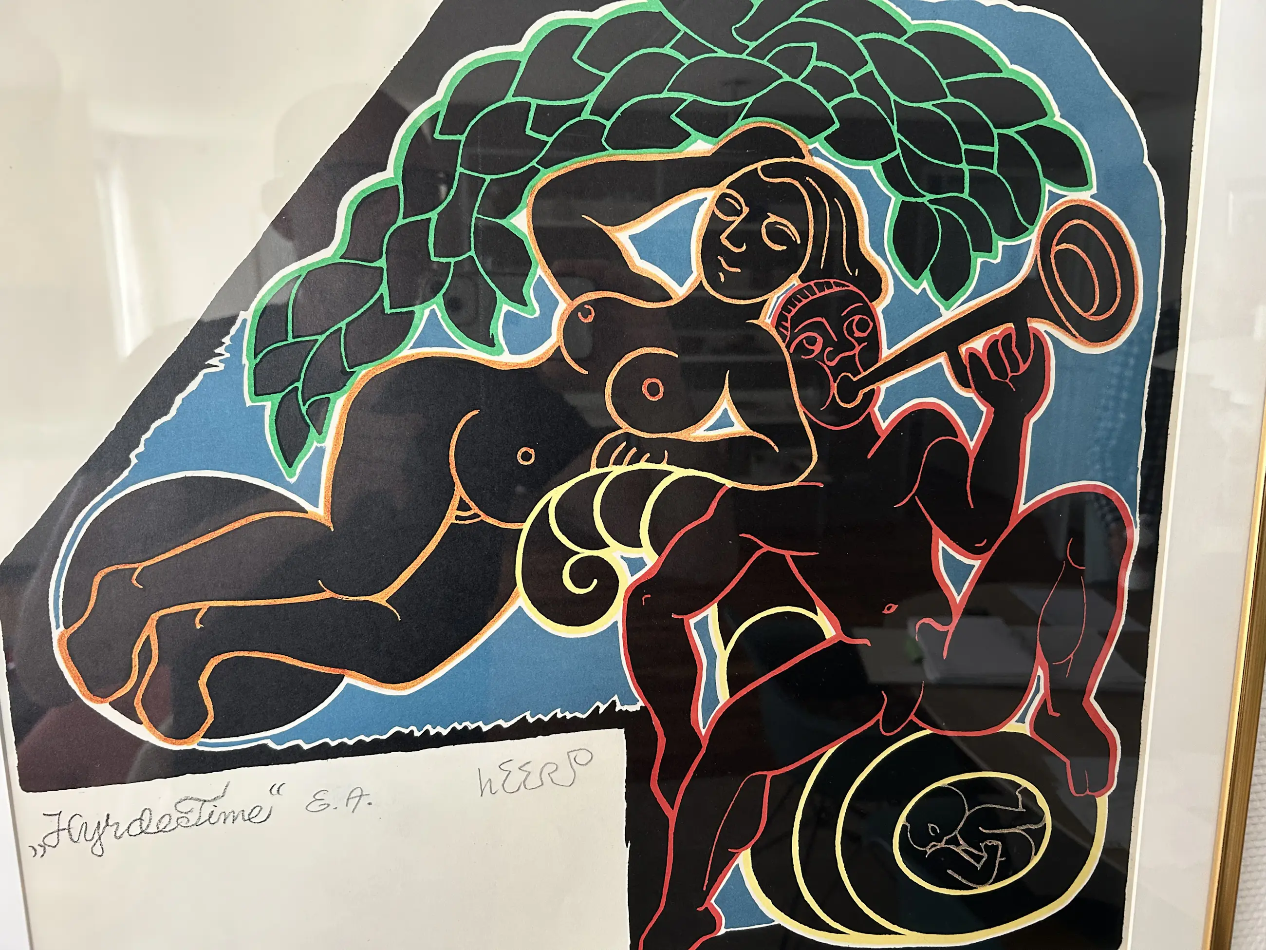 Belle grande lithographie couleur de l'artiste Cobra Henry Heerup.