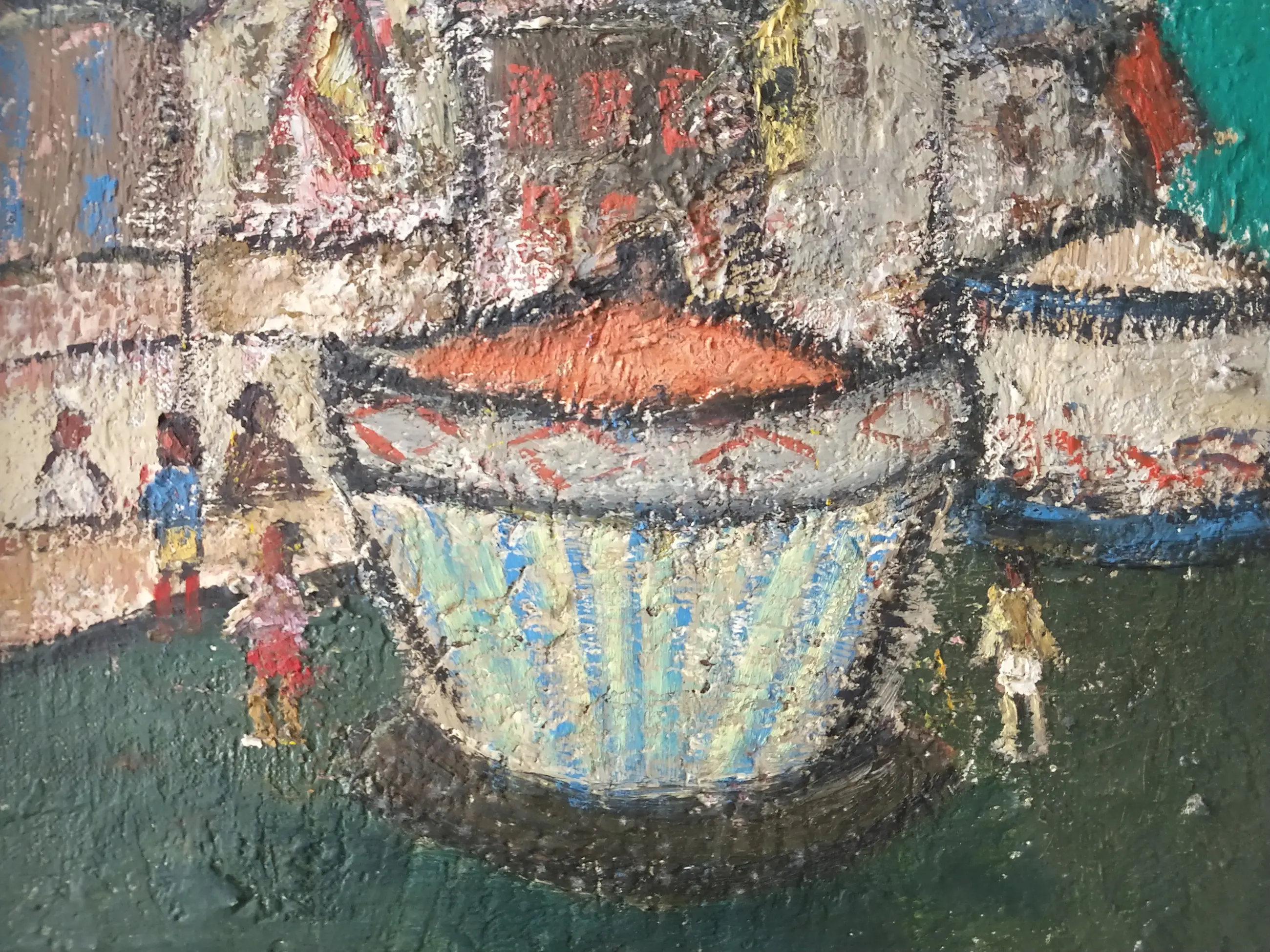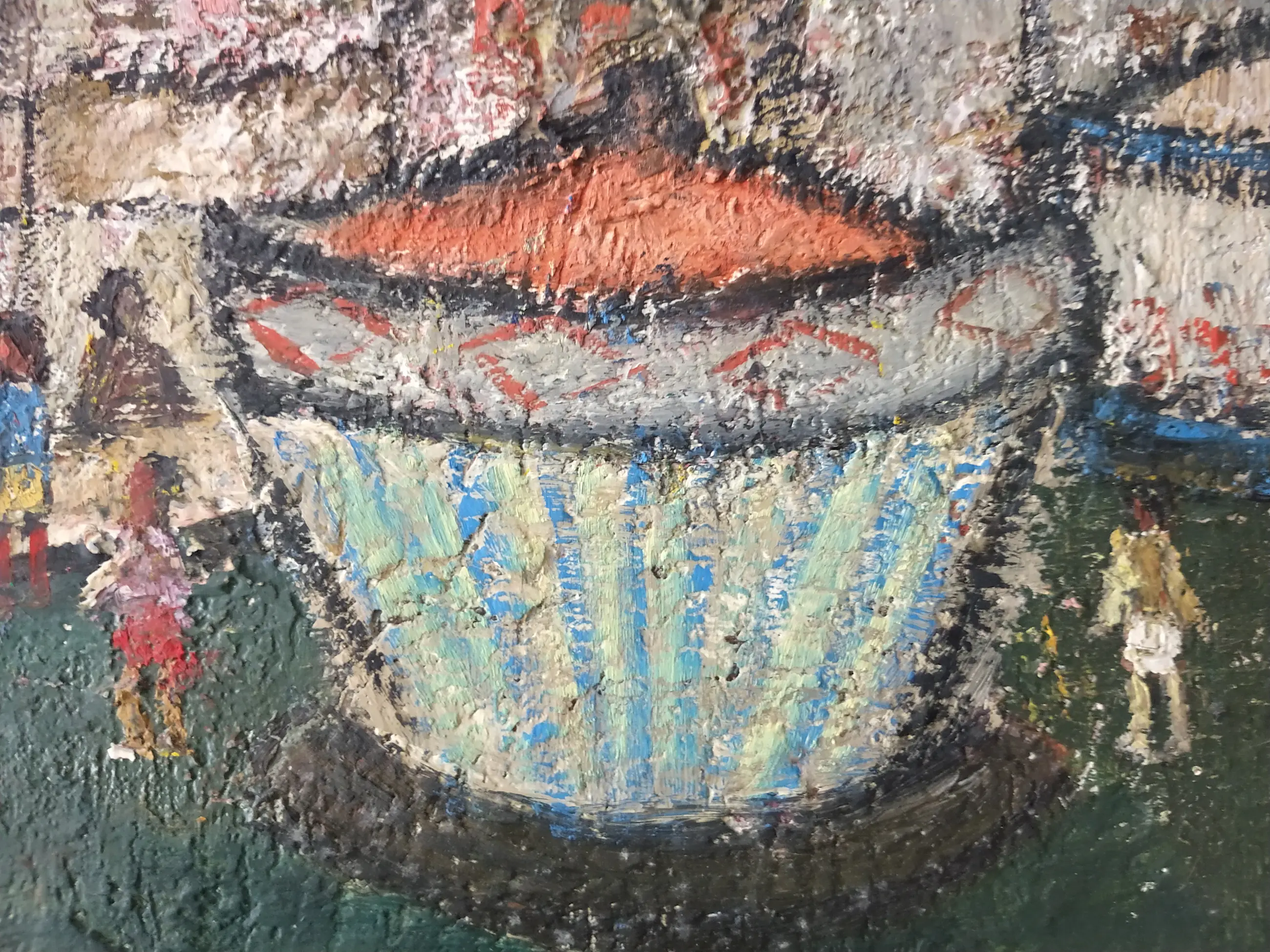 Hubert de Vries. Manège avec enfants. Huile sur toile. Une œuvre très expressionniste et atmosphérique.