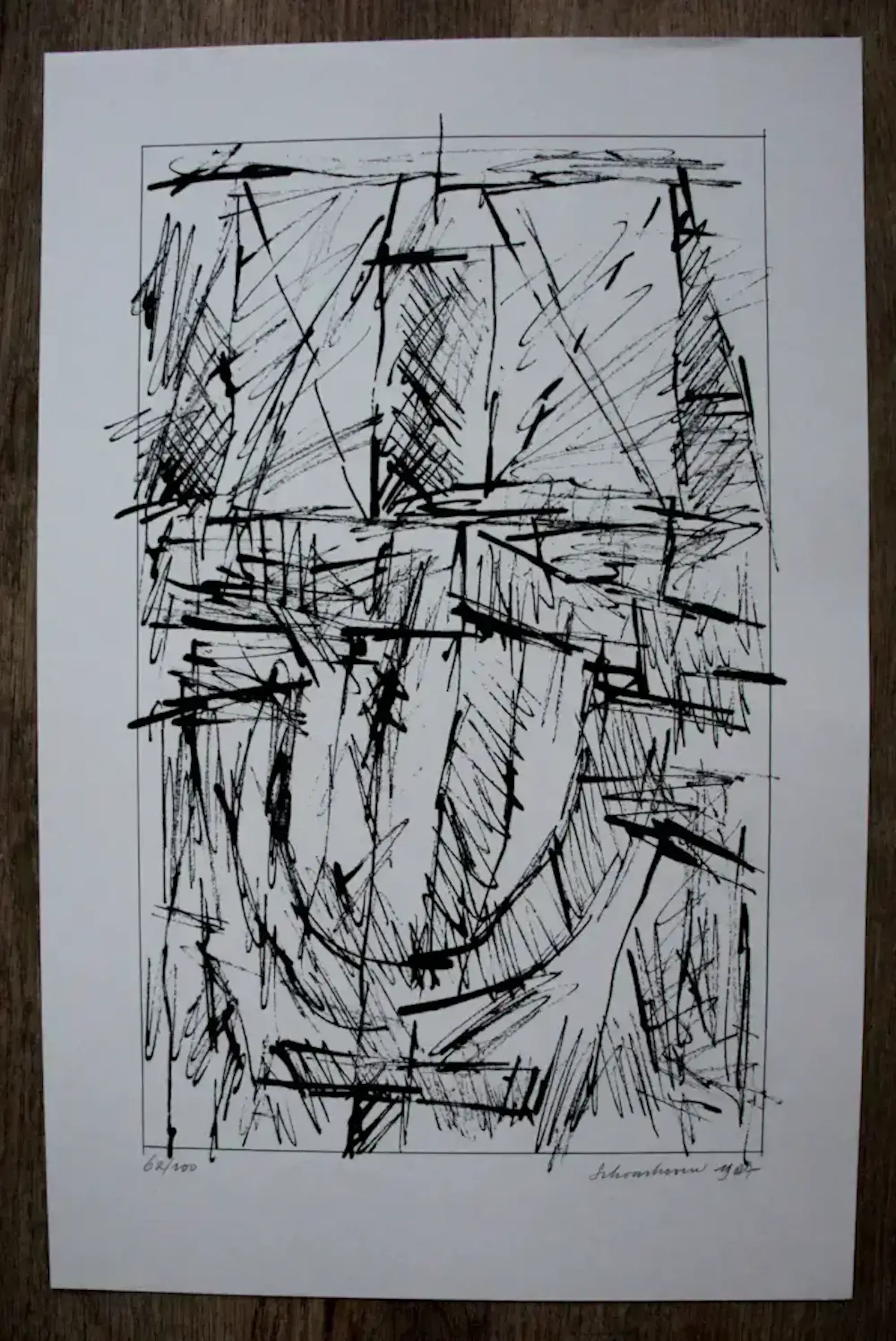 Sérigraphie de Jan Schoonhoven tirée de la « Carte des formations ». Numéro : 62/100. Dimensions de la feuille : H 50 x L 32,5 cm. Dimensions de l’image : H 40 x L 24,5 cm. L’œuvre est signée et datée (1987) au crayon en bas à droite par l’artiste. L’authenticité de l’œuvre est pleinement garantie. Un certificat d’authenticité peut être envoyé par courriel sur demande.