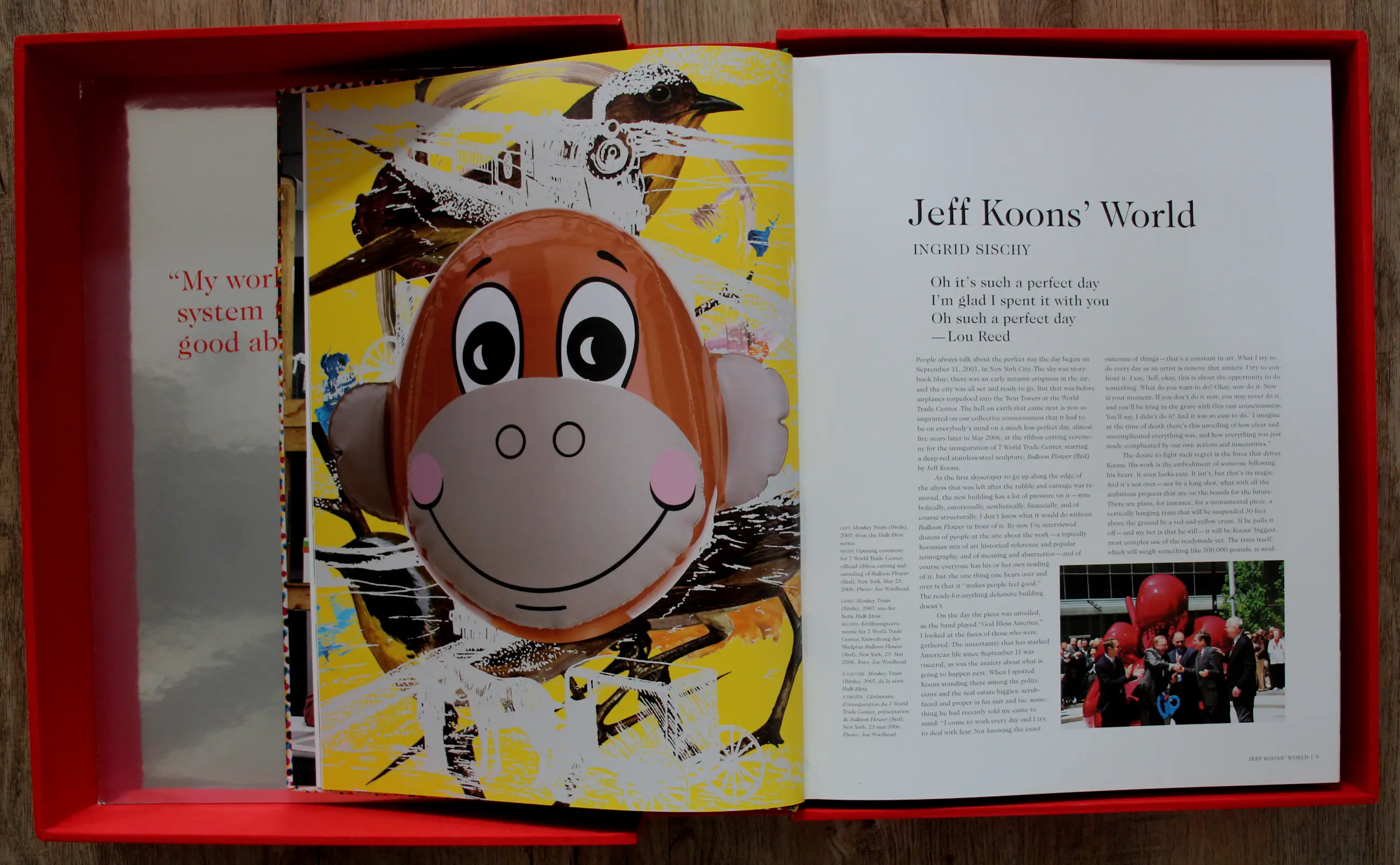 Livre épuisé sous coffret relié, de Jeff Koons. Éditeur : Taschen. Prix : 3 500 euros chez Taschen. Voir leur site web. Emballé dans son coffret d’origine. Textes en anglais, allemand et français. Titre : Année : 2007. Édition : 1554/1600. Dimensions : H 45 x L 34,5 cm. Le livre est signé par l’artiste (Monogramme JC au feutre). L’authenticité des œuvres proposées est pleinement garantie. Un certificat d’authenticité peut être envoyé par courriel sur demande.