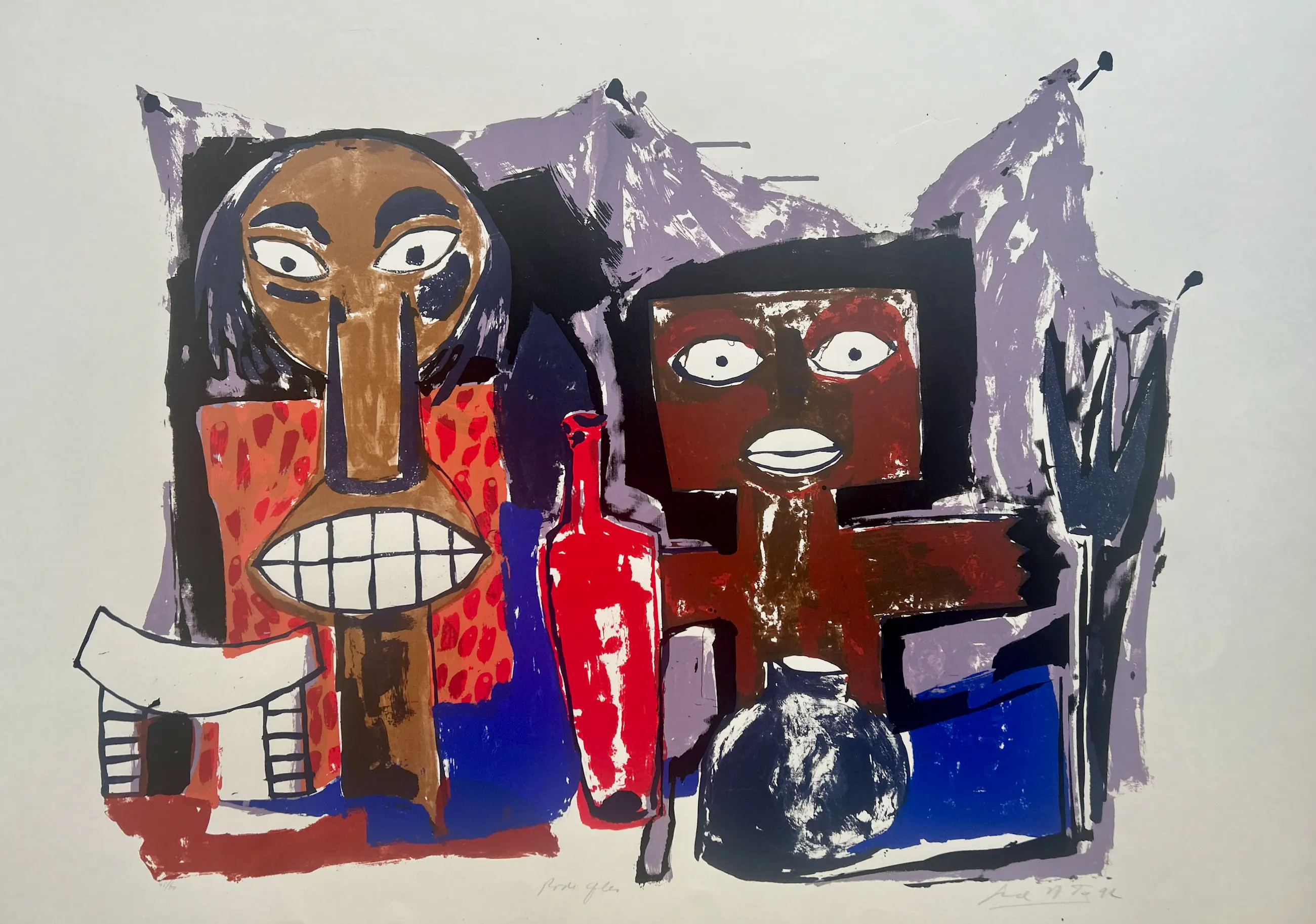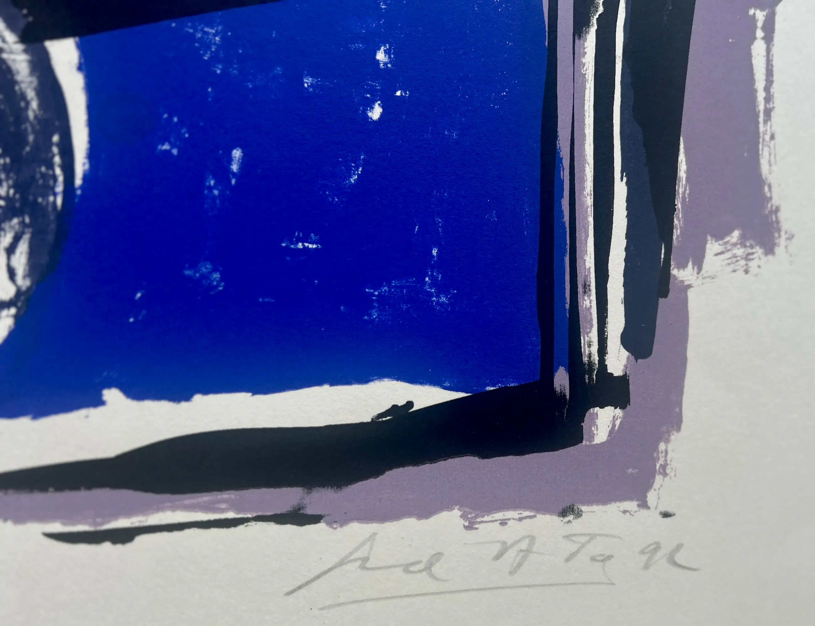 État : très bon. Légère pliure dans la feuille entre la partie violette et une petite déchirure de 1,5 cm le long du bord de la feuille, voir photos. Tirage : 45/60. Dimensions : image 67 x 86 cm. Sera soigneusement emballé et expédié assuré.