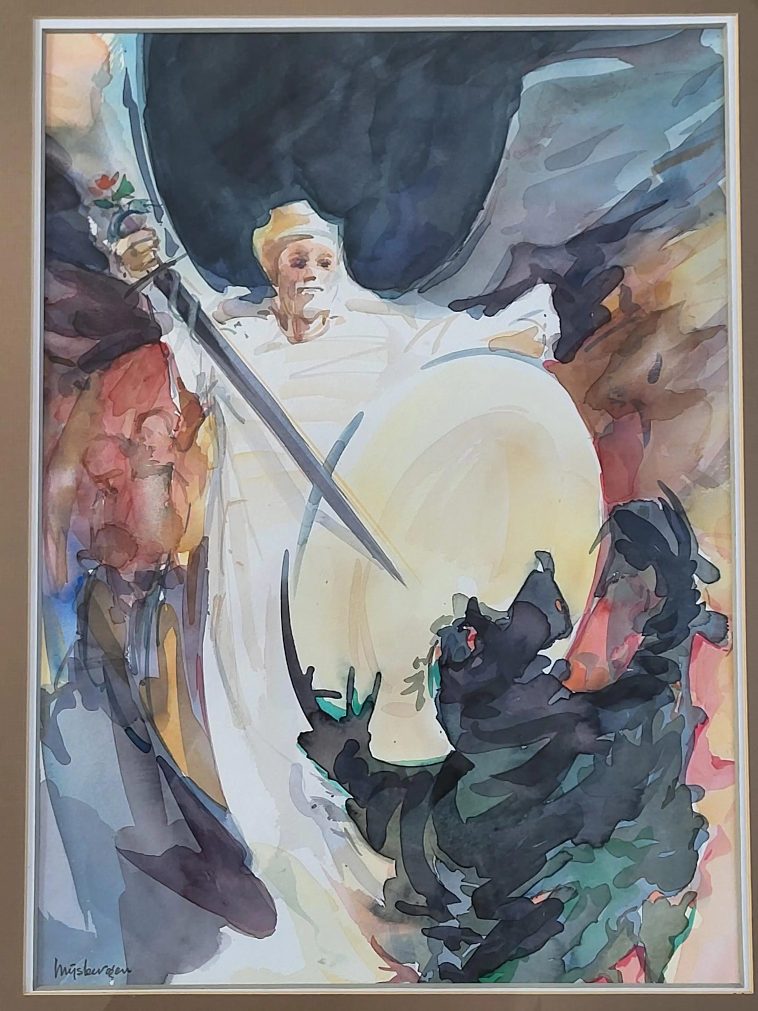 JOOP MIJSBERGEN (Bergen op Zoom, 1934) fut professeur professionnel de vitrines, de publicité et de création de bijoux à Anvers, ainsi que professeur de dessin à plusieurs endroits de Bergen op Zoom. Il fut néanmoins un peintre passionné toute sa vie. Partout où il le put, notamment en tant que fondateur du Kunstkring (Cercle d'Art) puis directeur de la Fondation ETCETERA, il se consacra à encourager et à offrir des opportunités aux jeunes artistes. Son œuvre reflète la quête, la lutte et le désespoir humains, mais aussi le désir de beauté et de transcendance. Il expose régulièrement depuis 1959 (!) aux Pays-Bas, en Belgique, en Suisse, en France, en Espagne et en Pologne.