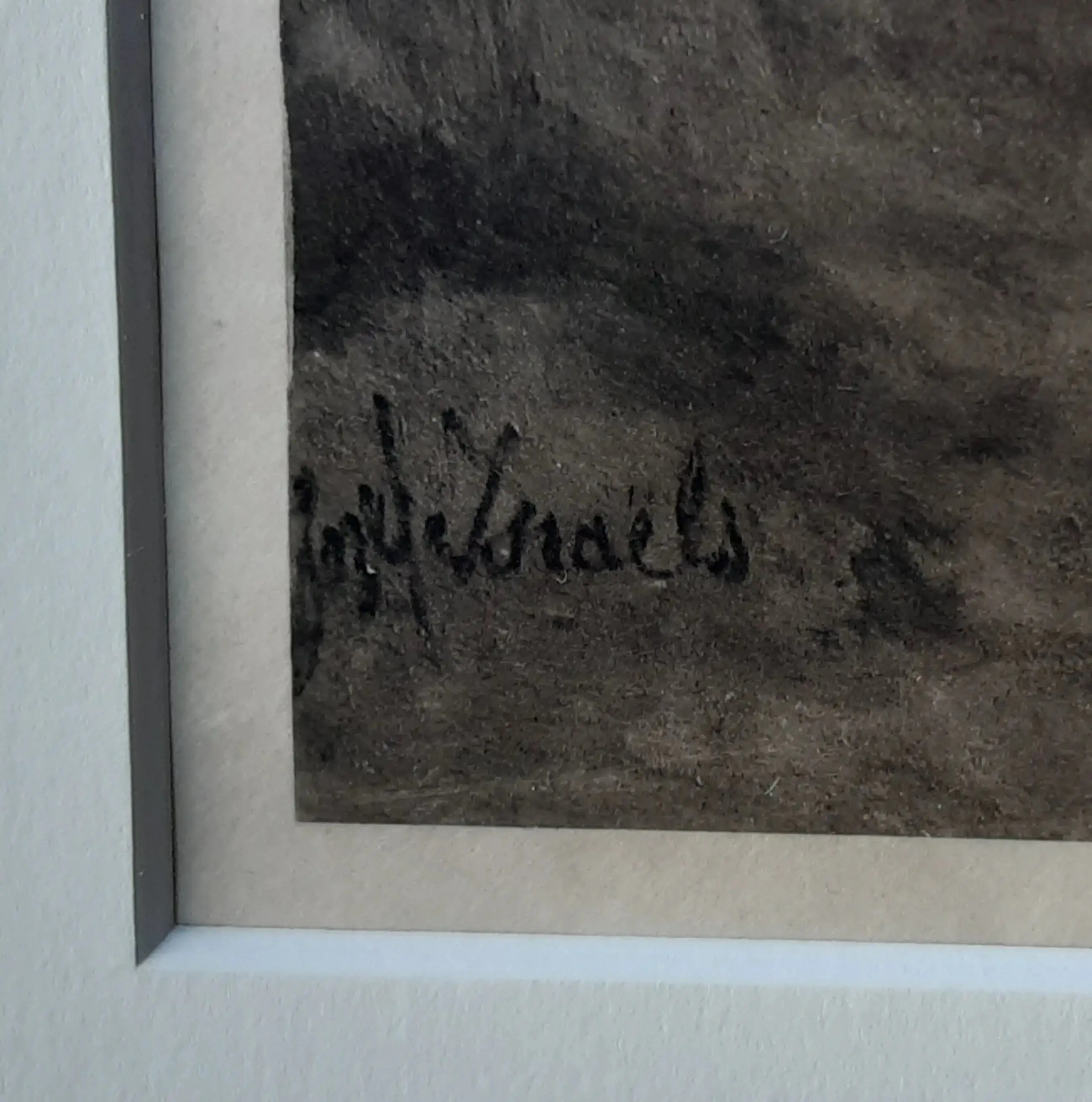 Magnifique photogravure du célèbre tableau « L'Homme qui se noie » de Jozef Israels, datant de 1861 et conservé à la National Gallery de Londres. Cette gravure fut publiée par Gebroeders E. & M. Cohen en 1904 pour commémorer le 80e anniversaire de Jozef Israels. Elle faisait partie d'un coffret de luxe de 50 œuvres d'Israël accompagnées de textes. Cette gravure est encadrée d'un passe-partout dans un magnifique cadre en ronce de noyer. Signée en bas à gauche. Les photos présentent des reflets dans le verre.