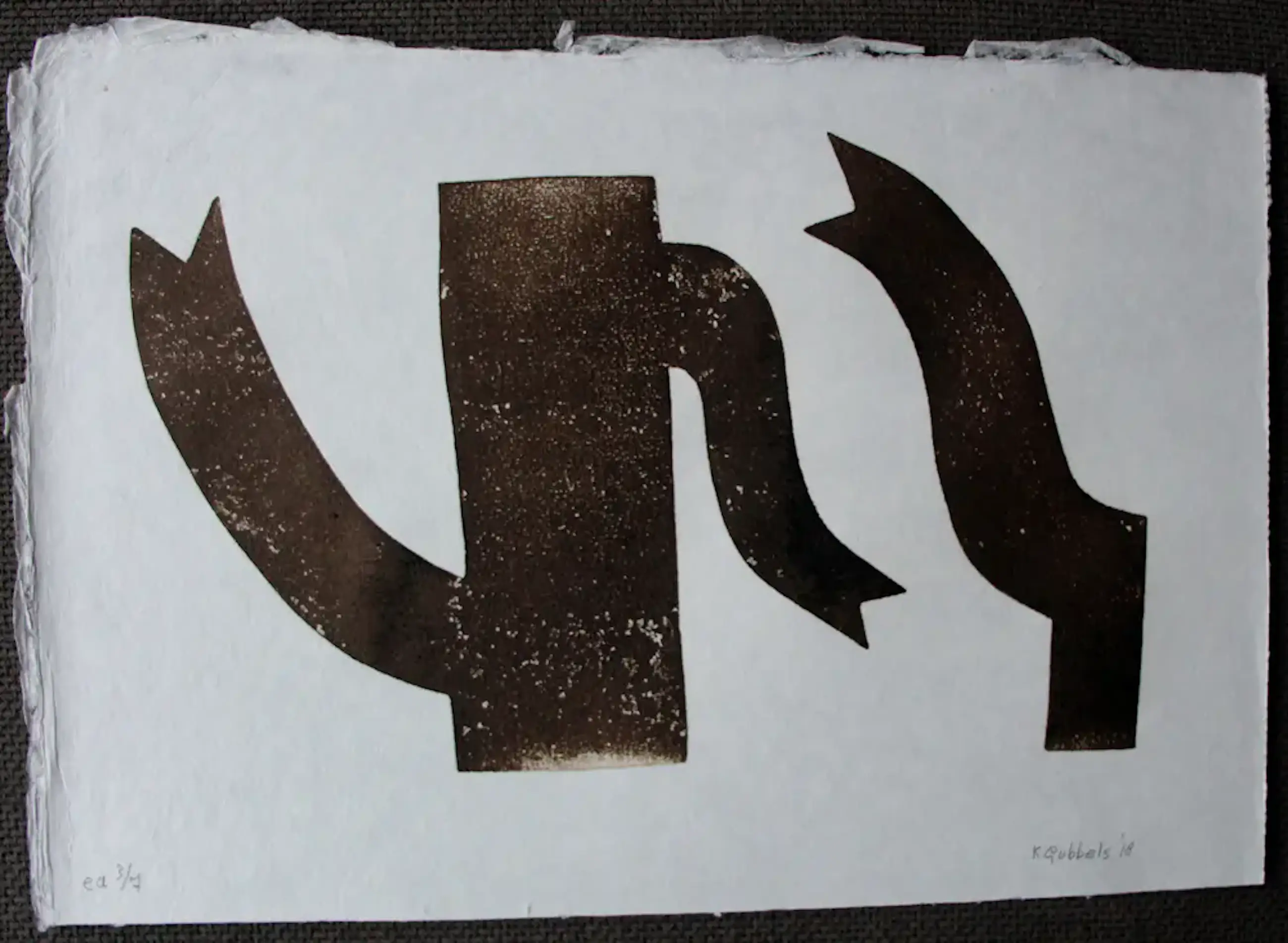 Gravure au goudron de Klaas Gubbels de 2018. Représentant une cruche brune.