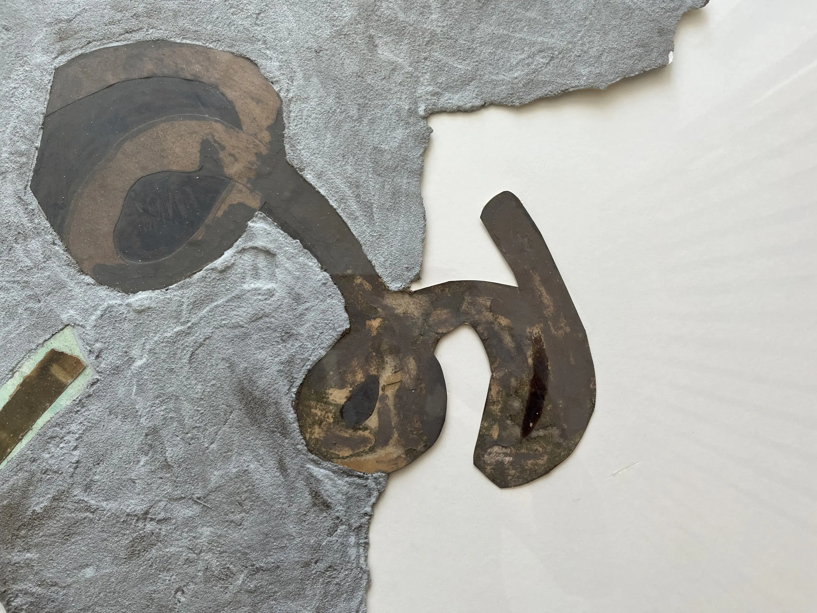 Il s’agit d’un collage unique et de très grand format, réalisé en techniques mixtes sur carton par Klaus Baumgärtner. Les matériaux et la technique utilisés confèrent à l’œuvre un caractère tridimensionnel. L’œuvre, signée et datée au bas du collage (voir photos), est très robuste et joliment encadrée. Elle provient de la galerie Nouvelles Images de La Haye.
