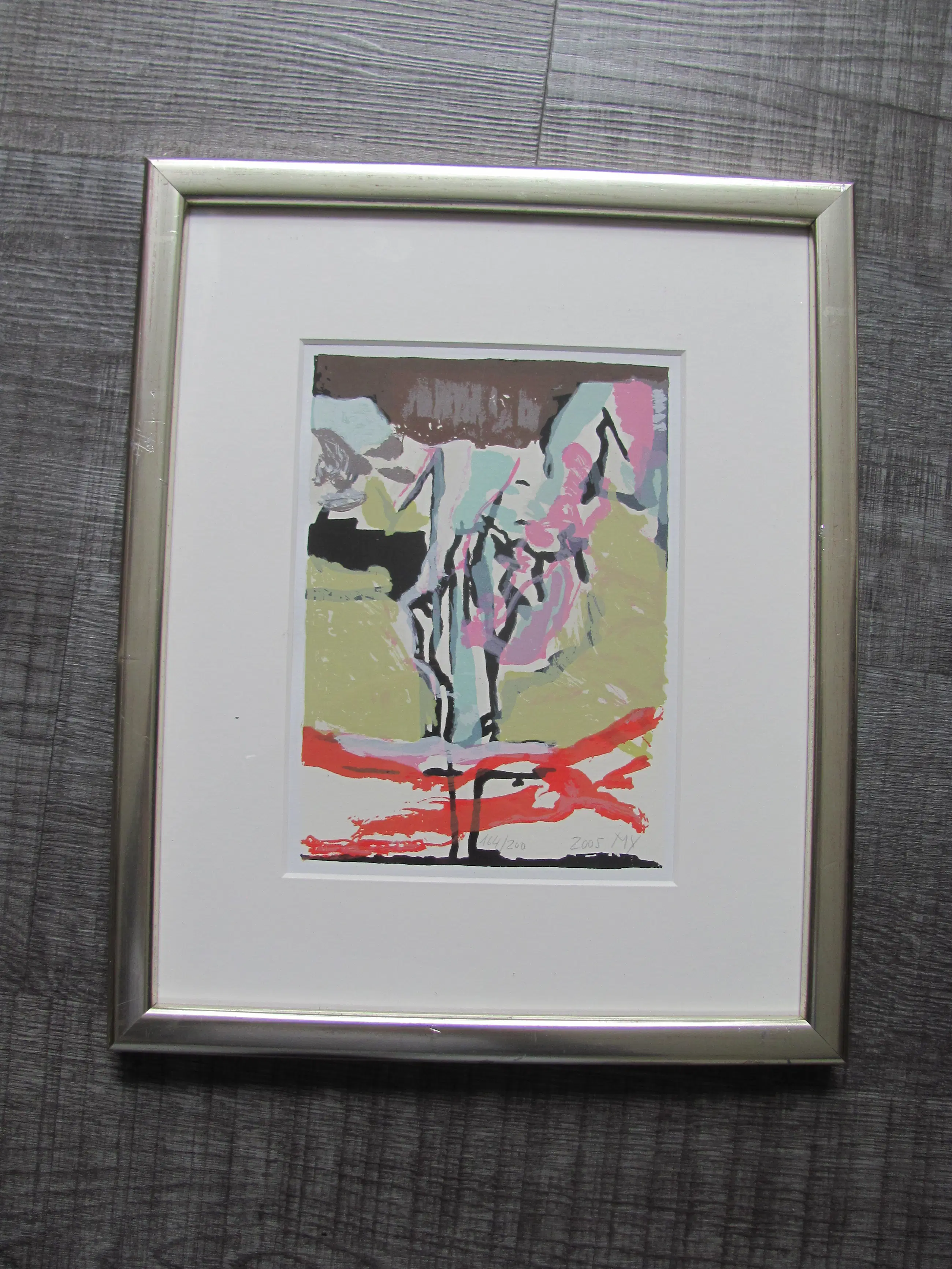 La sérigraphie est en très bon état. Le cadre présente de légères traces d'usure.