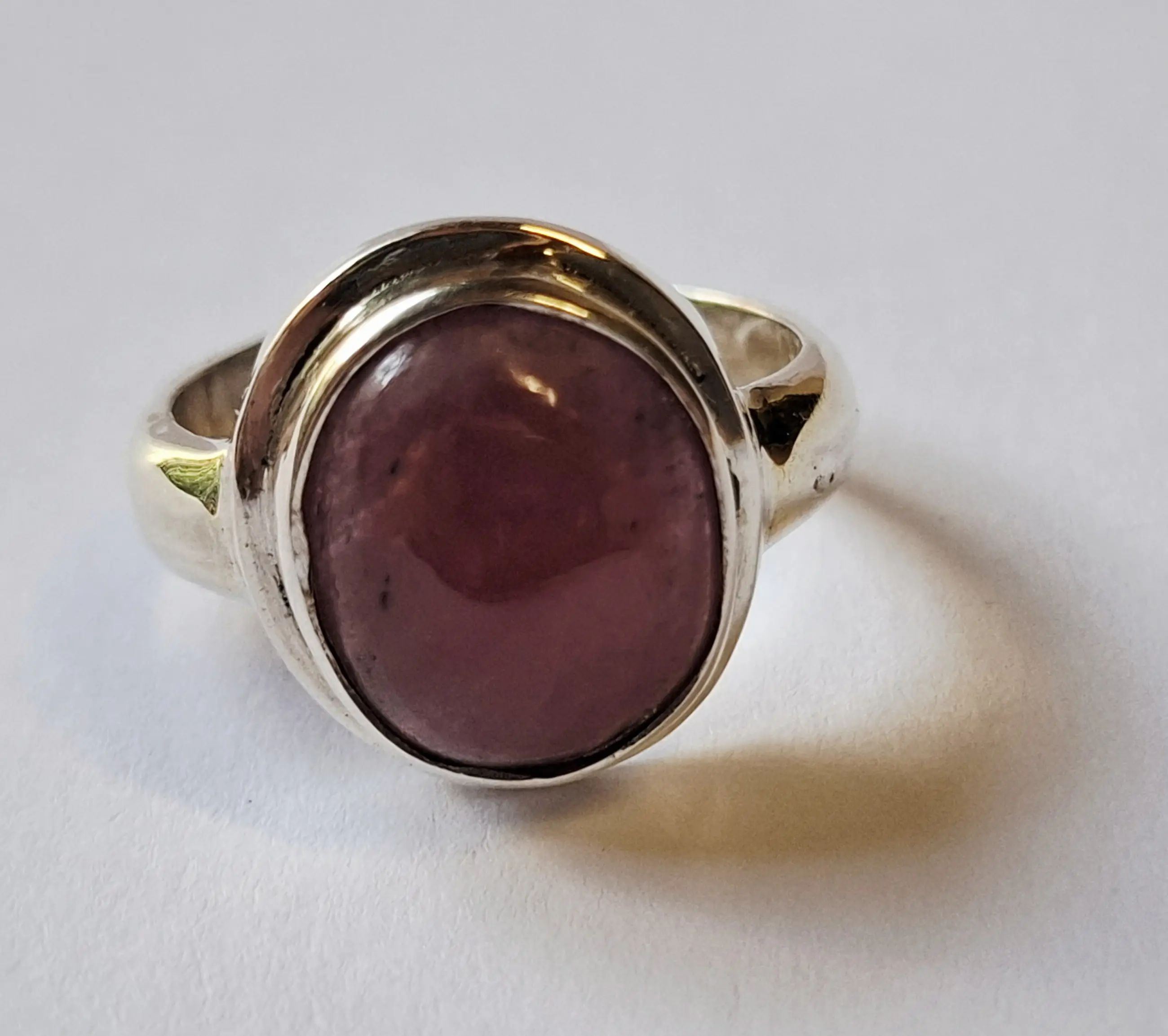 Nouvelle bague en argent avec rubis étoilé semi-circulaire ovale naturel.