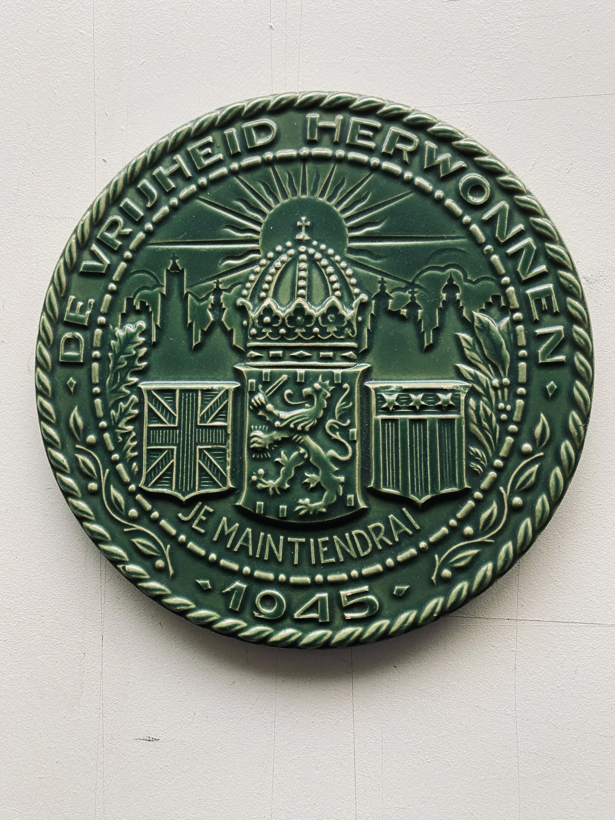 Une pièce de collection unique pour les amateurs d'art commémoratif de la Seconde Guerre mondiale, de céramiques néerlandaises ou d'art mural vintage. Ce carreau incarne à la fois la reconnaissance historique et la qualité artistique.