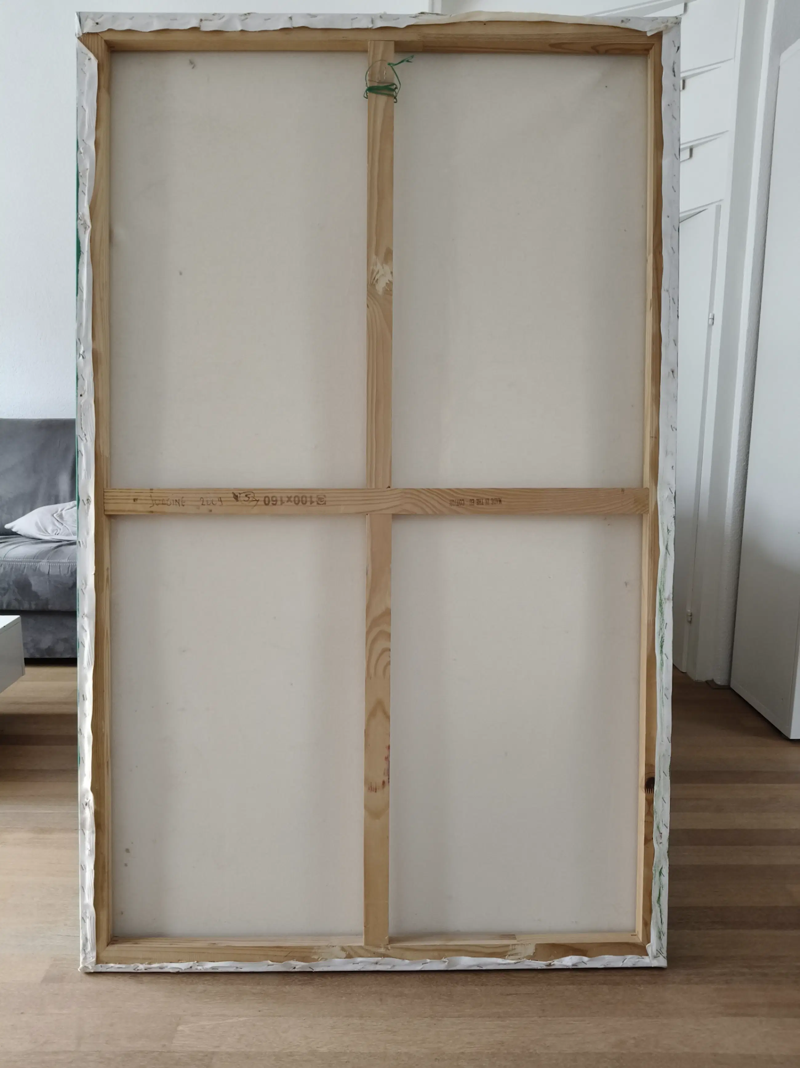 Jamais accroché, il est en très bon état. Deux petits coups sur la toile.