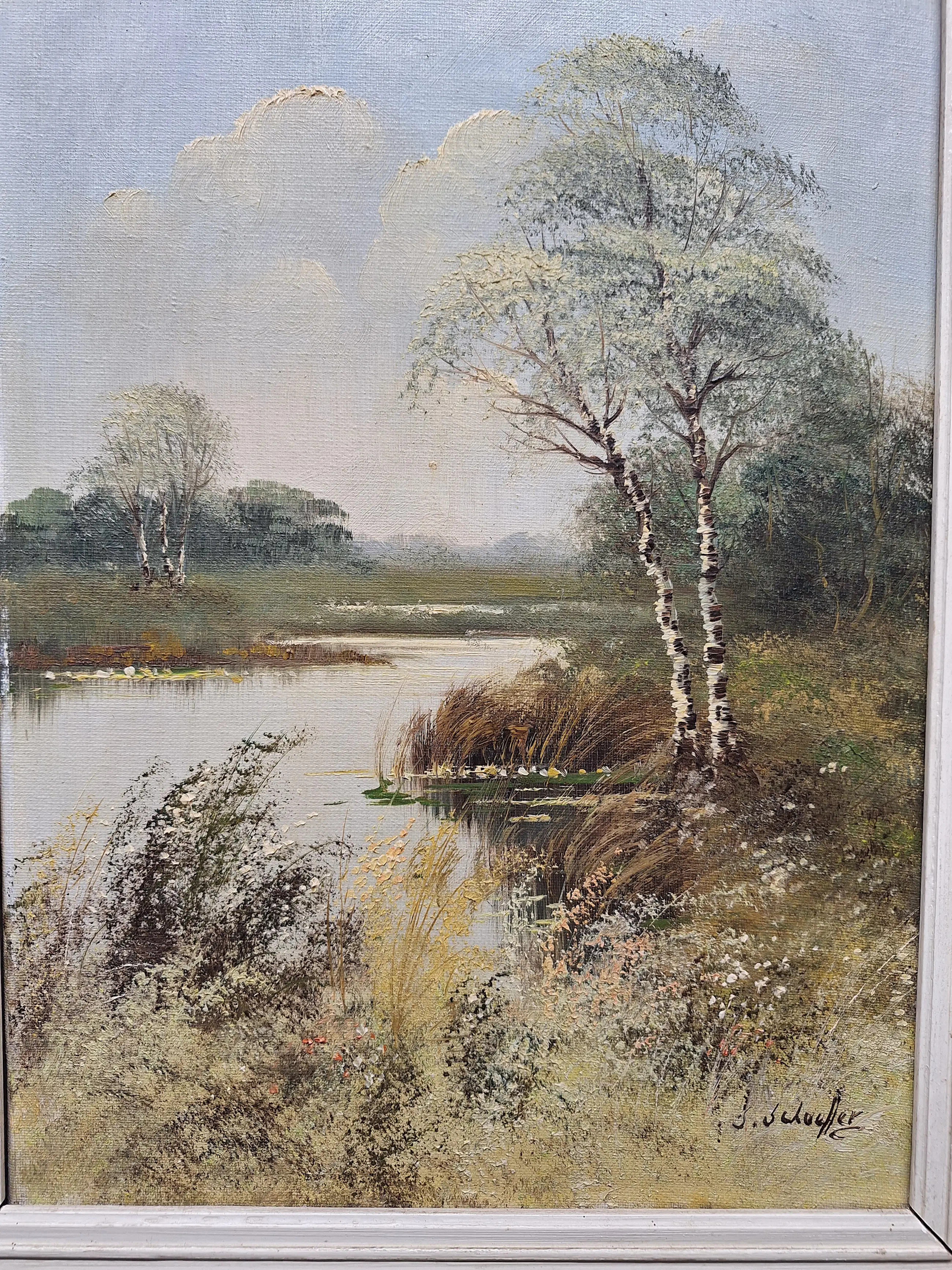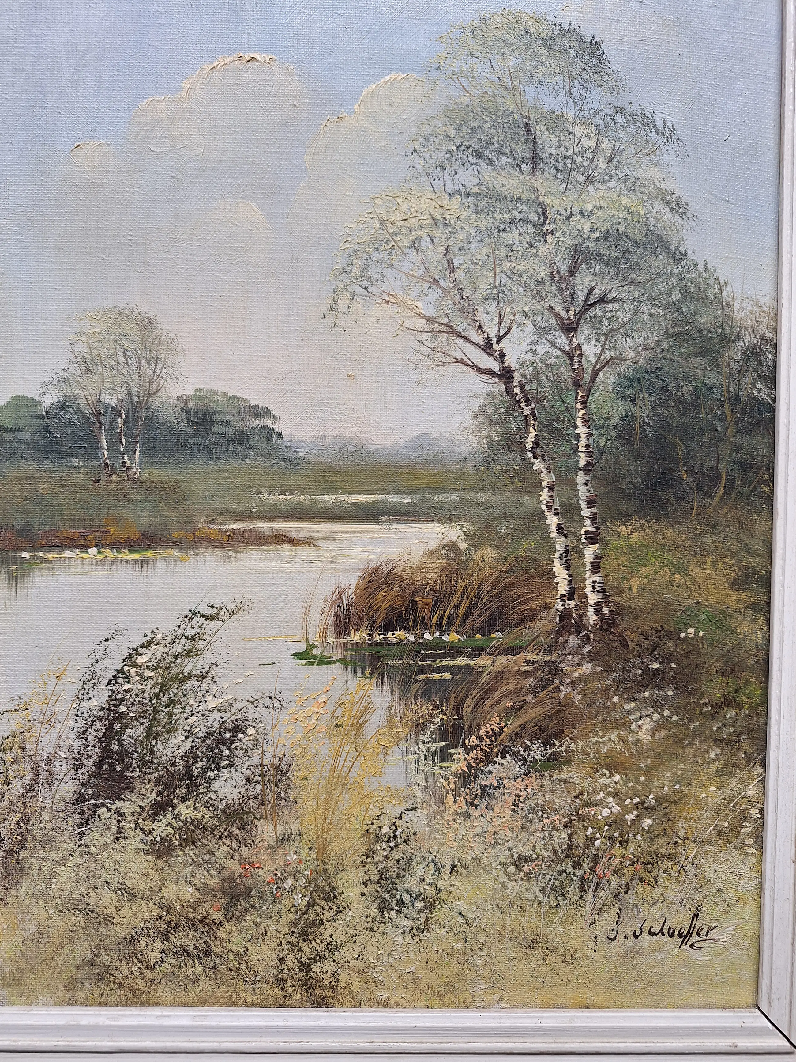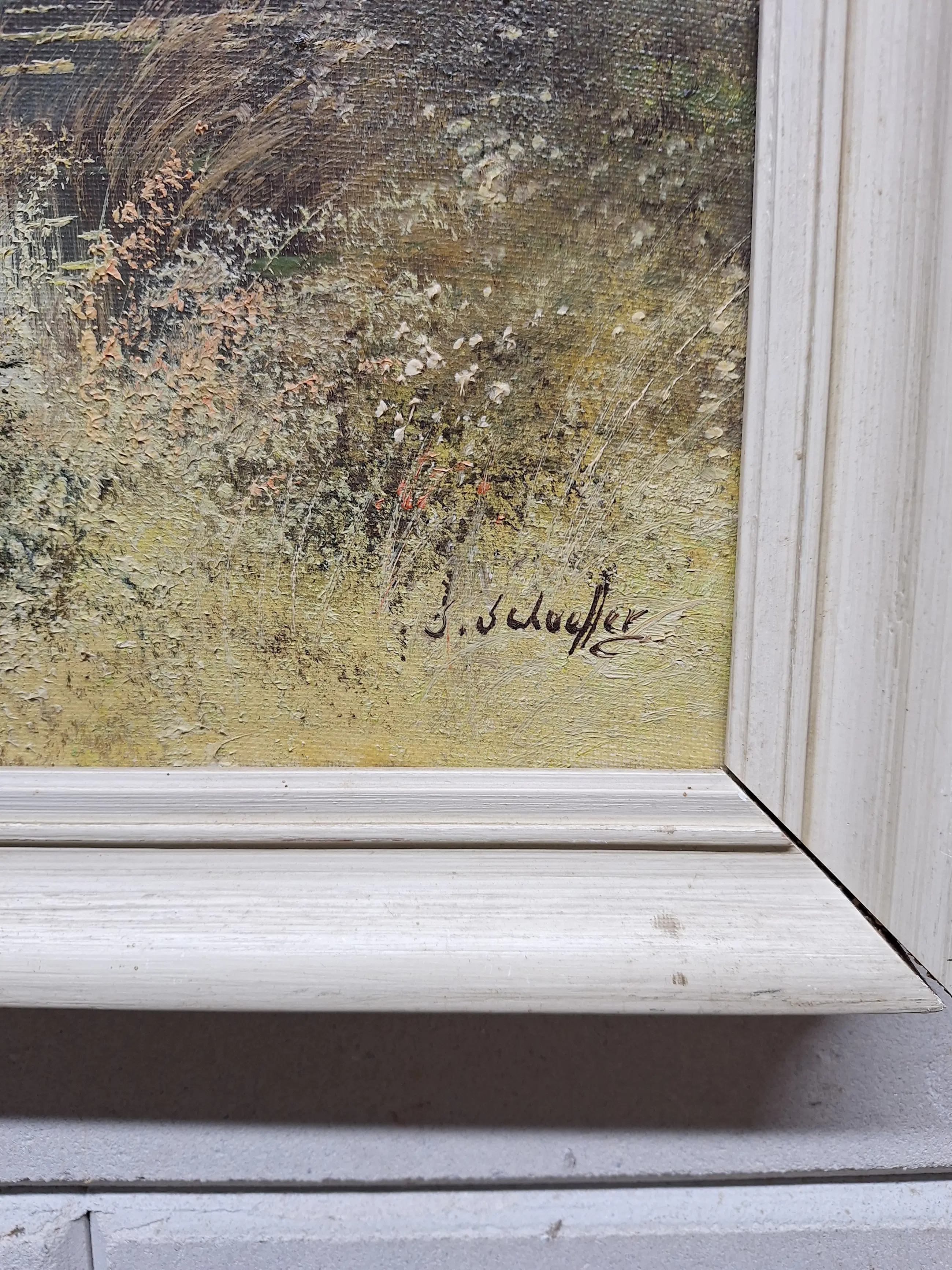 Une belle peinture sur toile avec un paysage probablement sur la Veluwe avec un petit étang