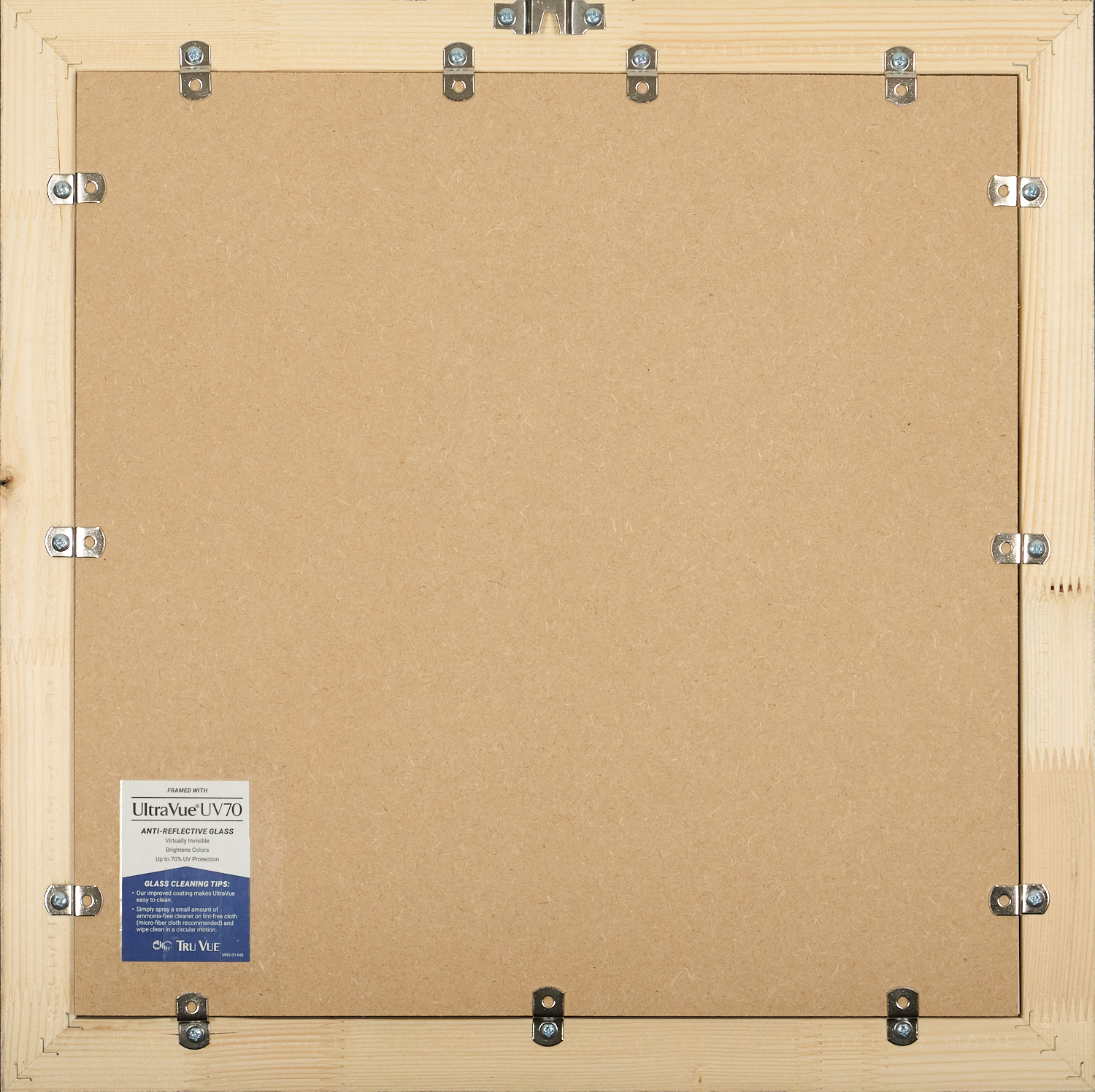 L'œuvre a été magnifiquement encadrée avec brio dans un cadre en bois noir profond fabriqué artisanalement aux Pays-Bas. Elle est montée flottante dans un passe-partout sur mesure sans acide et recouverte d'UltraVue® ArtGlass pour une clarté optimale, une protection UV efficace et des reflets minimaux.