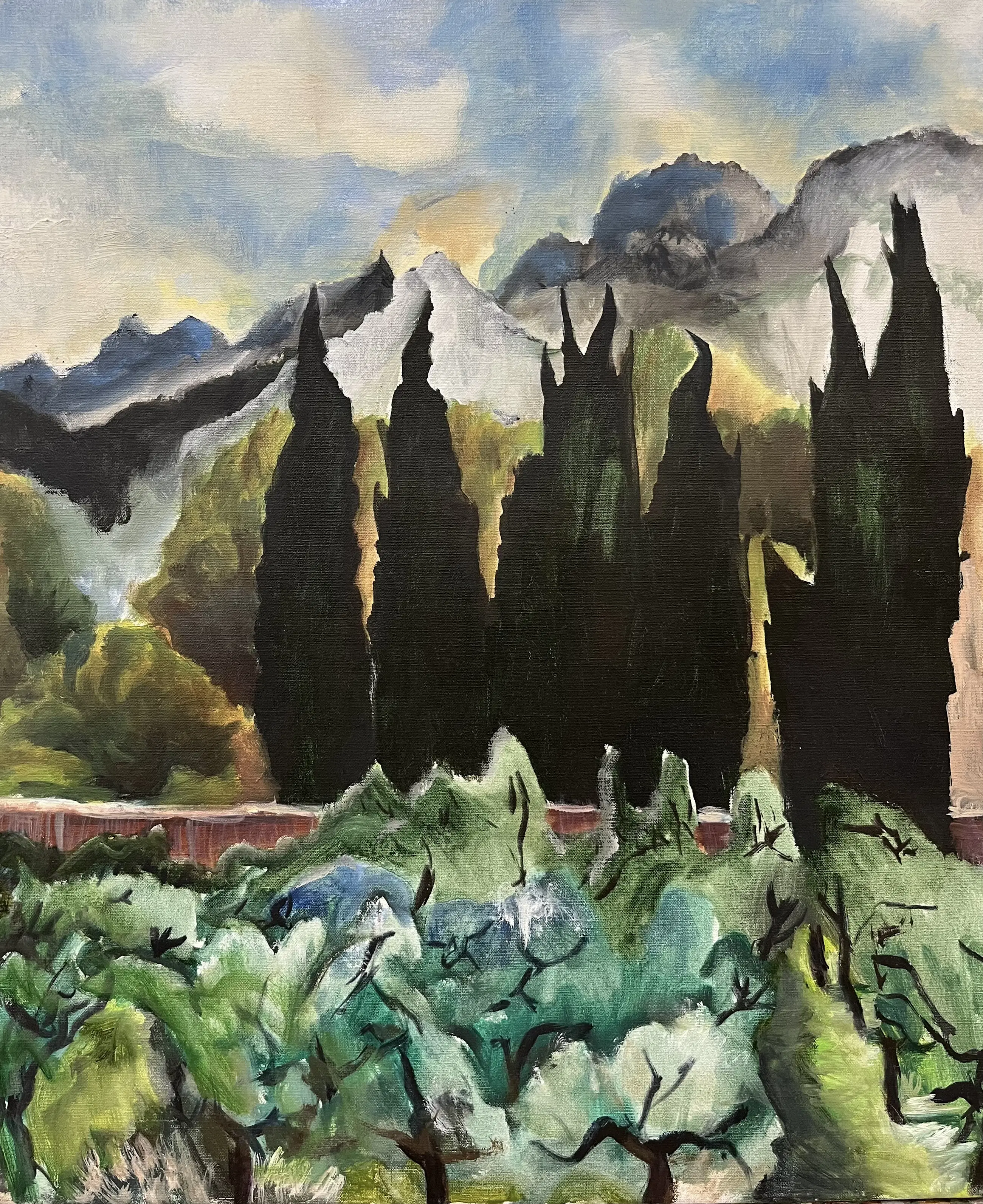 Peint sur place dans les Alpilles près de Saint Rémy. Signé au dos.