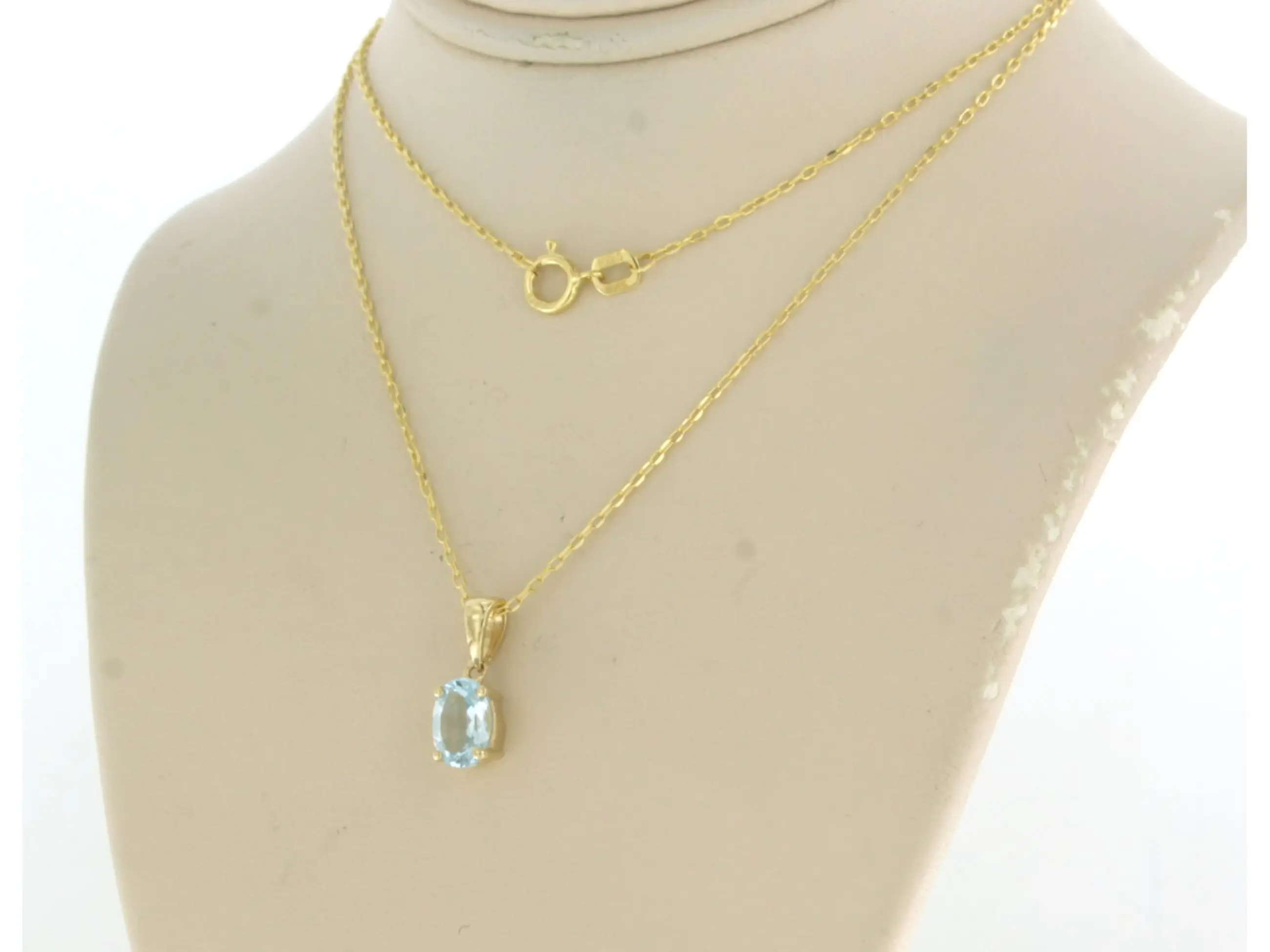 14k geel gouden collier met hanger bezet met blauwe topaas tot. 0,90ct - SI - 45 cm lang