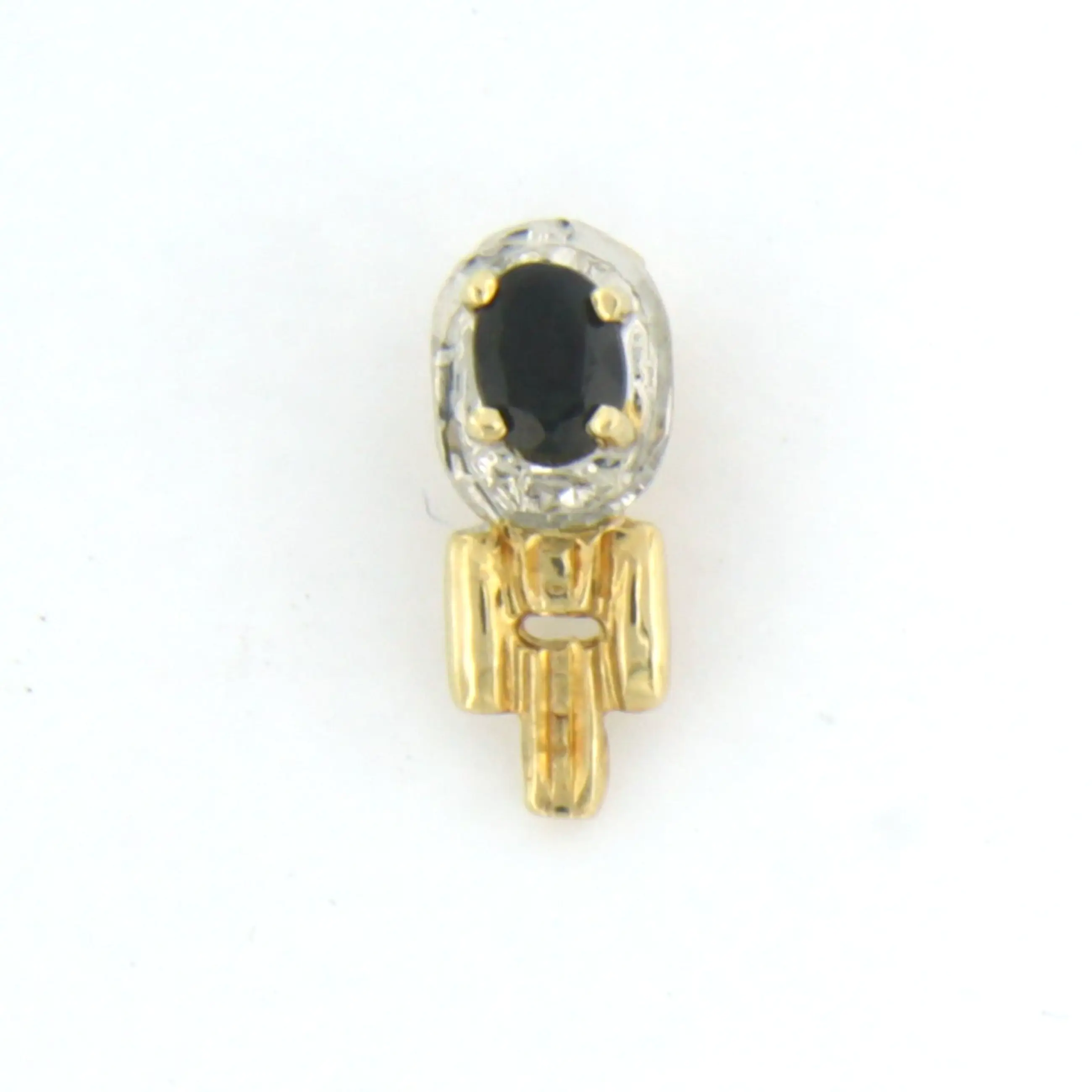 14k bicolor gouden hanger met een saffier - afm. 1.3 cm x 5.1 mm