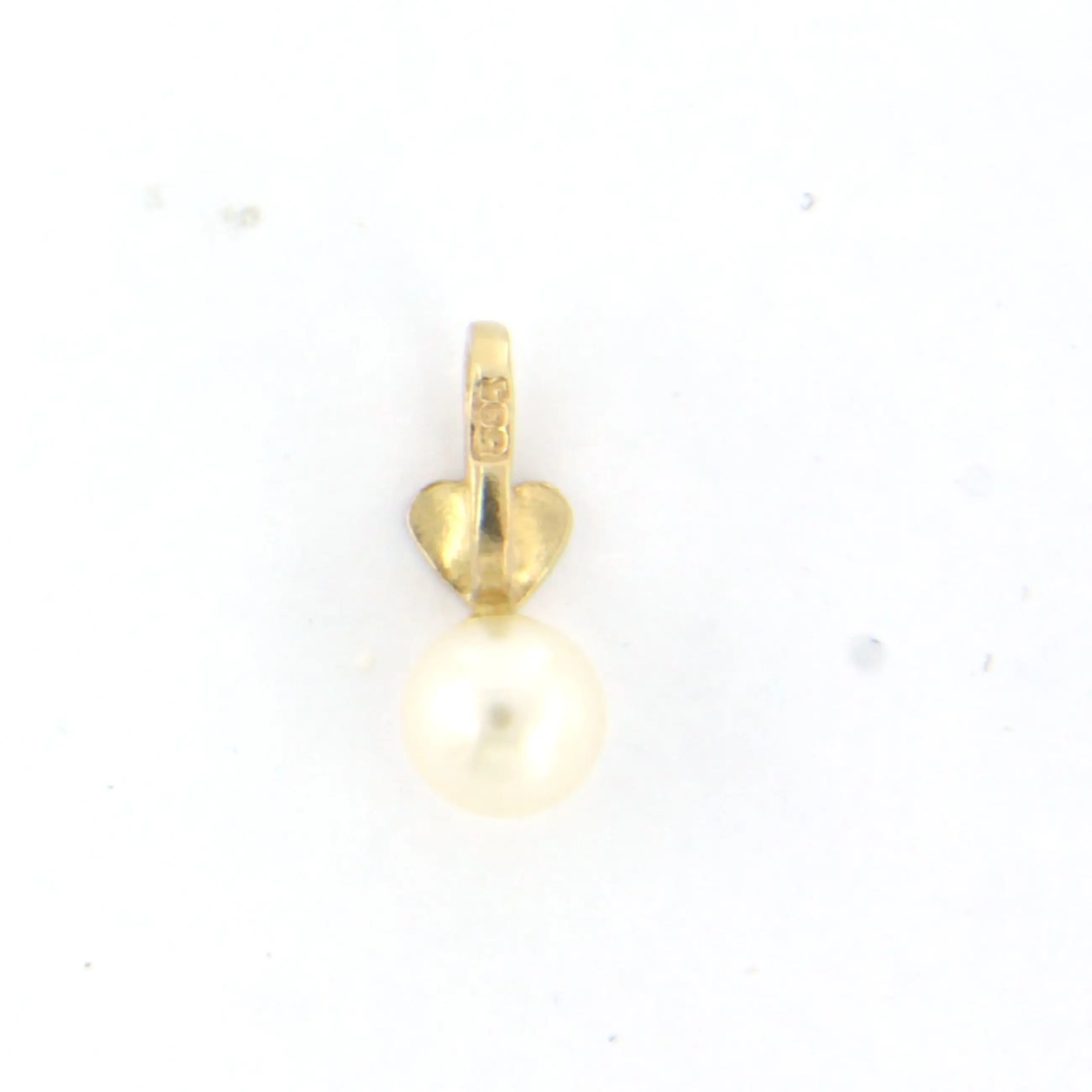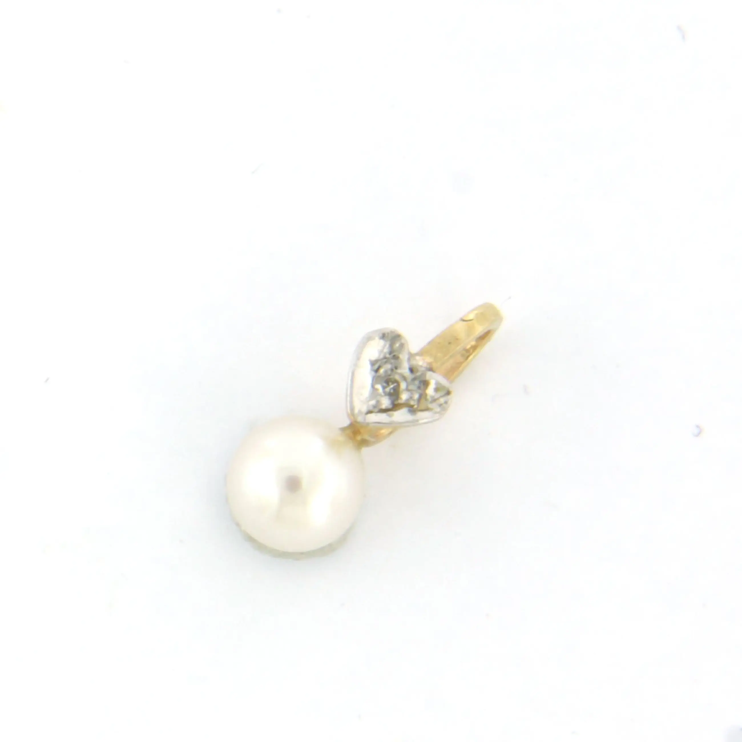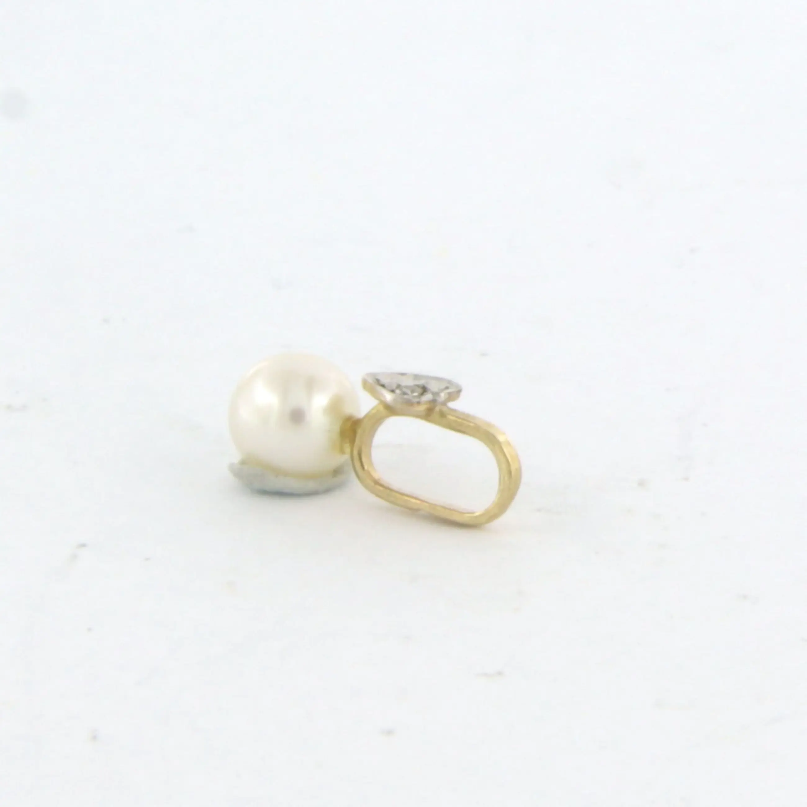 14k bicolour gouden hanger met parel en single cut geslepen diamant tot. 0.005ct - afm. 1.0 cm x 4.2 mm
