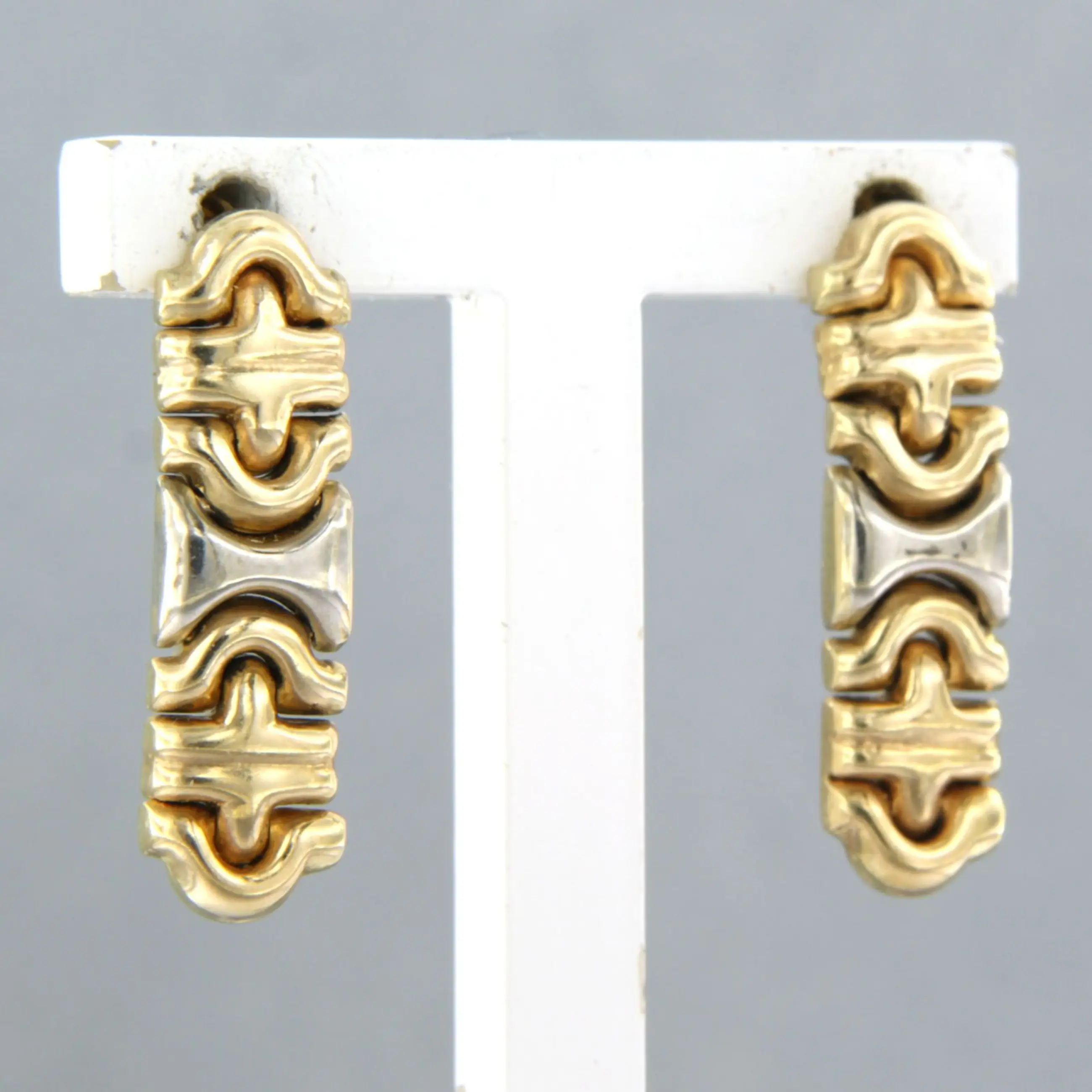 14k bicolour gouden oorhangers - 3.4 gram - 2.1 cm x 6.0 mm