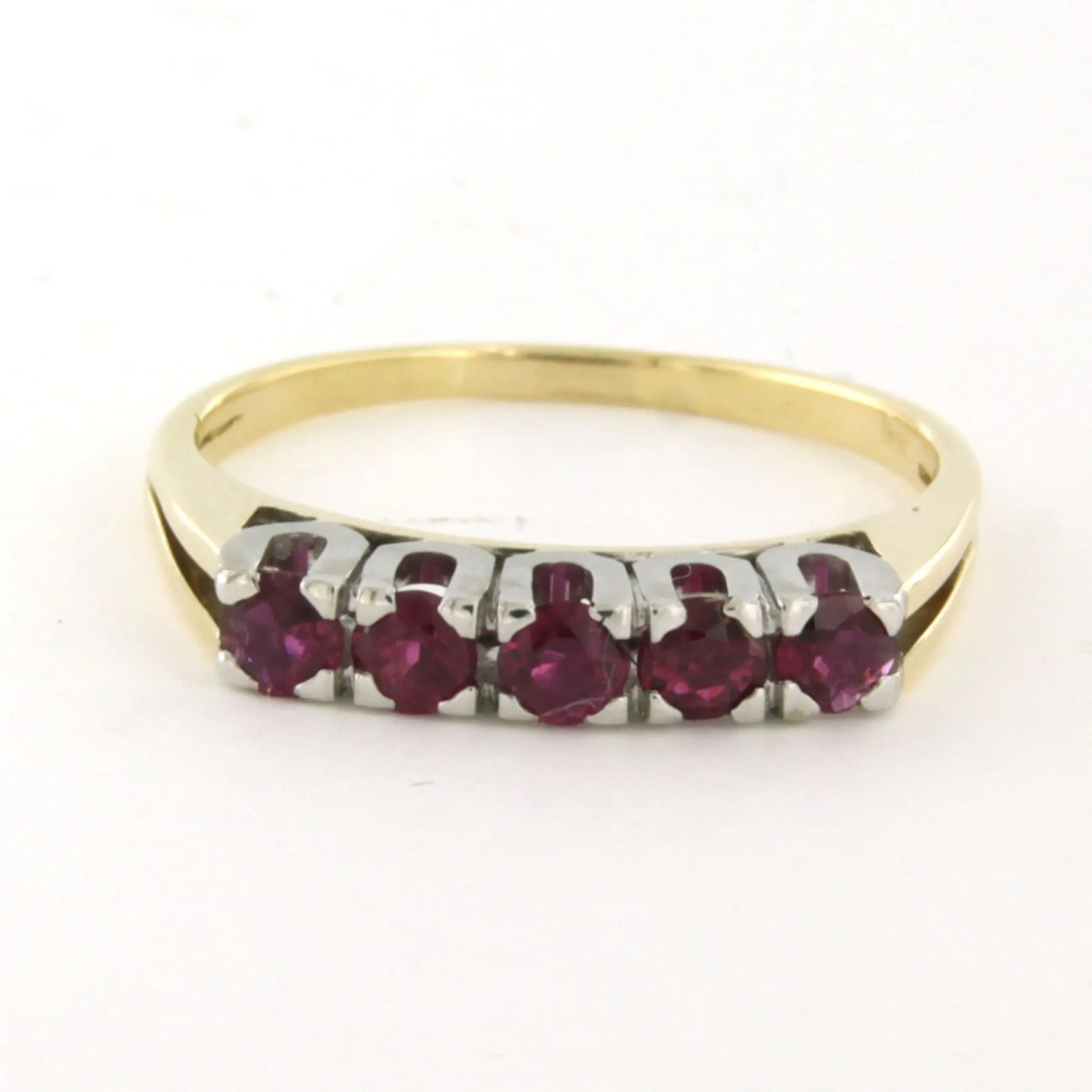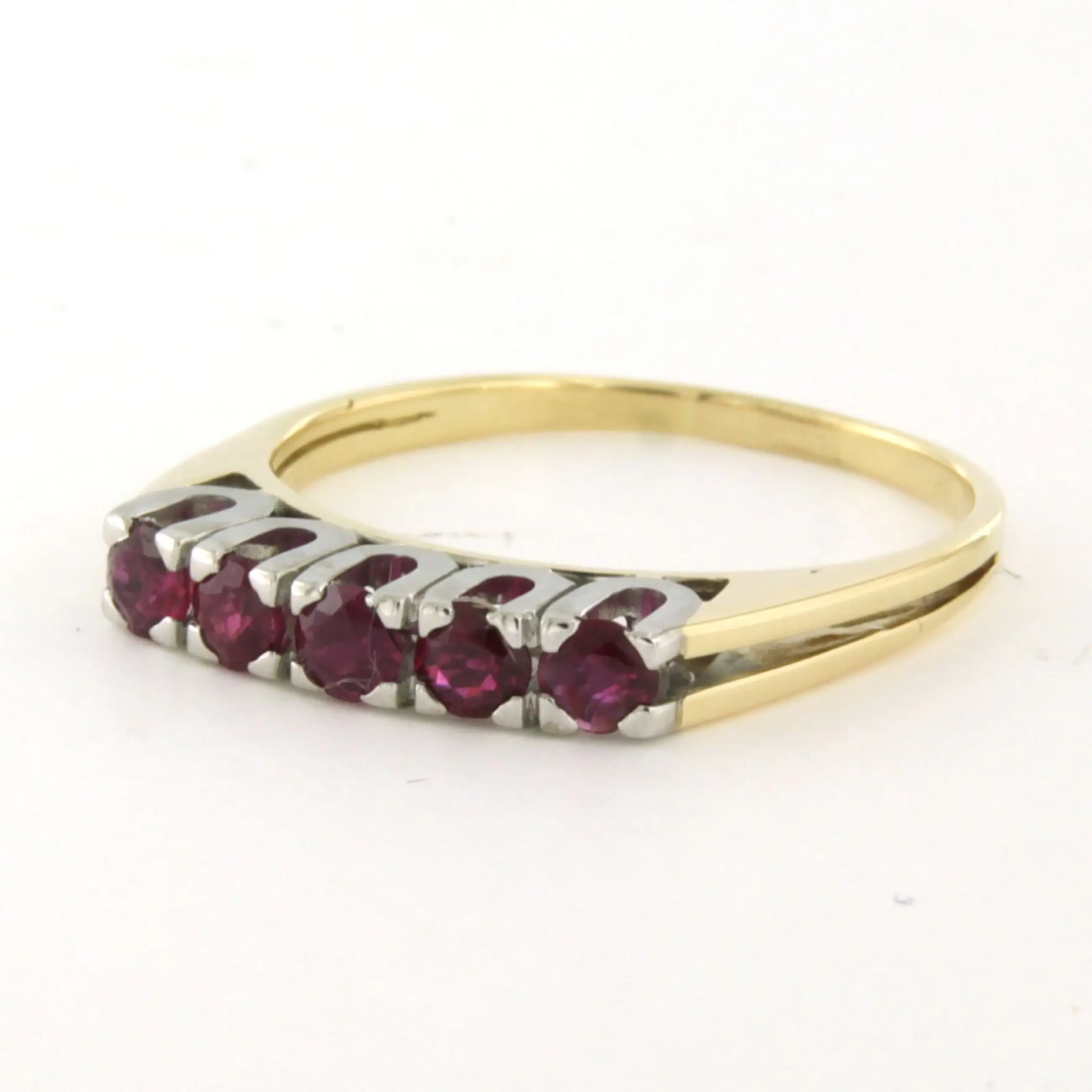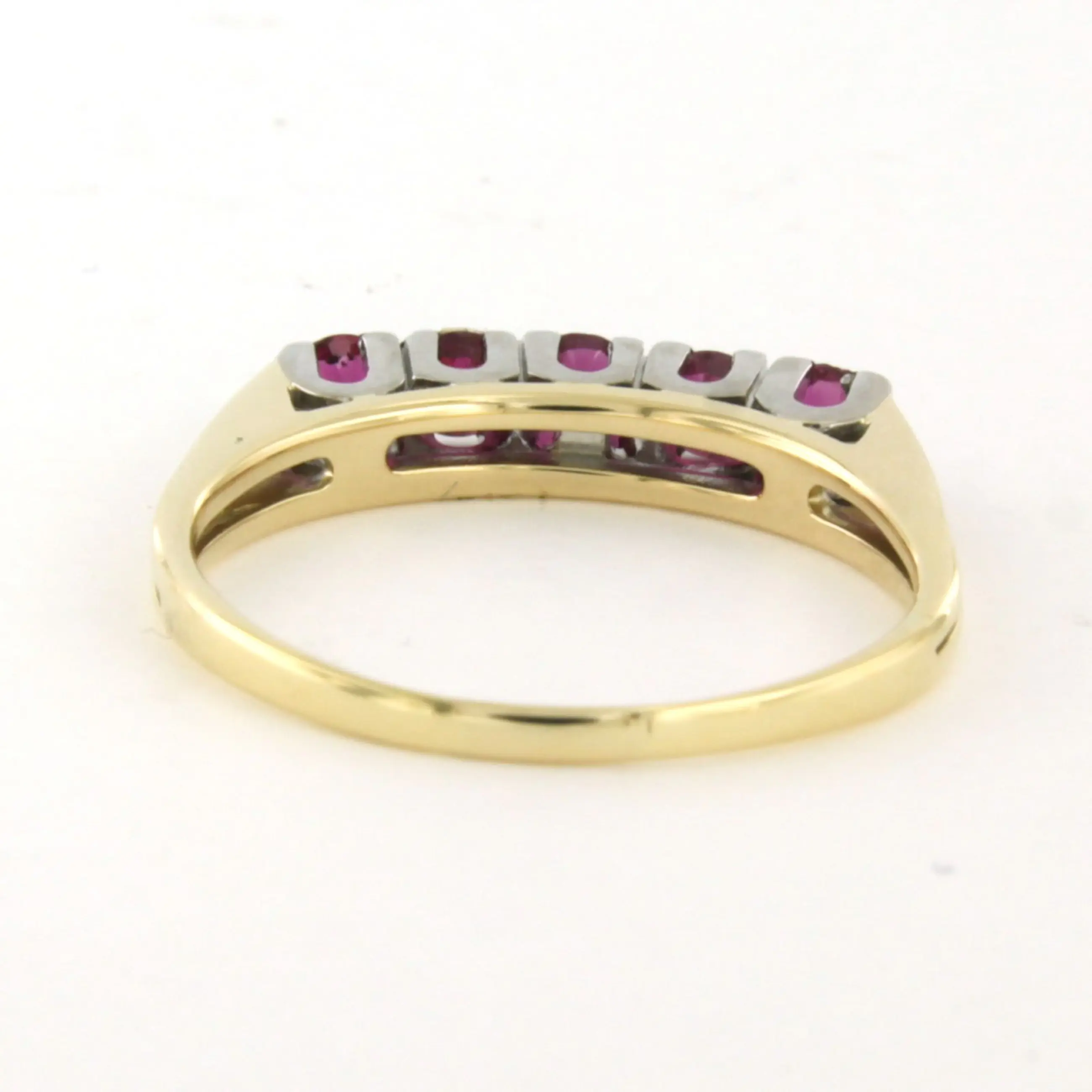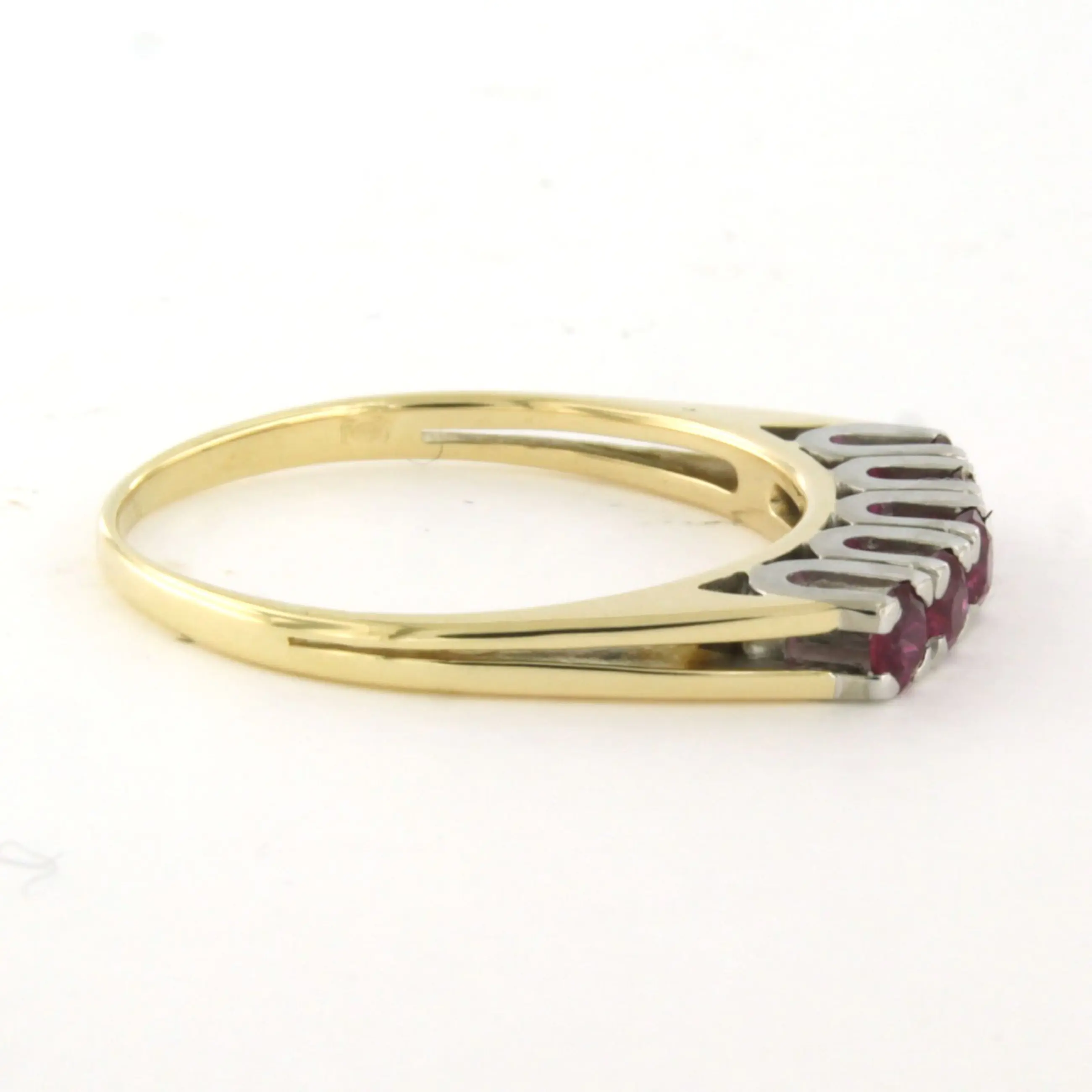 14k bicolour gouden ring met robijn tot. 0.75ct - 3.4 gram - ringmaat 19(60)