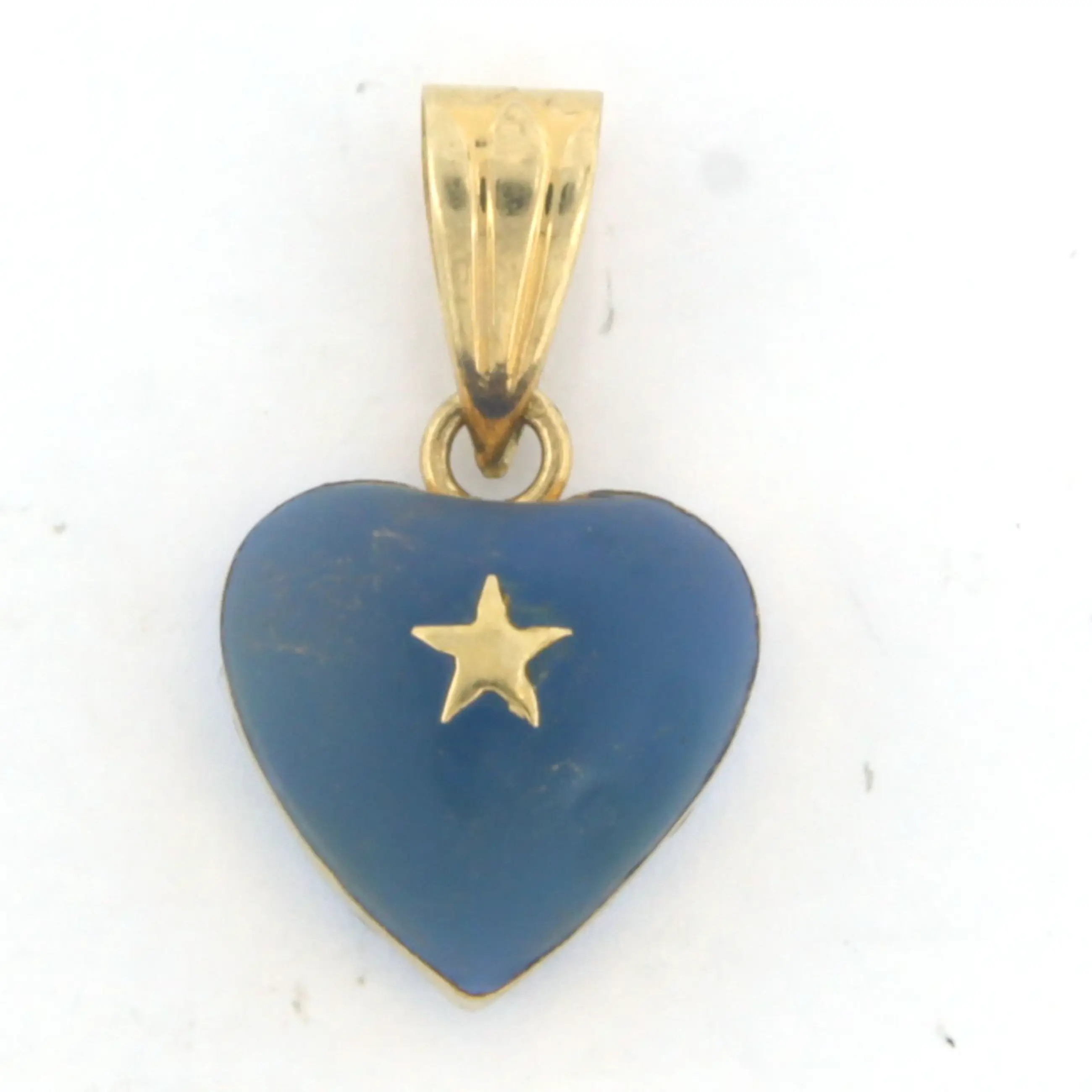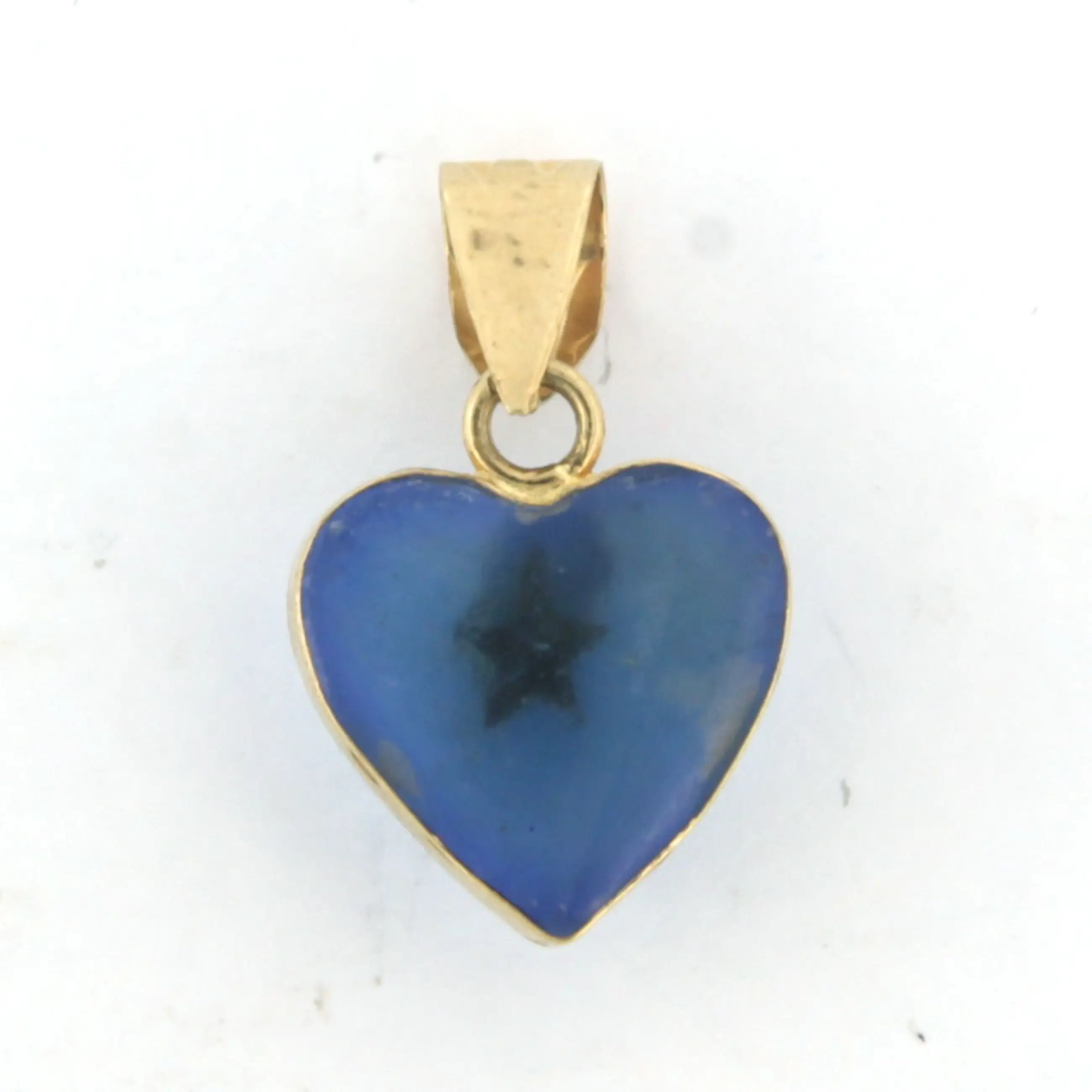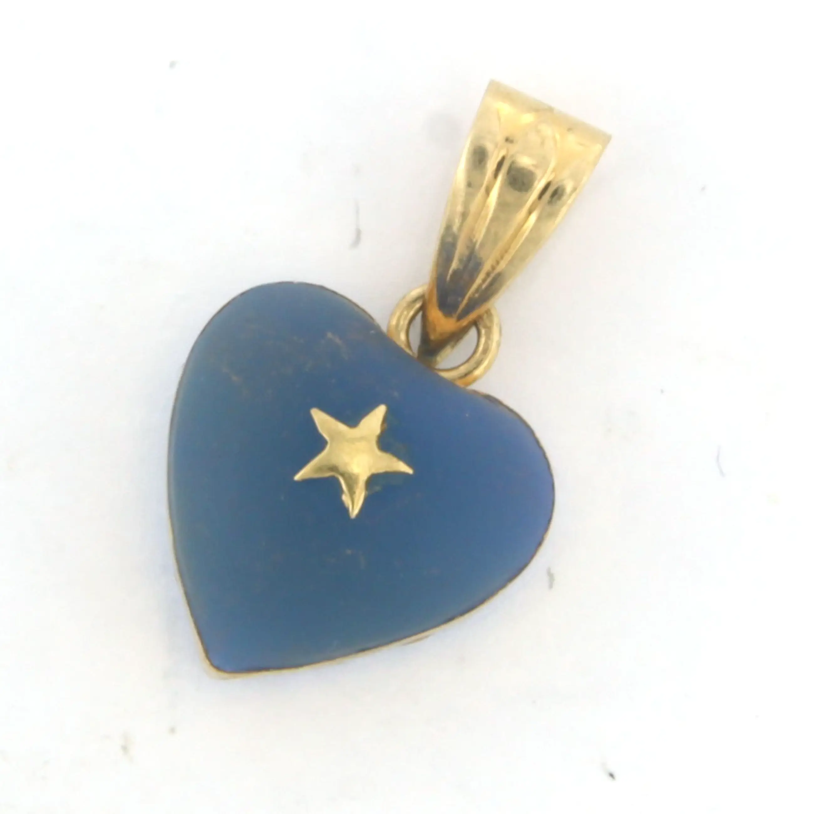 14k geel gouden hanger in een vorm van een hart van blauw glas steen - afm. 2.0 cm x 1.2 cm