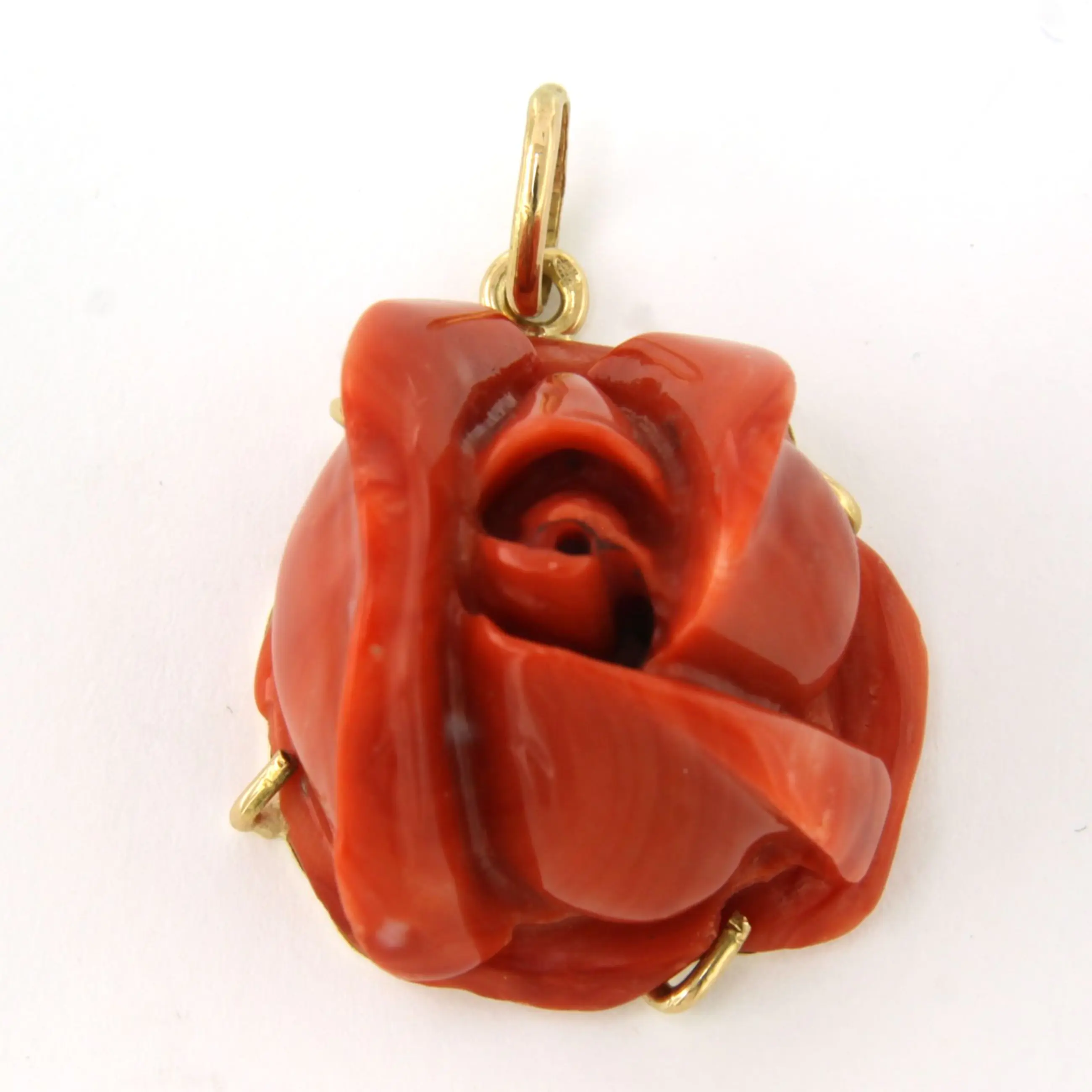 14k geel gouden hanger met een koraal in een vorm van een roos kop - 13.7 gram