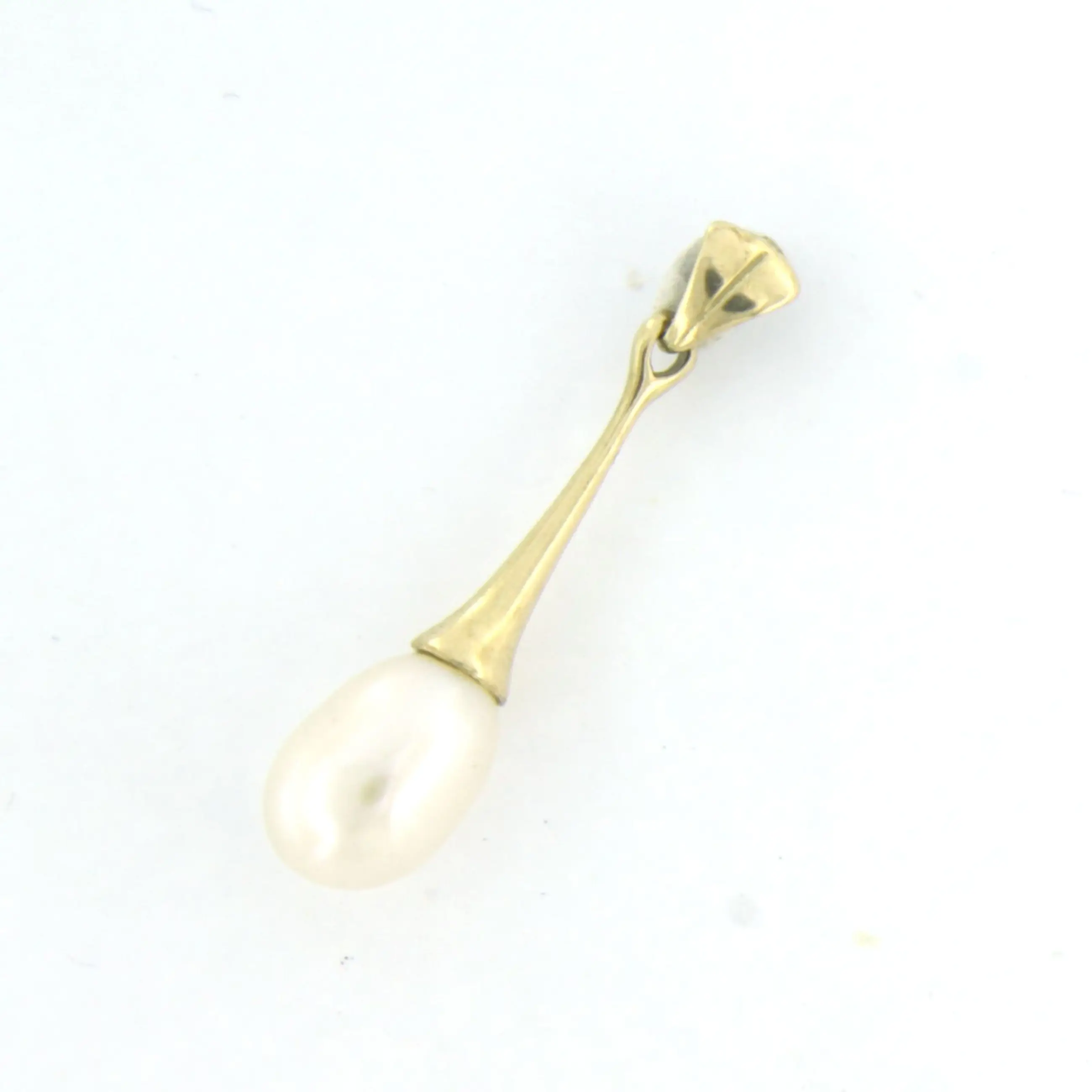 14k geel gouden hanger met een parel - afm. 2.5 cm x 5.9 mm