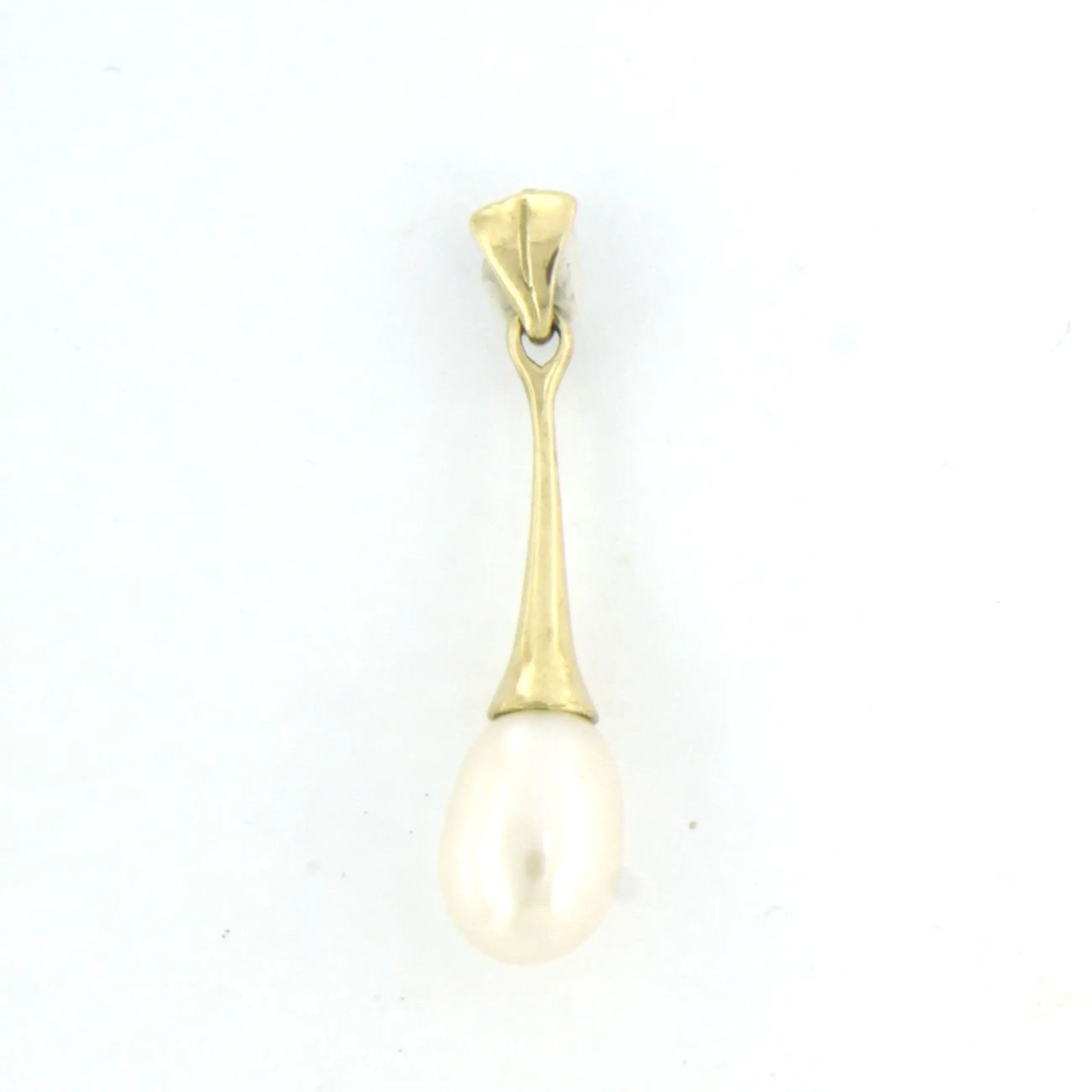 14k geel gouden hanger met een parel - afm. 2.5 cm x 5.9 mm - Verkocht