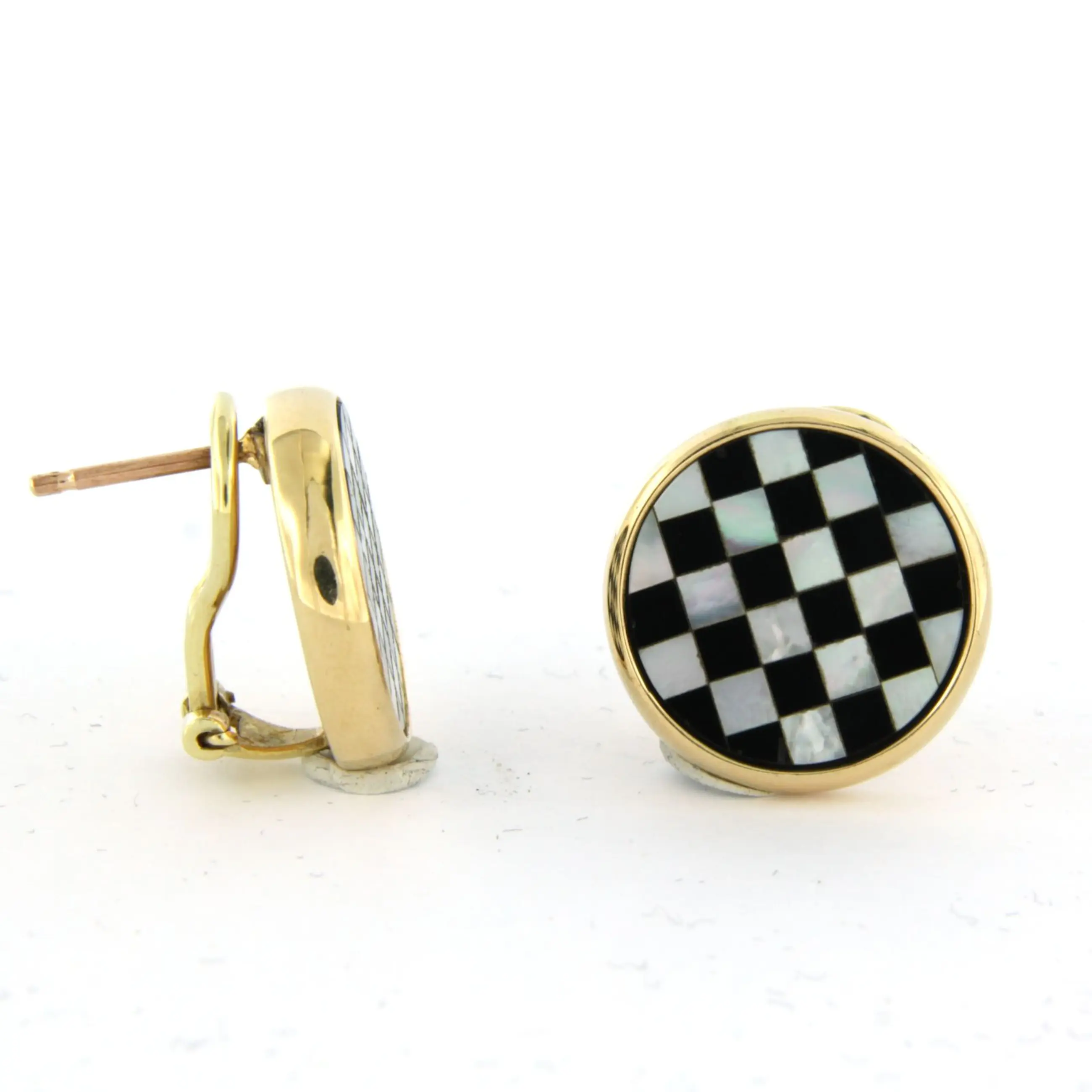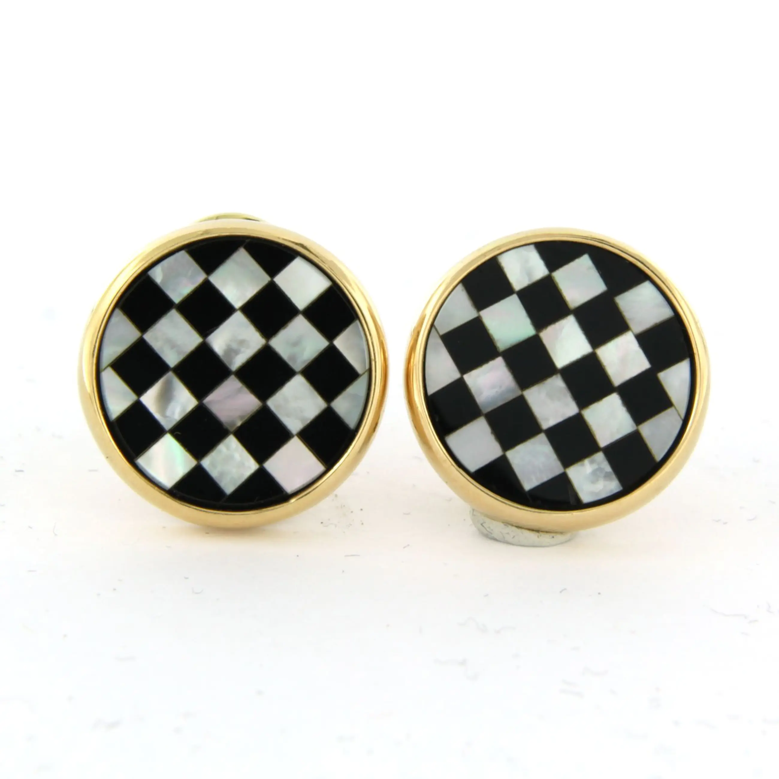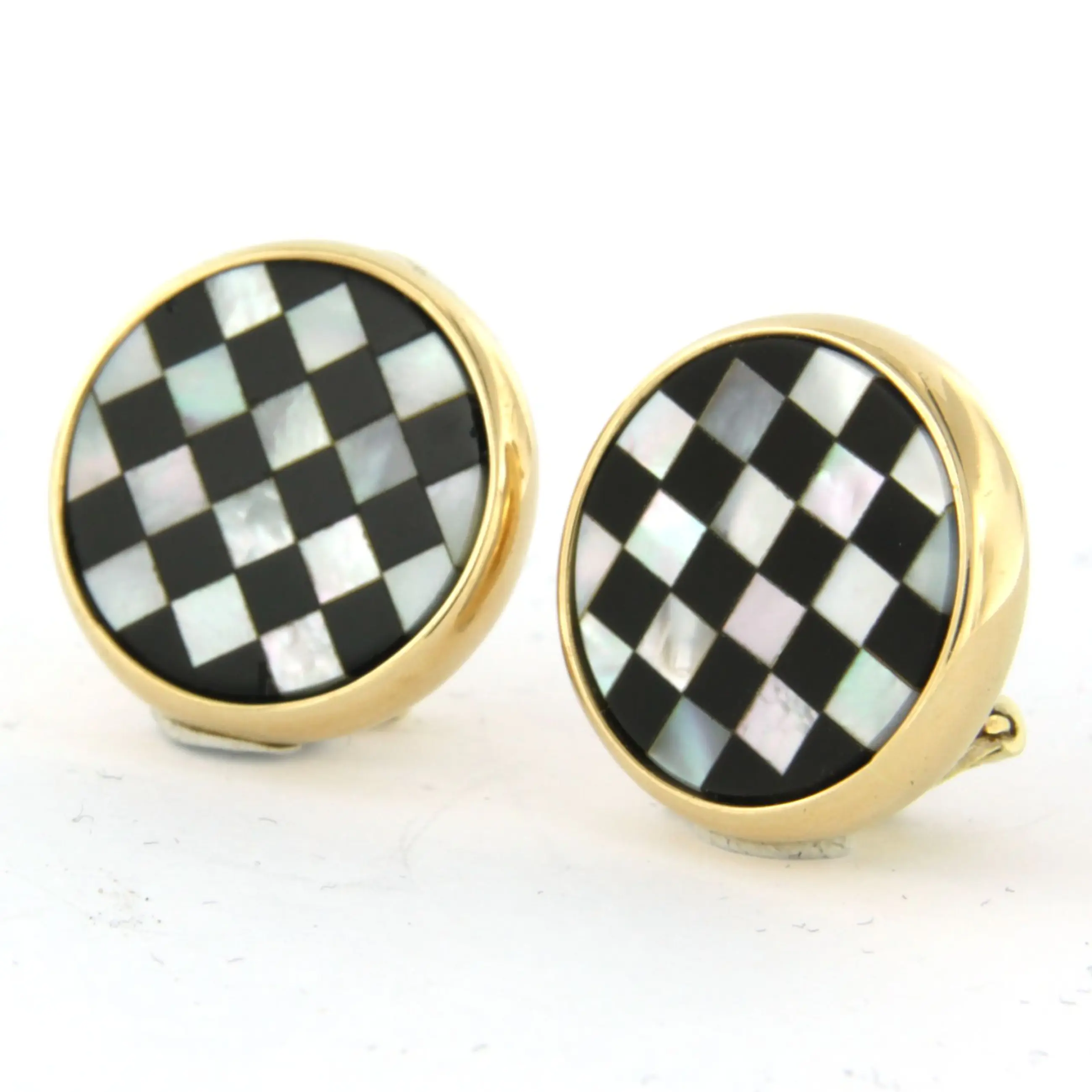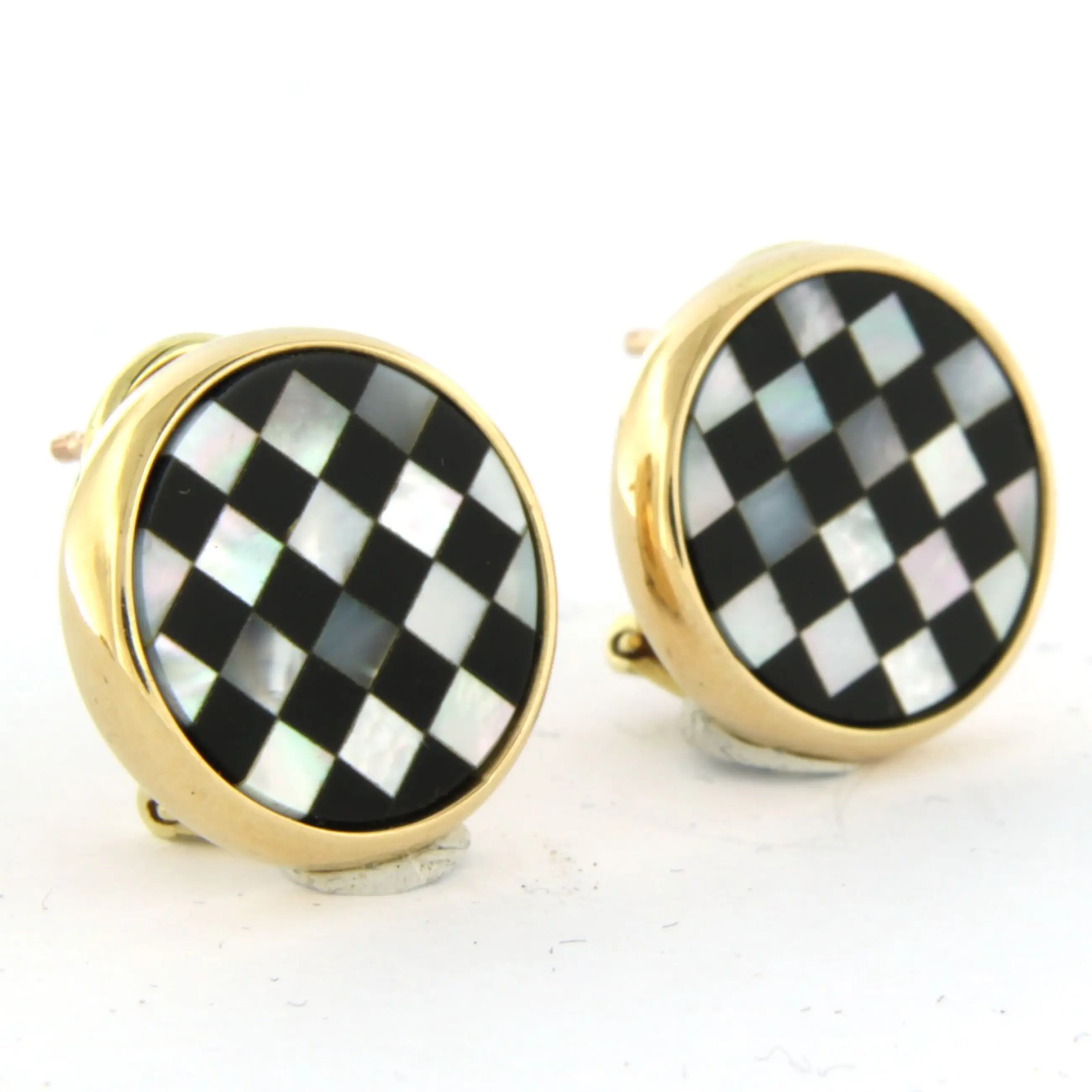 14k geel gouden oorclips bezet met onyx en parelmoer - 11.3 gram