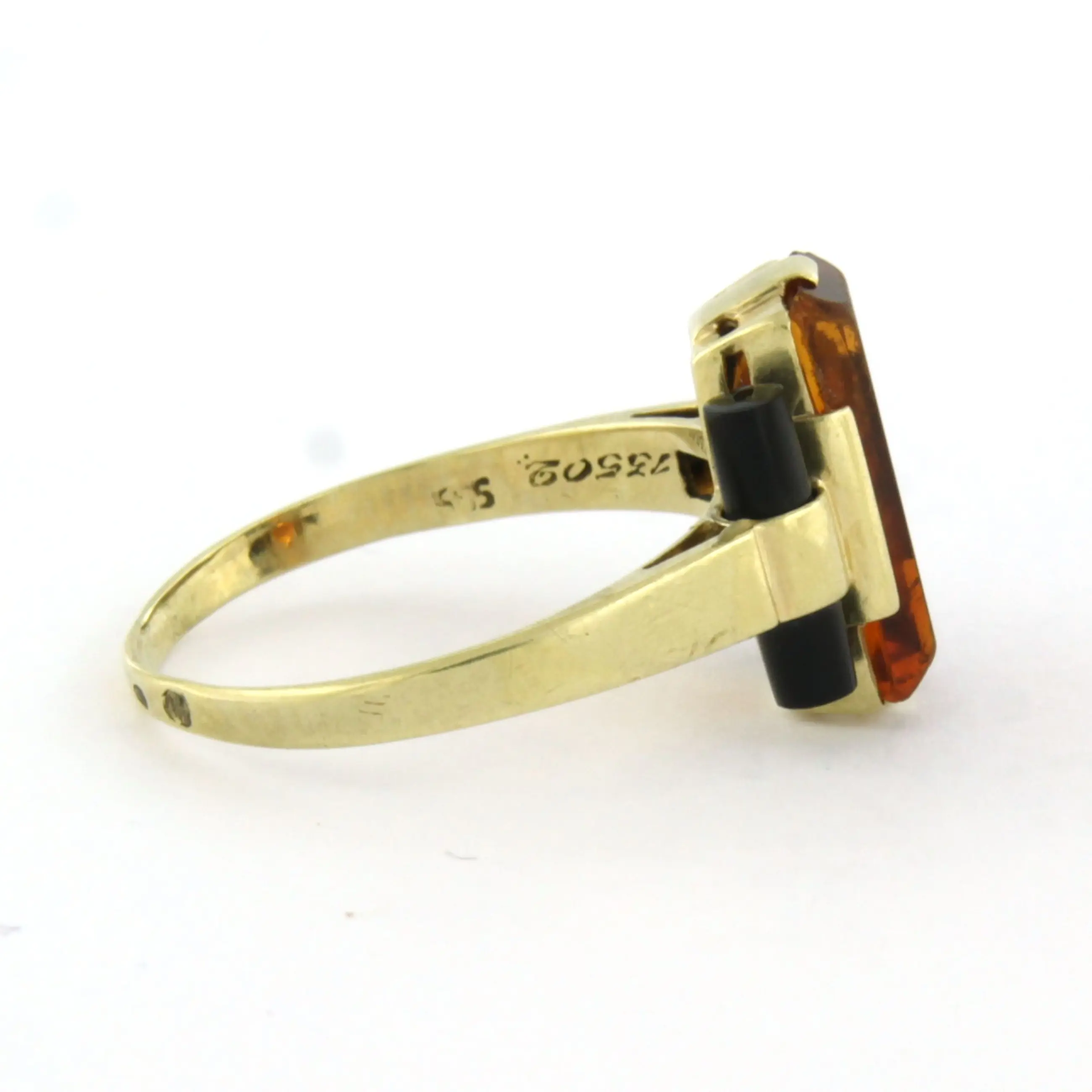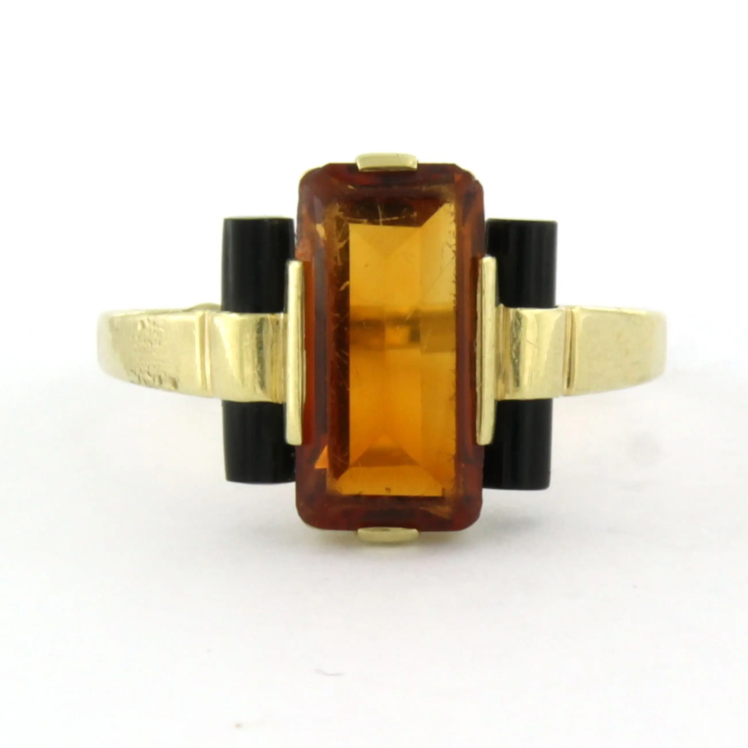 14k geel gouden ring bezet met een Madeira citrien en onyx - 1.9 gram - ringmaat 18,5(58)