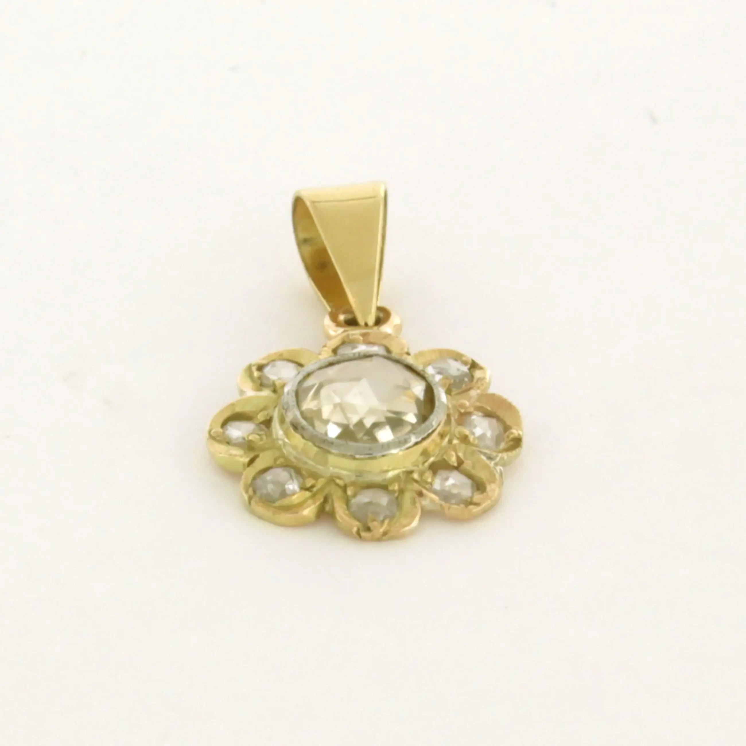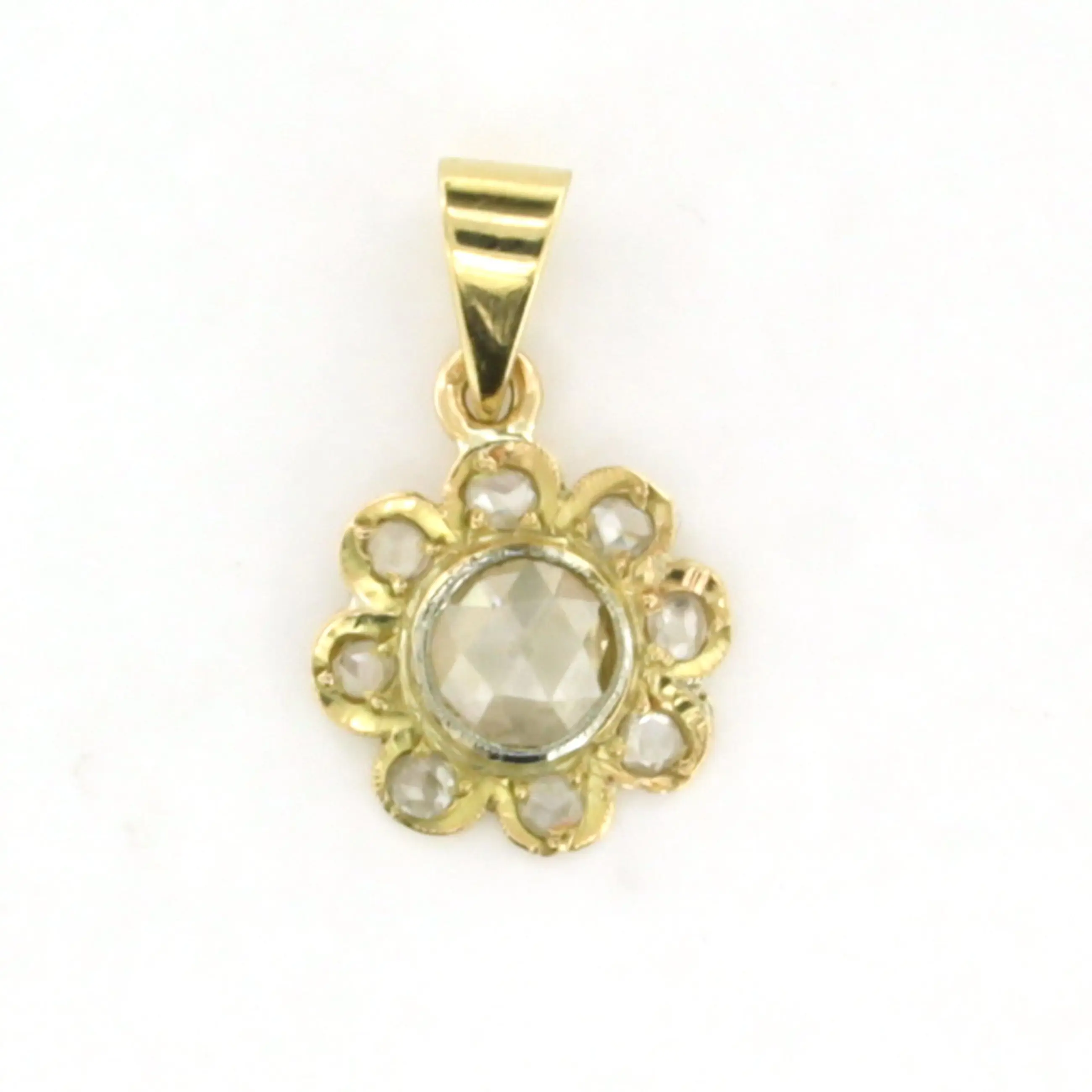 14k geelgouden hanger bezet met roos geslepen diamanten totaal 0.50 ct F/G SI