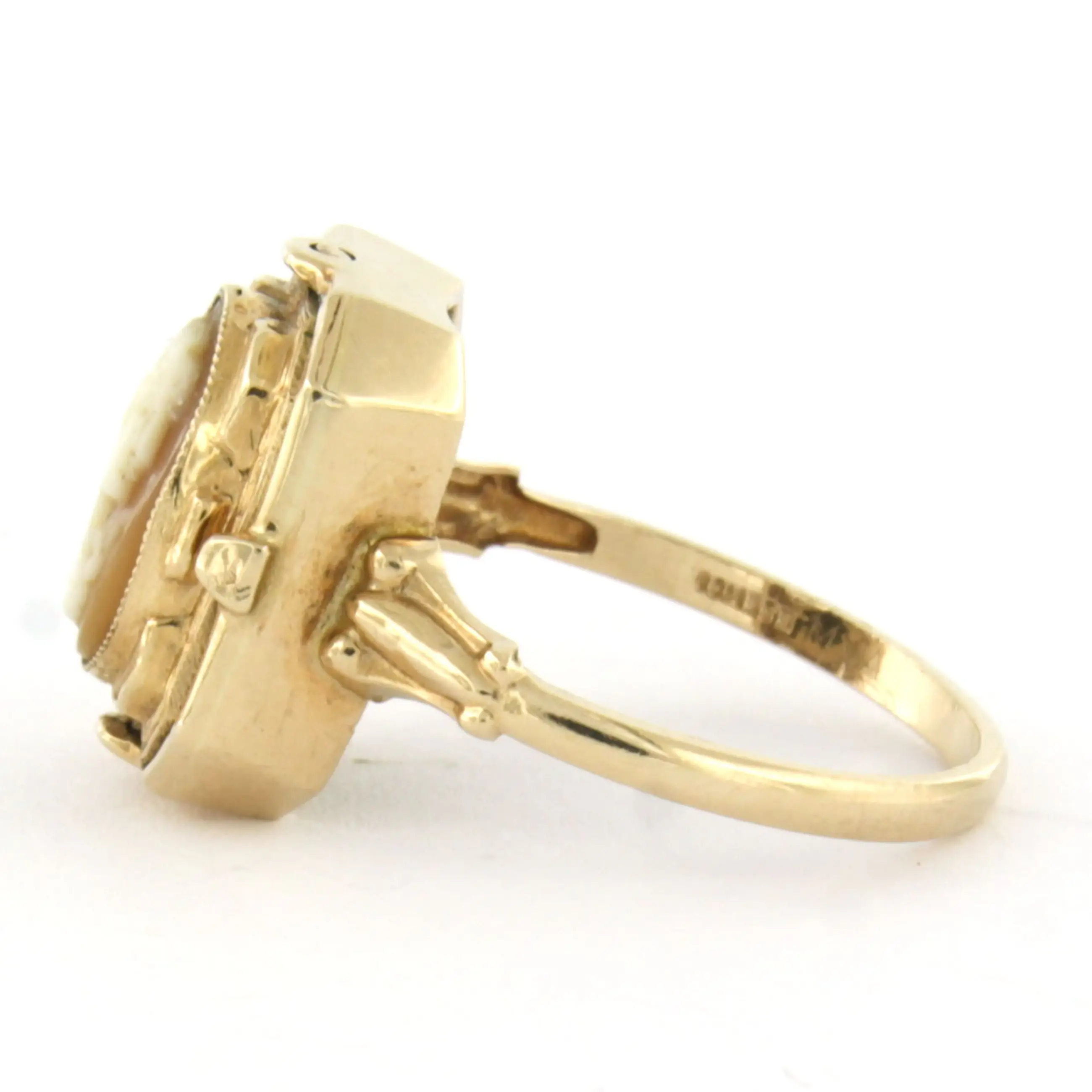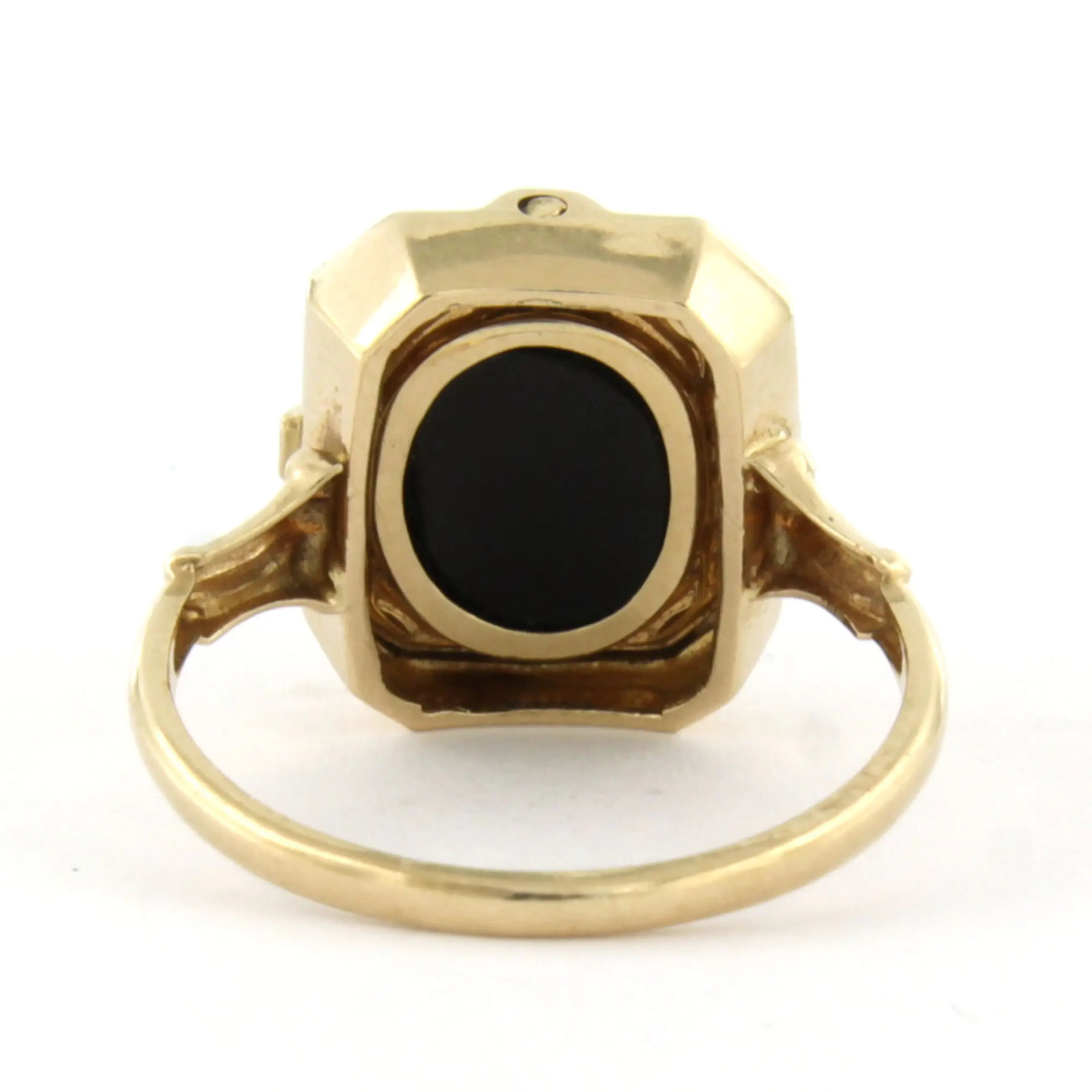 14k geelgouden ring met middenstuk om klap baar bezet met camee en onyx