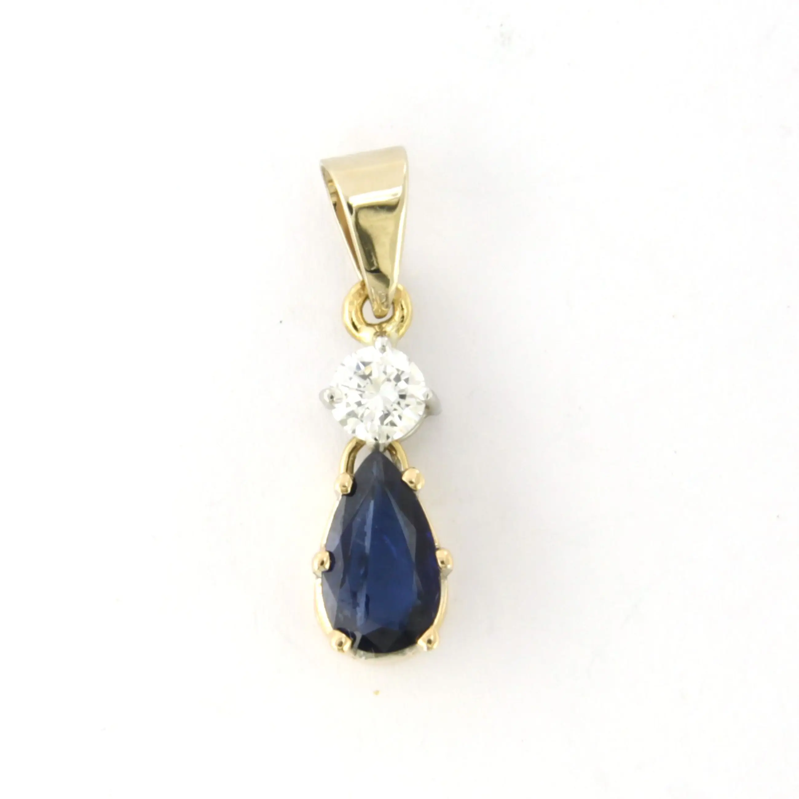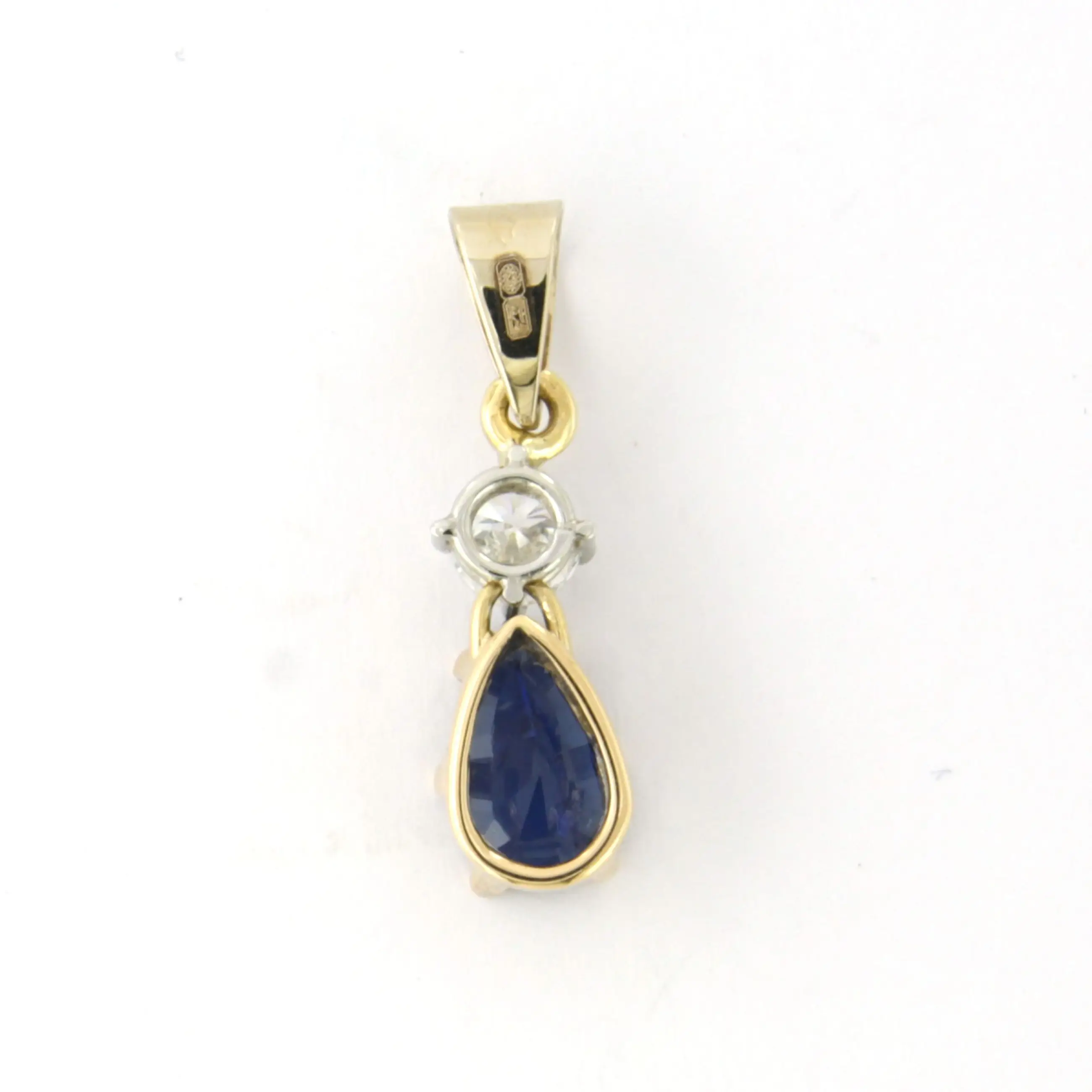 14k geelgouden met platina hanger bezet met saffier totaal circa 1.00ct en briljant geslepen diamant 0.20ct - F/G - VS/SI