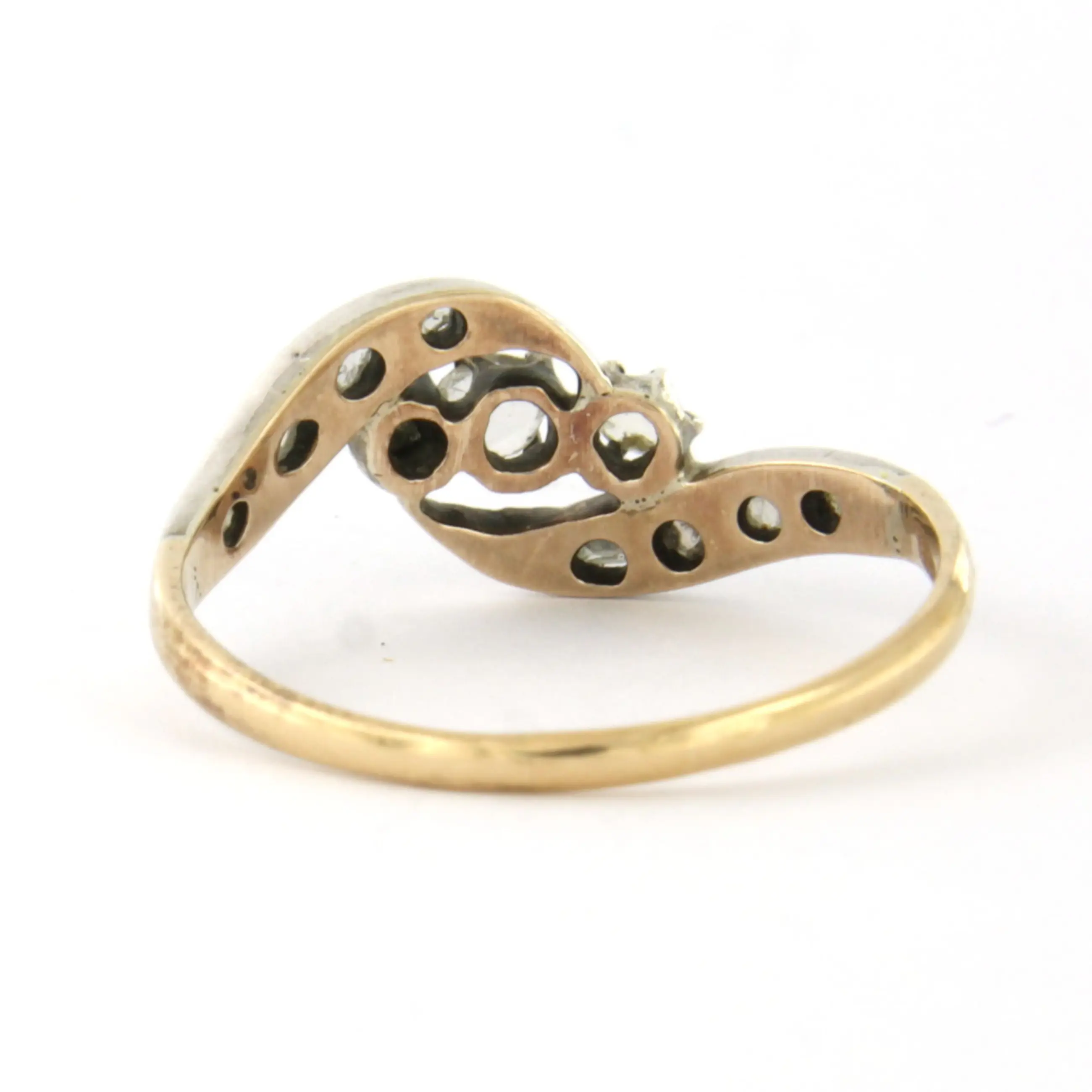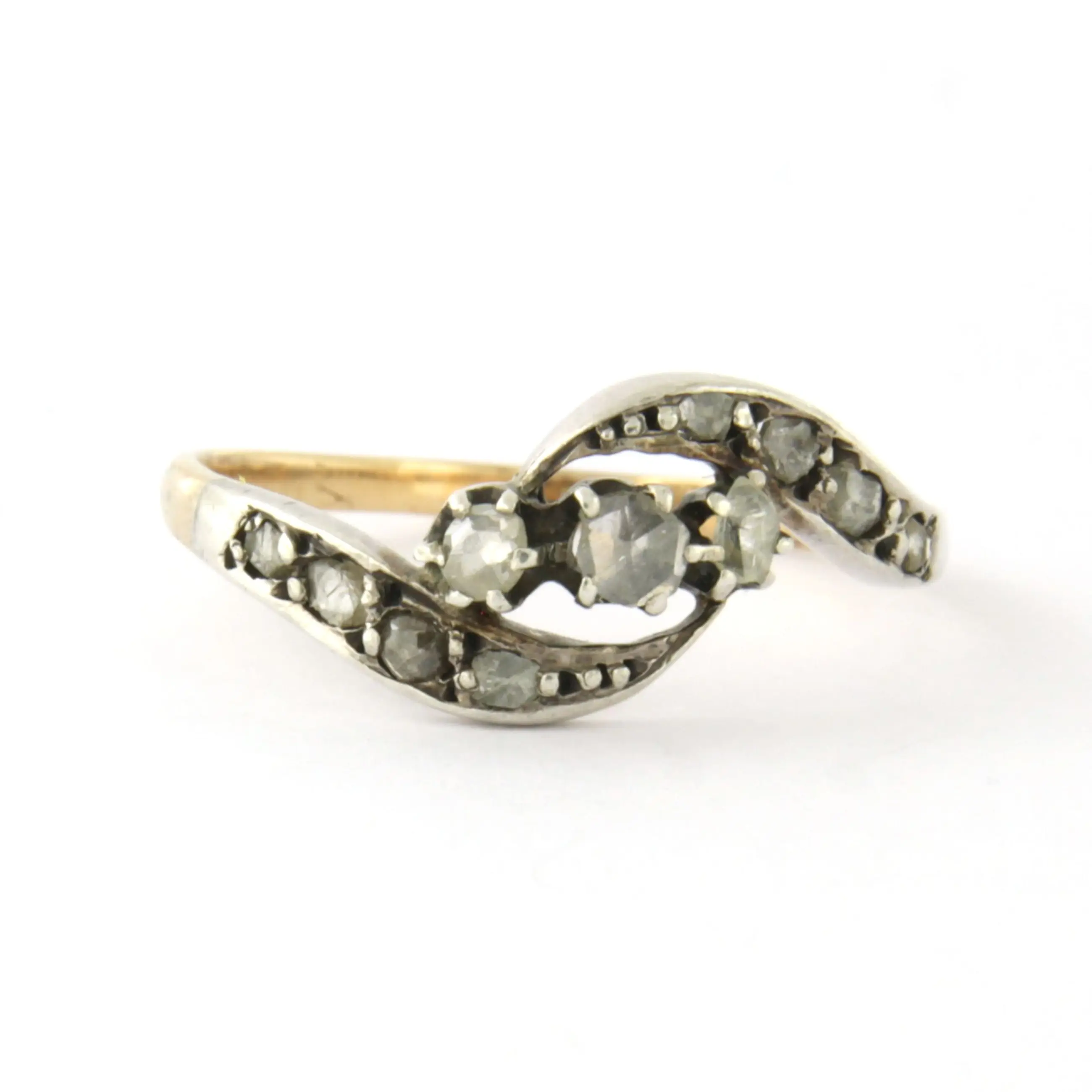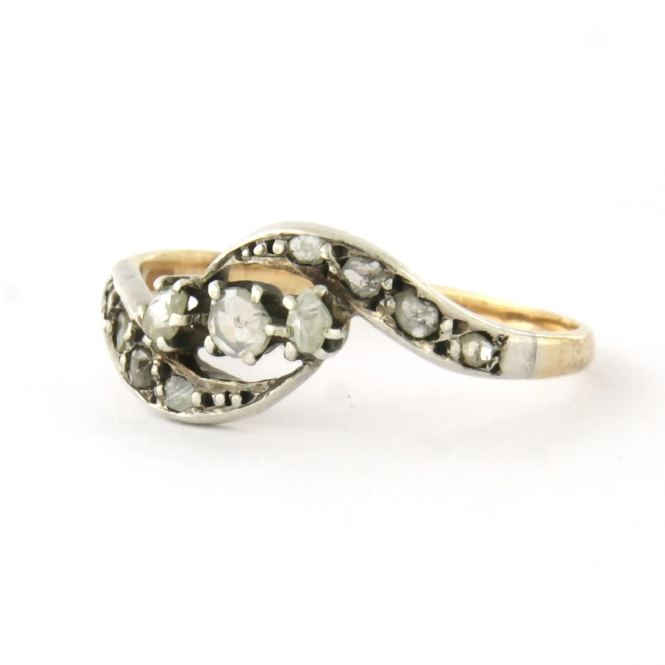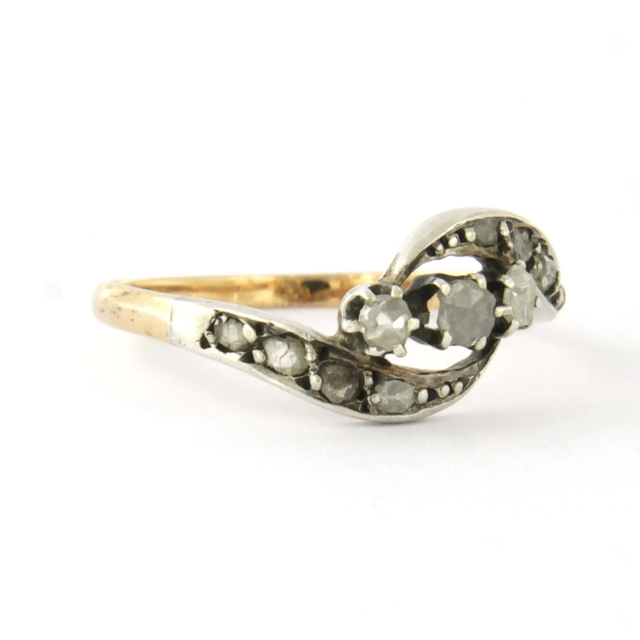 14k goud en zilver ring met roos geslepen diamant tot. 0.10ct – G/H - SI - ringmaat 18.5(58)
