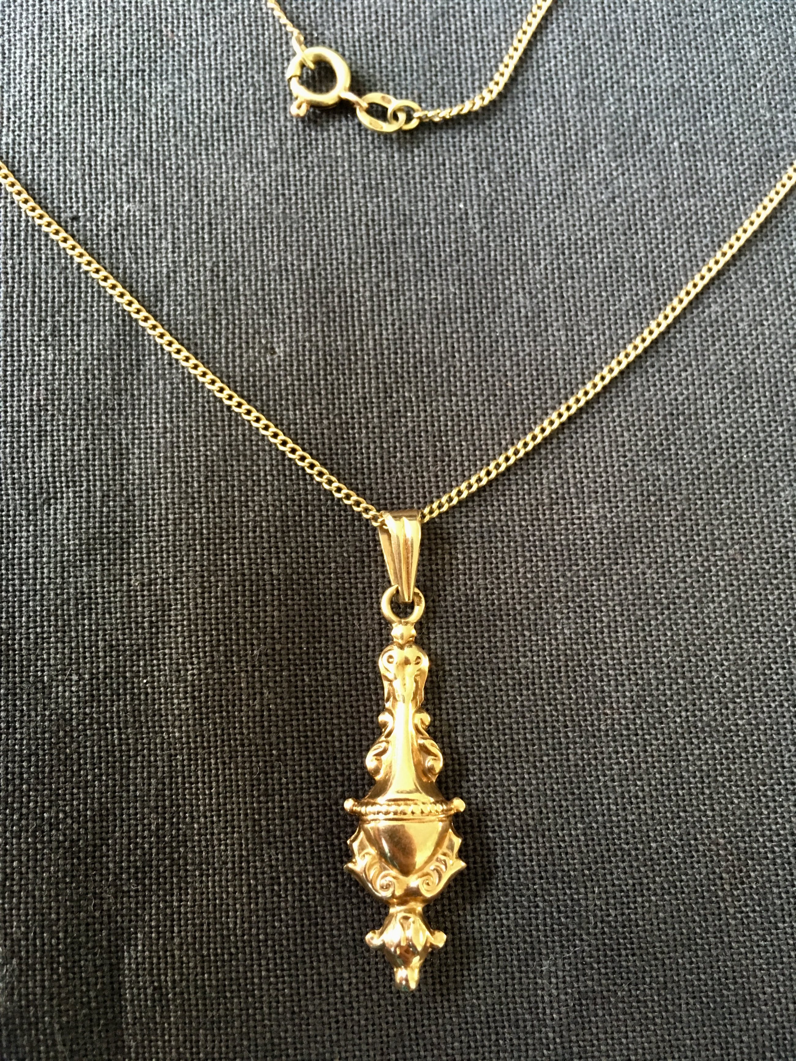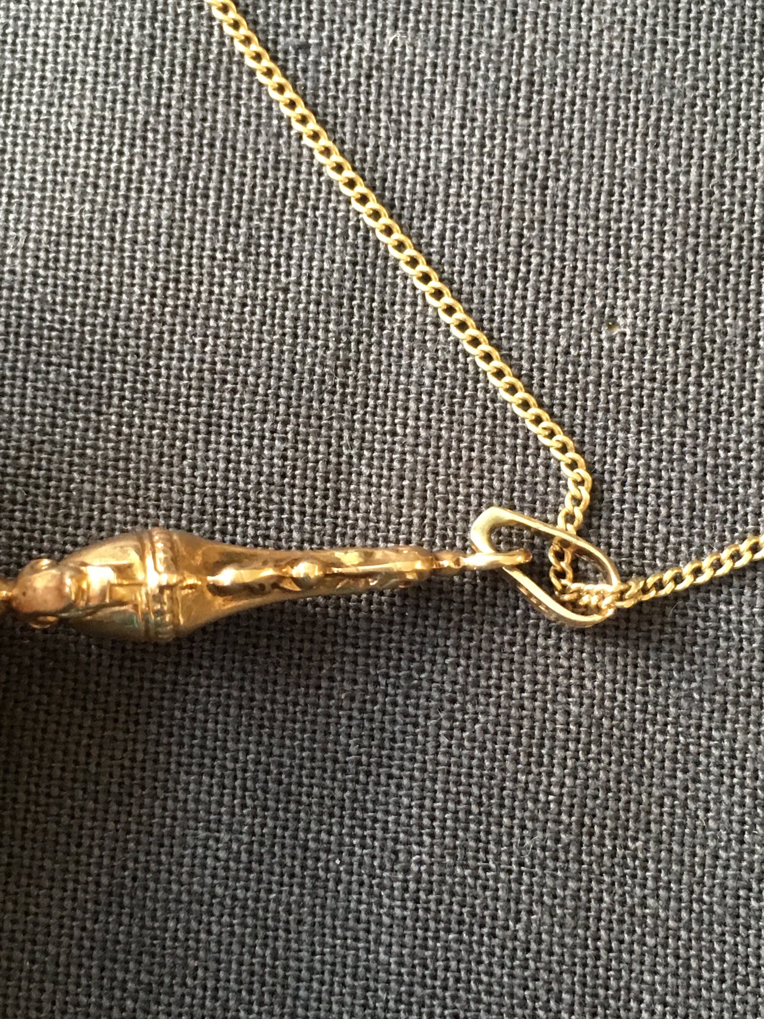 Een 14 karaat geelgouden gourmette collier, waaraan een antieke hanger.