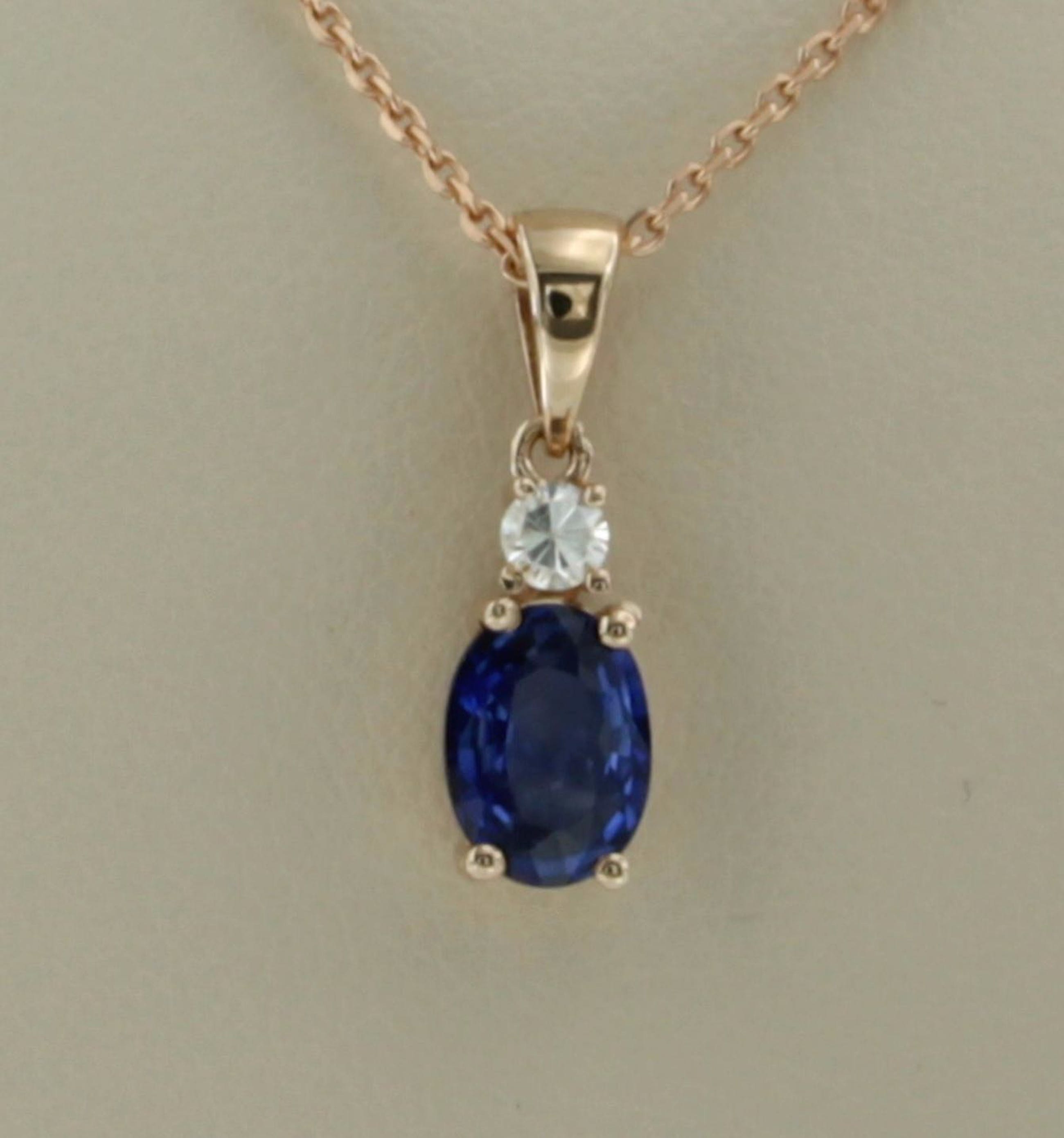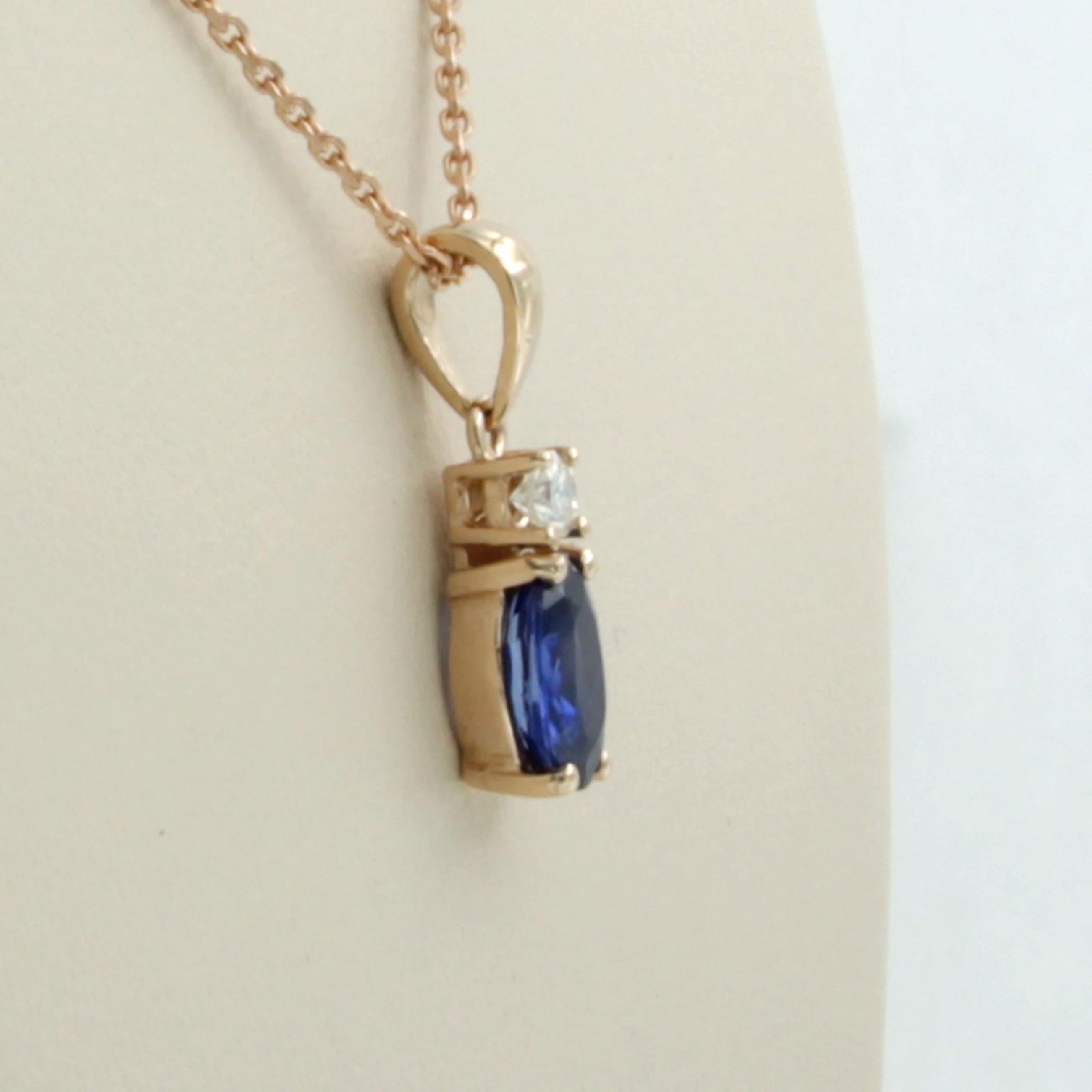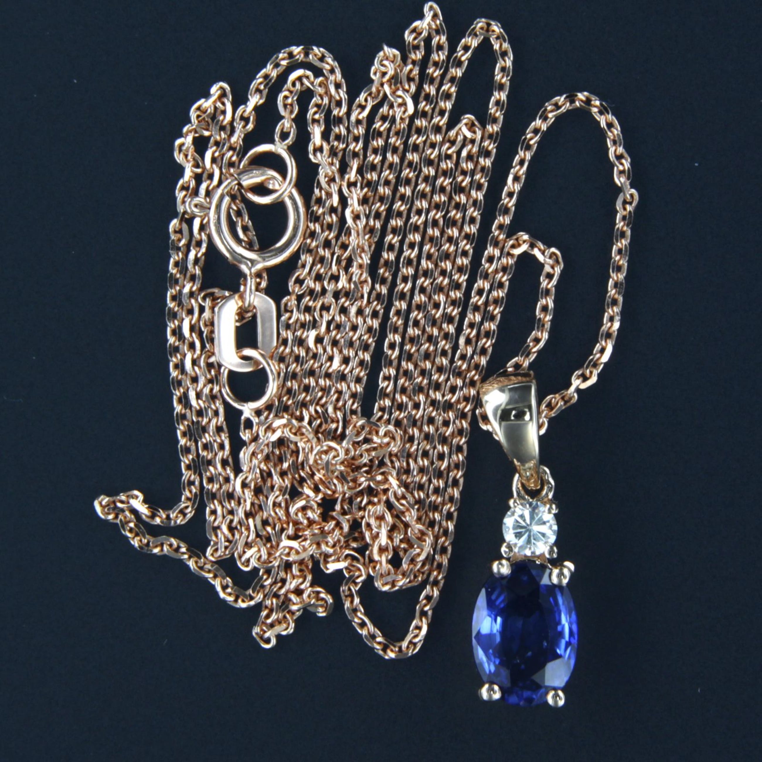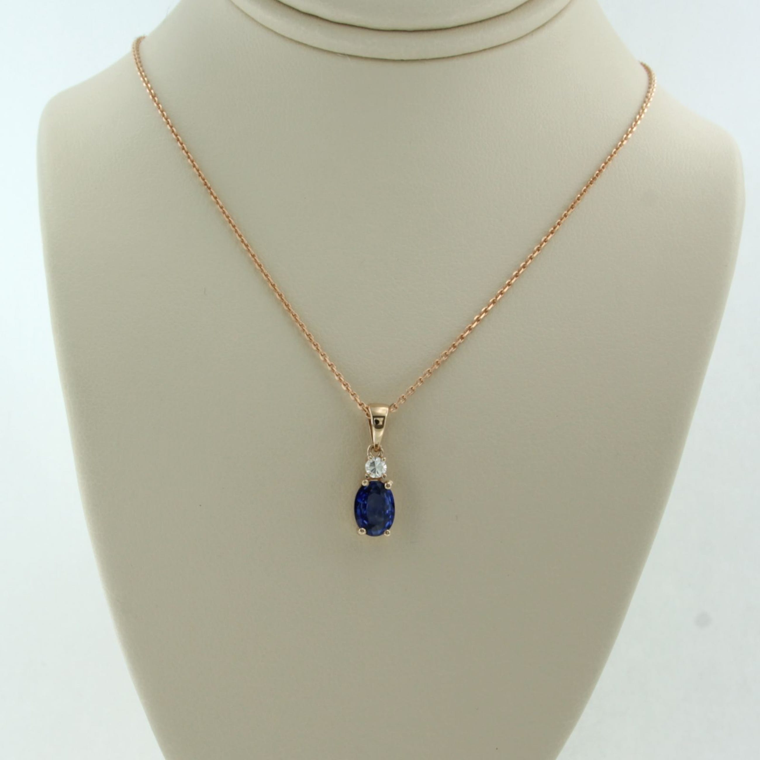 14 karaat roodgouden hanger met ovaal geslepen saffier en een briljant geslepen diamant erboven